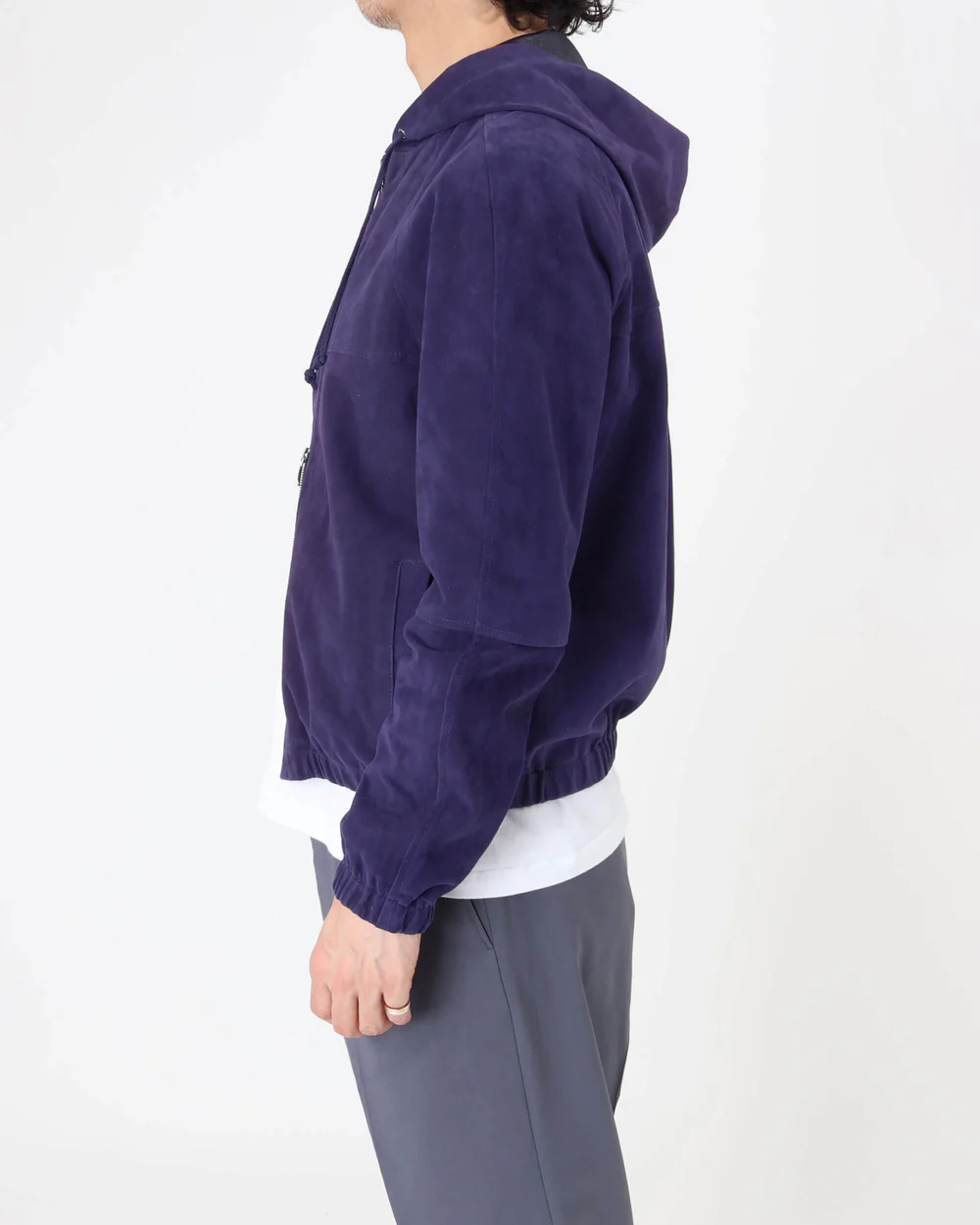 柔らかなスエードの質感を活かしたこのディテールにより、スポーティーな軽快さと、身体に優しくフィットする柔らかなシルエットを生み出しています。