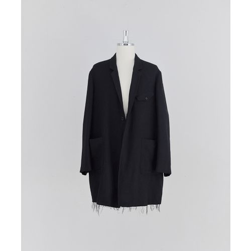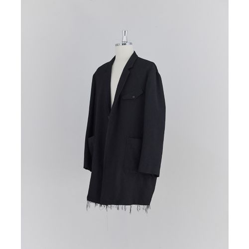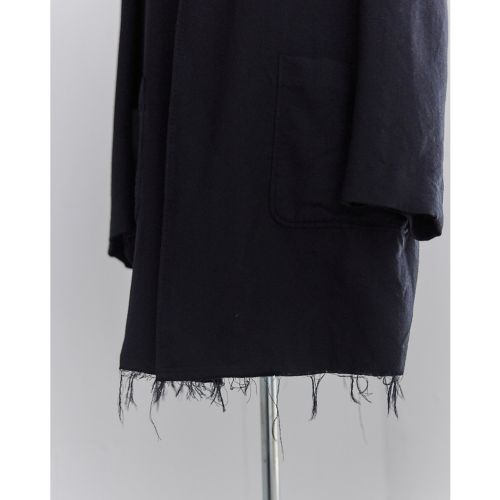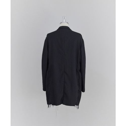 羽織るように着ていただきたいウールコート。胸ポケットがアクセント。大見返し、背抜き、袖裏付きの仕様。釦は本水牛、裾を断ち切り仕上げ。細めの番手の糸でふっくらと心地よい厚みがある生地を目指して、接結糸に36中/2のシルクの糸を使い、美しい生地を開発しました。ダブルフェイスを織れる織機が少なくなり、その設計ができる職人さんも限られてきたなか、織っていただいた至極の一品です。