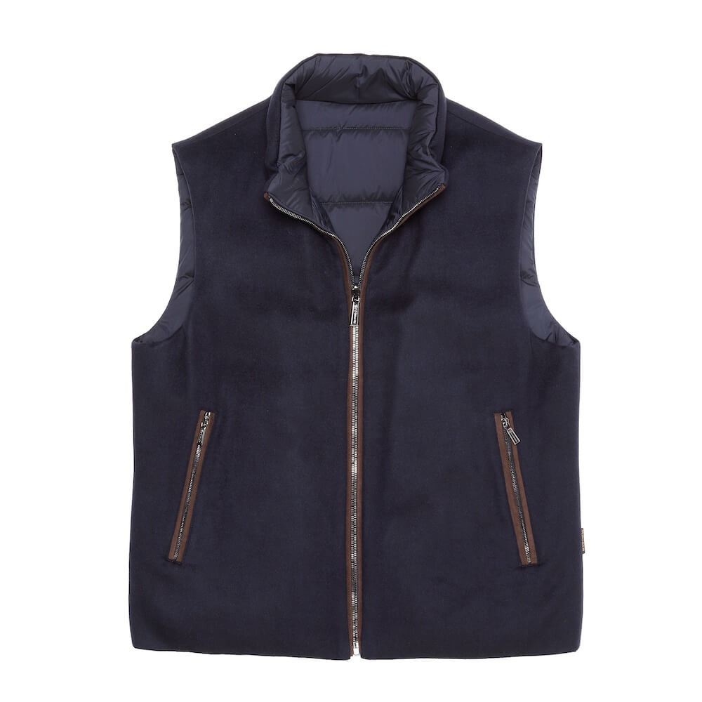 ムーレー /カシミヤブレンドフランネル リバーシブル ダウンベスト /FALIERI-LS9/BLUGREY/FALIERI-LS9