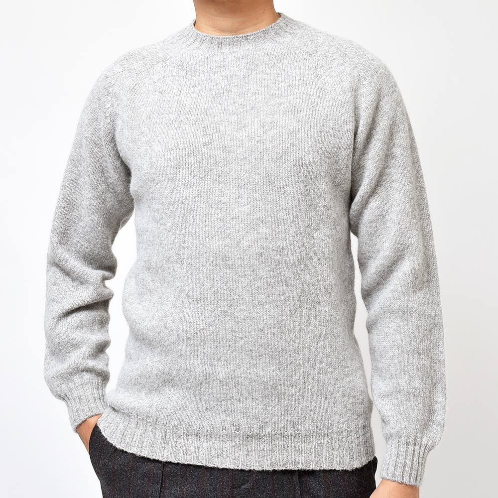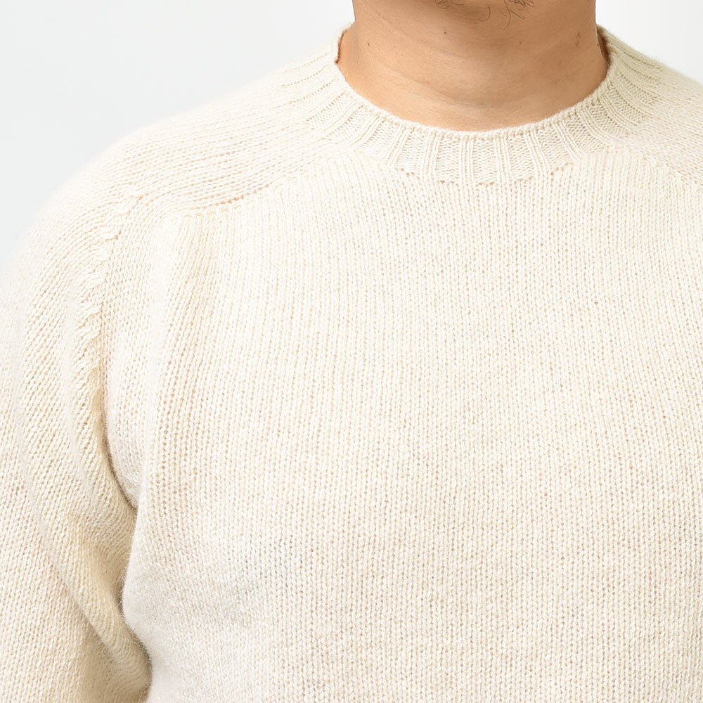 シェトランドウール特有のオーセンティックなムードに、メランジ感のあるニットの質感が普遍的な“らしさ”を感じさせてくれるINVERALLANのニットウェアー。また、少し詰まり気味のネックが一般的なスポーティーさのあるクルーネックとは違った魅力を放っています。