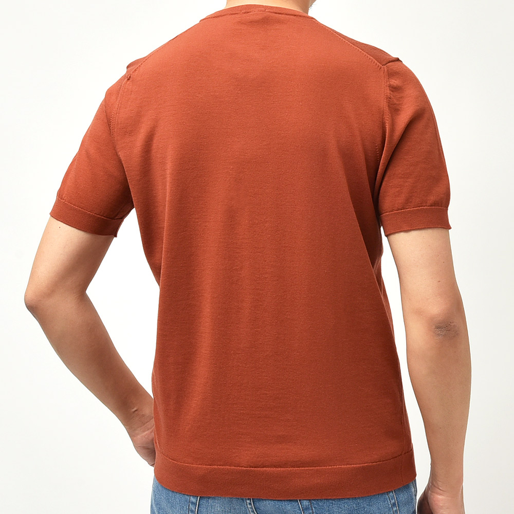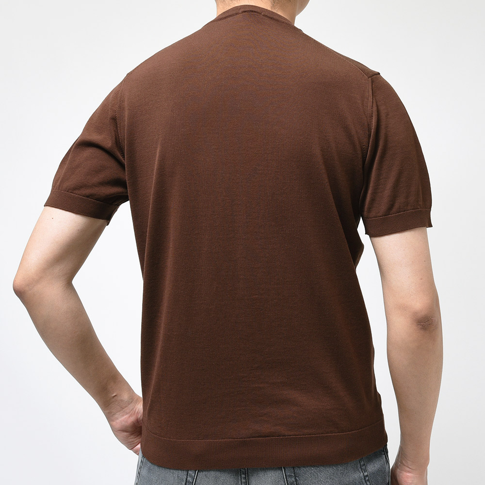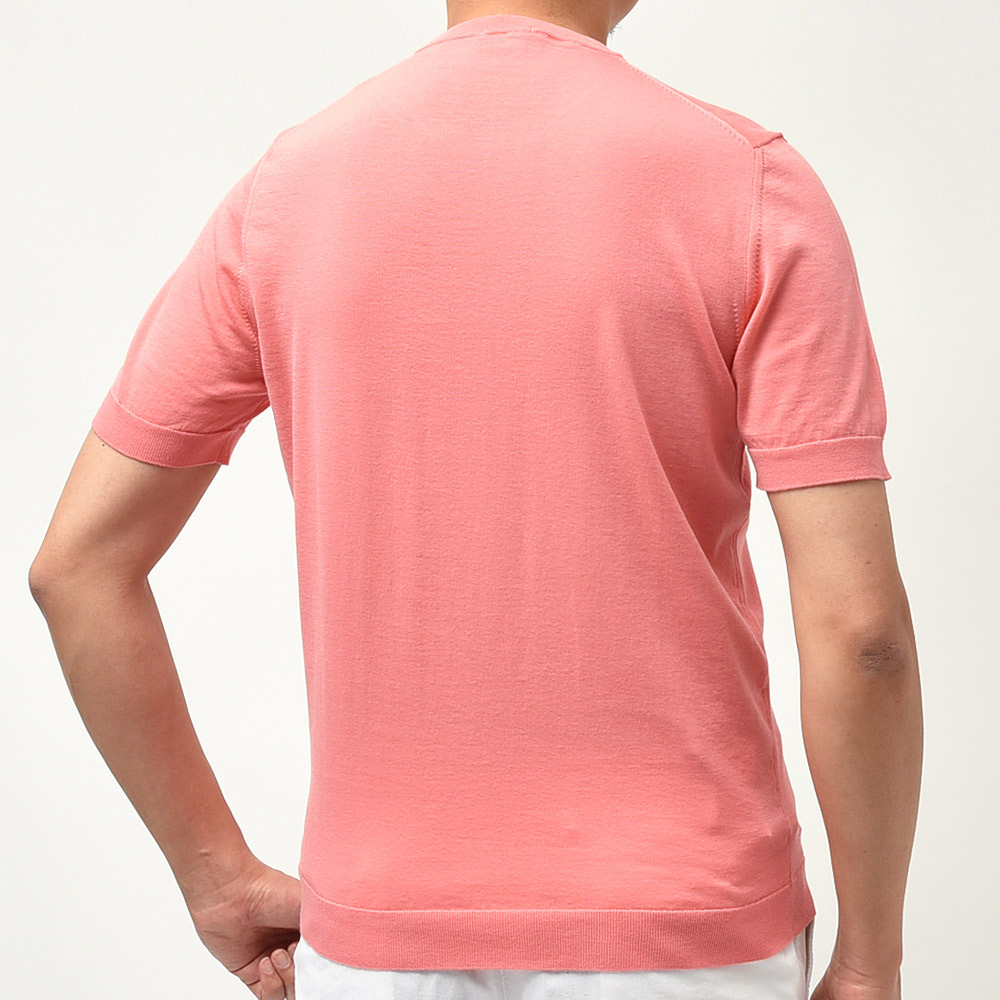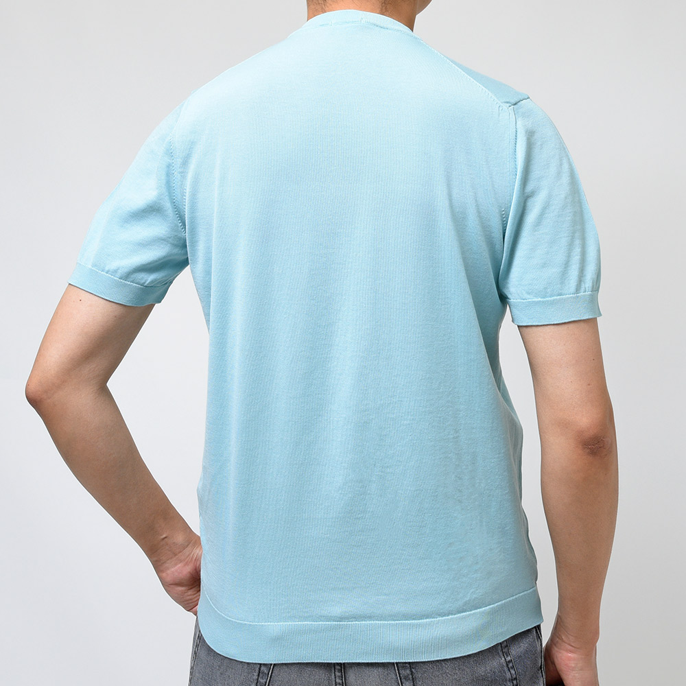 滑らかなでありながらも、ほんのりとシャリっとした肌触りが気持ちいいコットン素材を使用したハイゲージニットは、ネックが詰まり気味のクルーネックタイプ。首回りが詰まっているため上品な見え方となり、ジャケットとの相性はバツグンです。カットソー感覚で着用してなんら問題のない上質な質感が、もうカットソーには戻れない体となってしまう危険性を含んでいます。