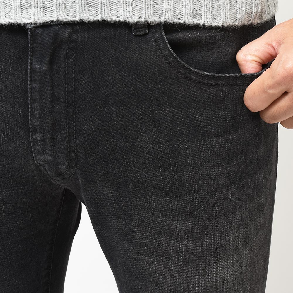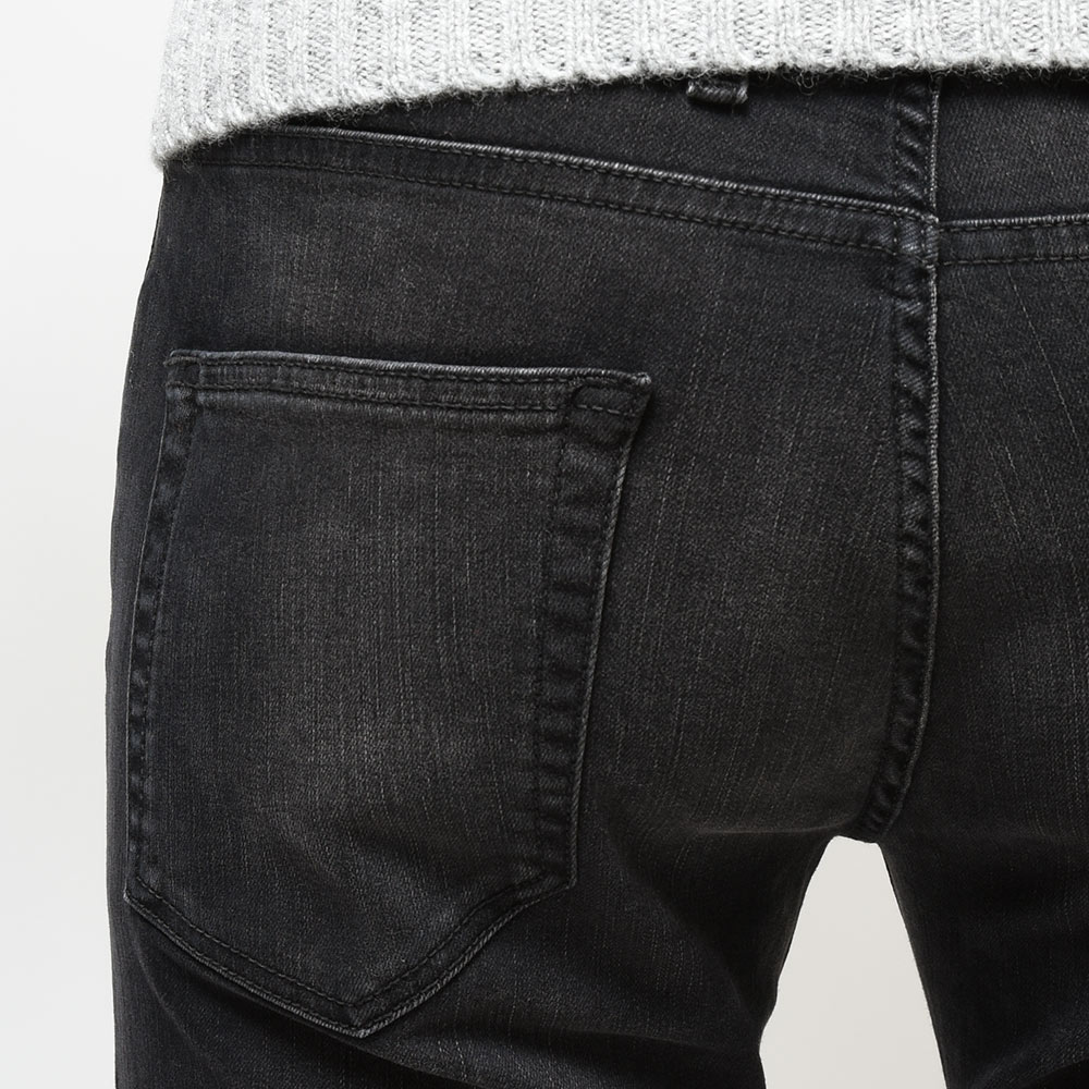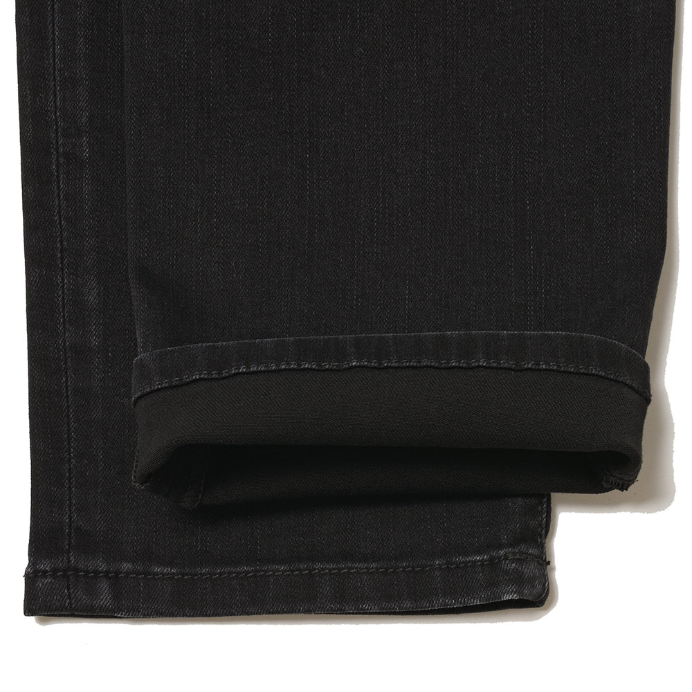 ウォッシュド加工を施したブラックデニムは、アタリを強くつけすぎないことでモダンさとカジュアルさを両立させています。また、大人気の“Travel”シリーズに近い伸縮性があり柔らかな質感のファブリックを使用していますので、その穿き心地は言わずもがなです。艶消しガンメタリックのボタン&リベットはブラックデニムと合わさりモダンな表情で、少しラグジュアリーな雰囲気を醸し出します。