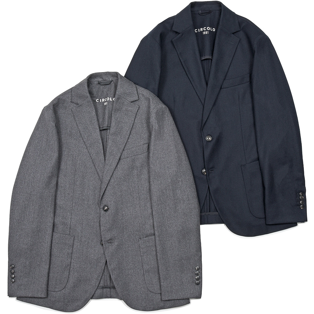 コンフォート素材を使用したセットアップの先駆者である、CIRCOLO 1901。コチラは、やや薄手のジャージー素材にシャンブレー風のプリントを施したココンチらしいテクニカルな一着。一見するとプリントとは気づかない高い技術力による仕上がりは流石の一言。また、程よくタイトなシルエットに、2つボタン仕様がジュアルなジャケットとして非常に有能な働きをしてくれます。