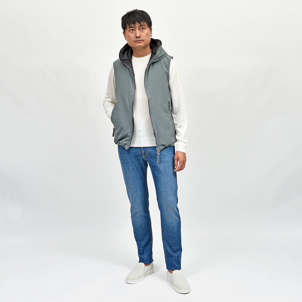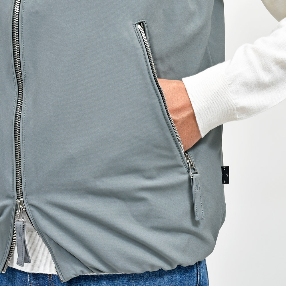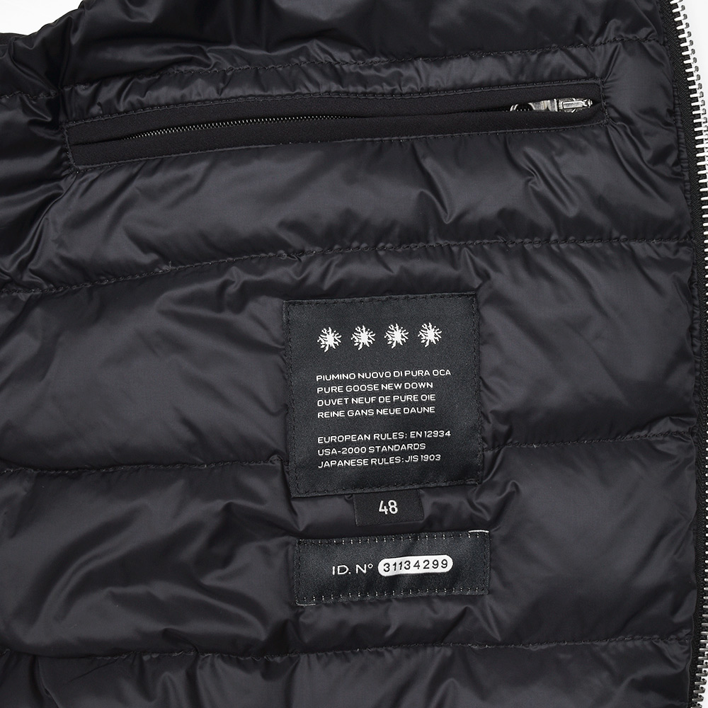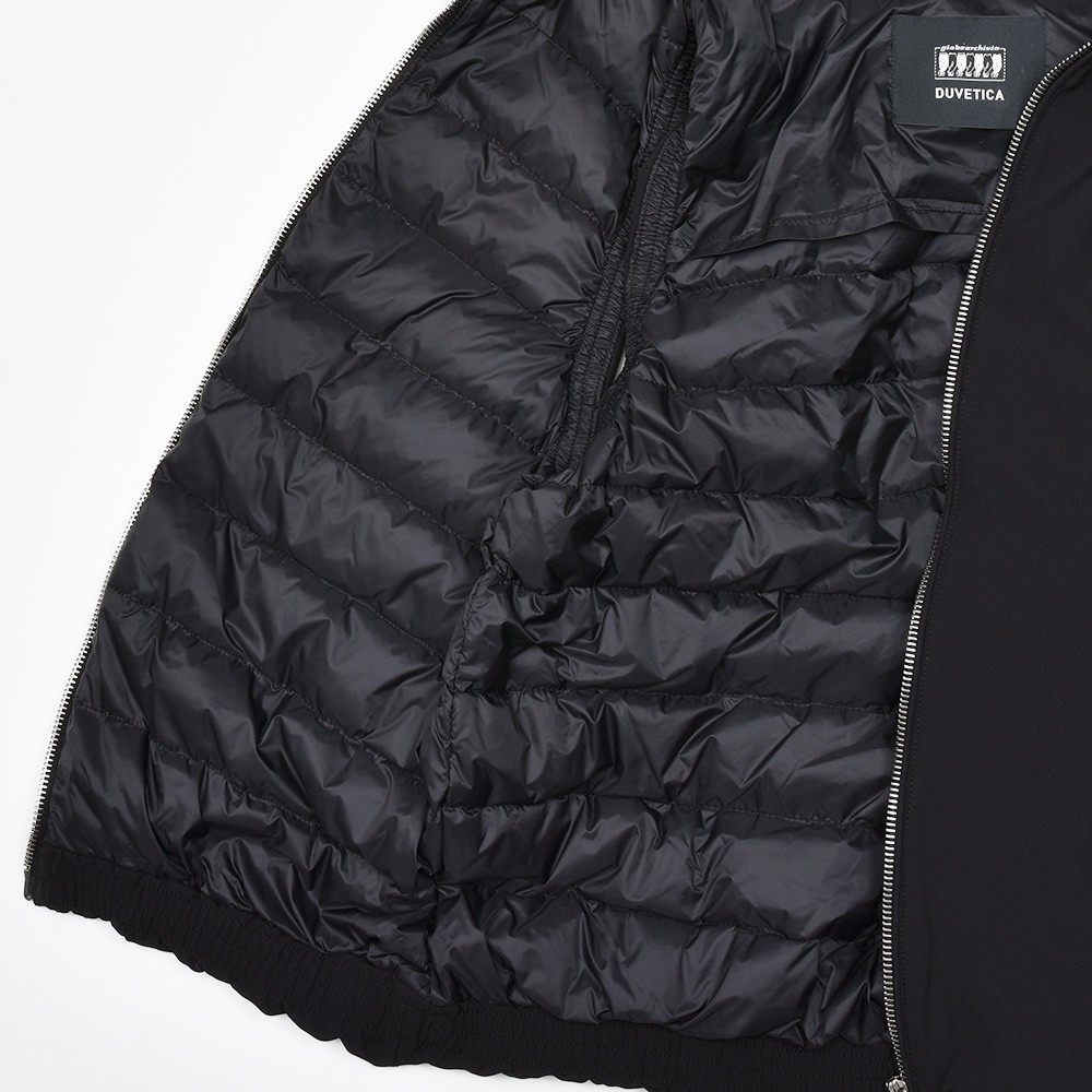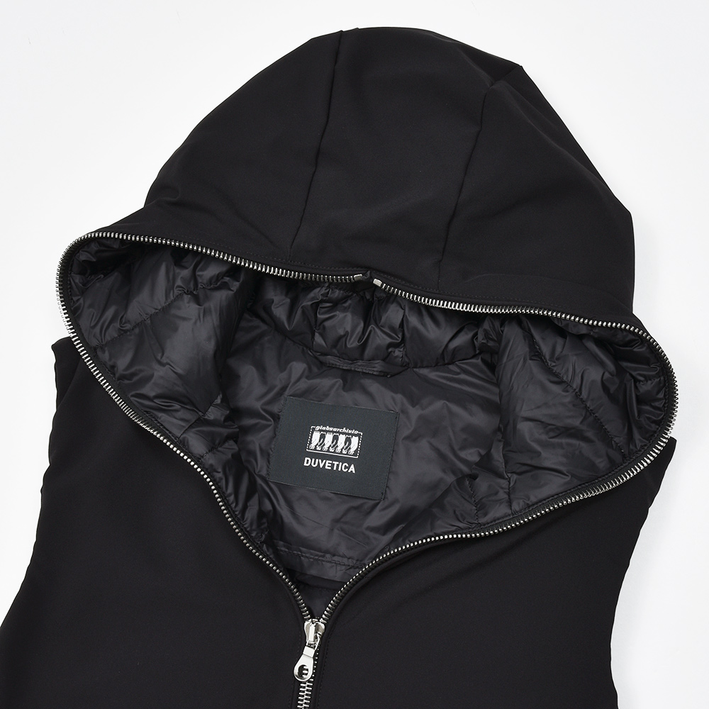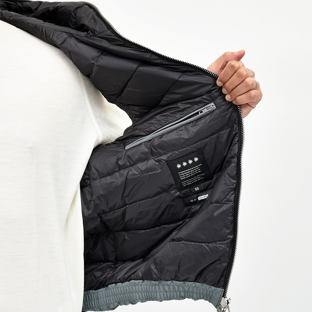DUVETICAのアイコンとも言えるフルジップを採用したモデル“ISCHIA(イスキア)”。 フロントのメタルファスナーをアクセントに、ダウンステッチのないデザインがモダンな佇まいです。また、フロントのポケットは手が入れやすい大きめな作りで、ジップも掴みやすくなっているため手袋をしていても使いやすい実用的な作りとなっています。