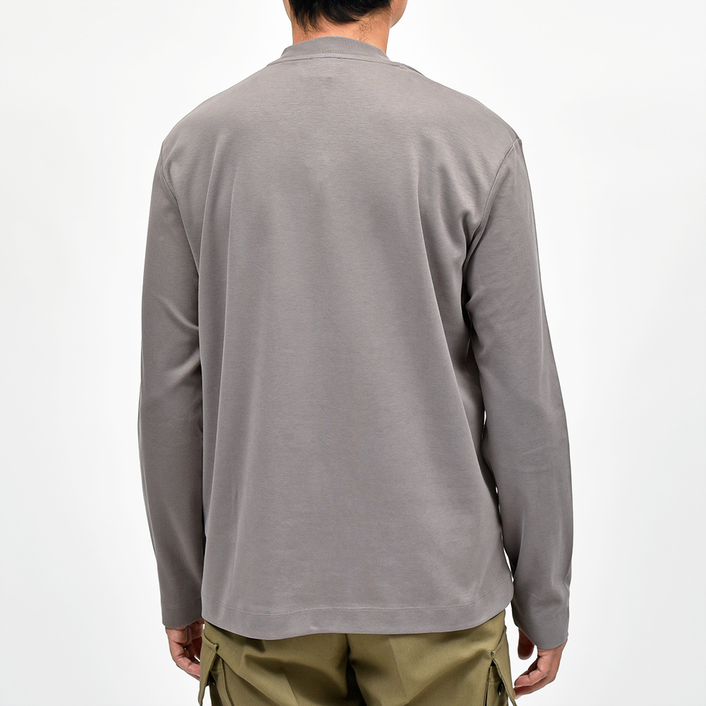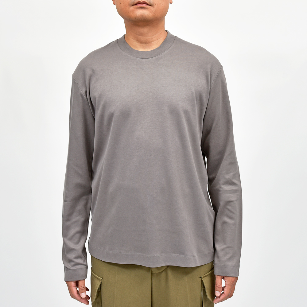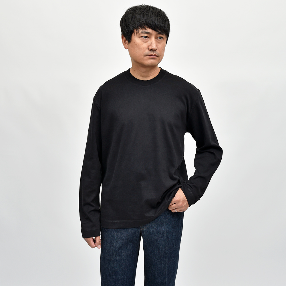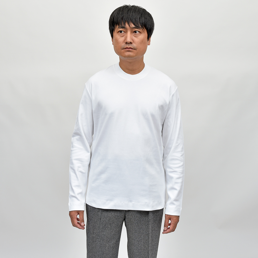 リラックス感あるフィッティングに、少し太めのネックリブ。さらに、しっかりとしたヘビーウェイトのブラッシュドコットン生地を使用することで、透け感を抑え一枚で着用できる頼もしい一枚となっています。