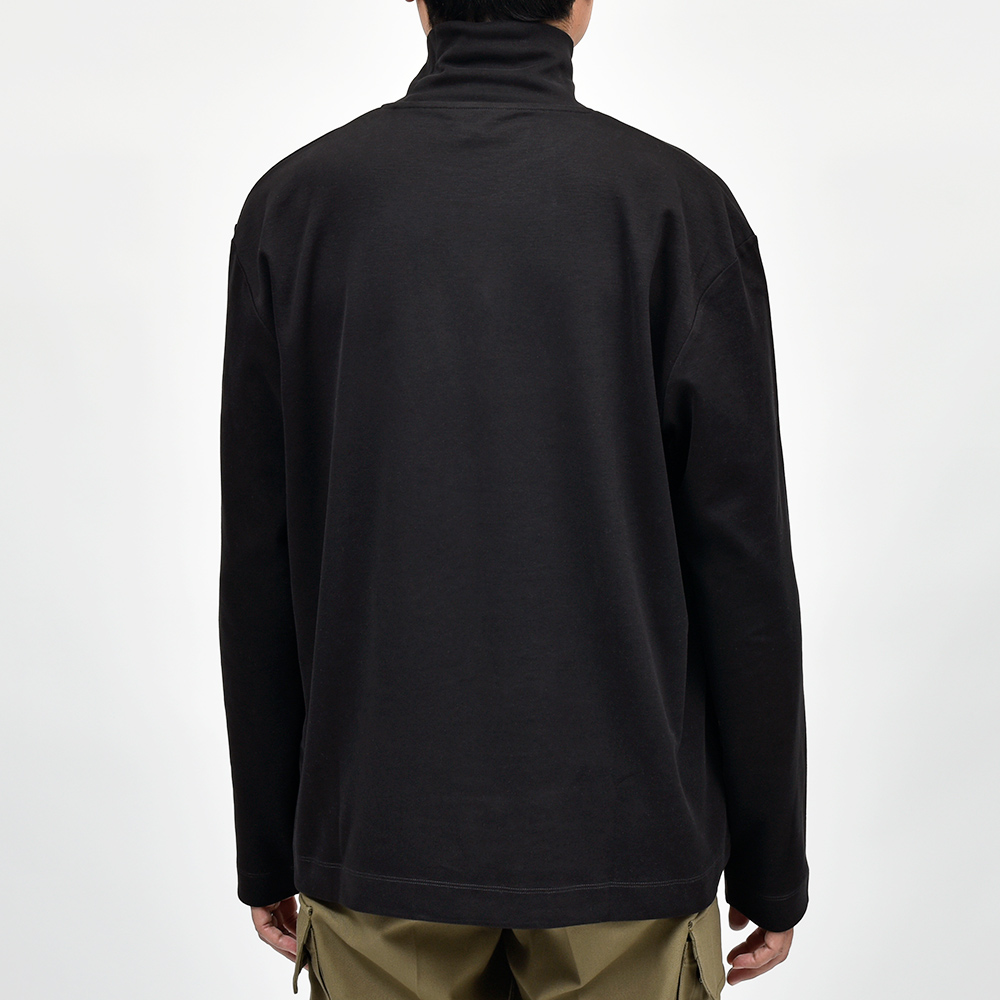 リラックス感あるフィッティングに、ハイネックとしても低めのタートルネックとしても着用できるロールネックカットソー。さらに、しっかりとしたヘビーウェイトのブラッシュドコットン生地を使用することで、透け感を抑え一枚で着用できる頼もしい一枚となっています。