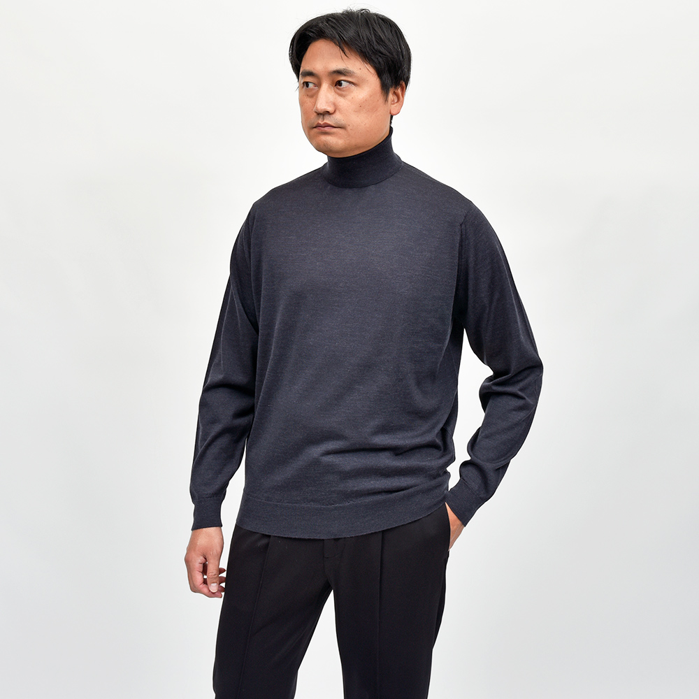 LEVINE エクストラファインメリノウール 30ゲージ タートルネックニット MODERN FIT