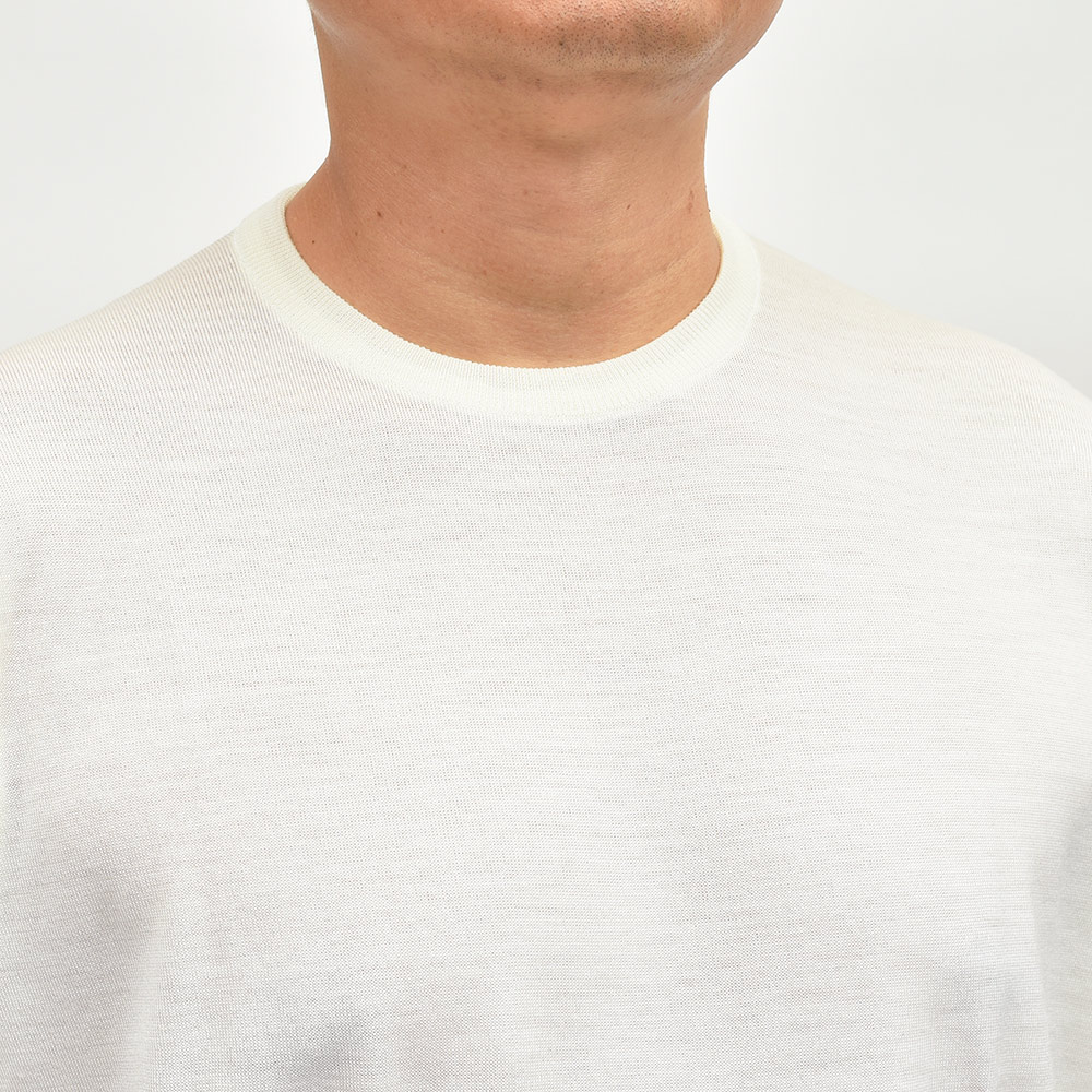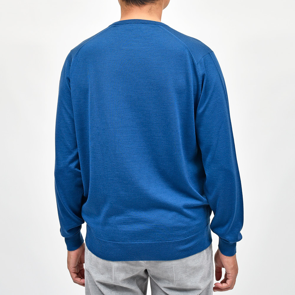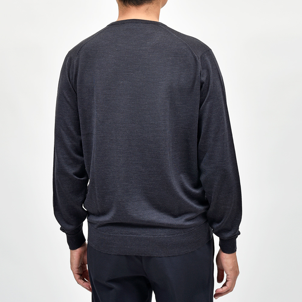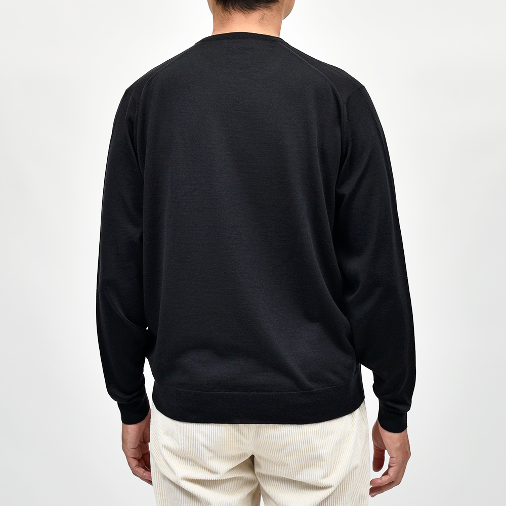 滑らかで仄かな光沢感を放ち、非常に手触りの良いエクストラファインメリノウールを使用した、定番ハイゲージの30ゲージシリーズ。やや透け感のあるハイゲージは、ジャケットなどのインナー使いは勿論のこと、サイズ感を少しゆったりめにすれば一枚で着用しても雰囲気のあるスタイルになります。JOHN SMEDLEYでは定番のクルーネックニットモデル“SCANLAN”は、Tシャツやシャツとの重ね着は勿論、一枚で着てもスタイリングに品のある表情を作り上げてくれます。