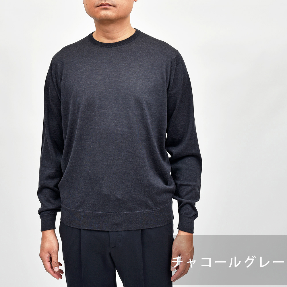 SCANLAN エクストラファインメリノウール 30ゲージ クルーネックニット MODERN FIT
