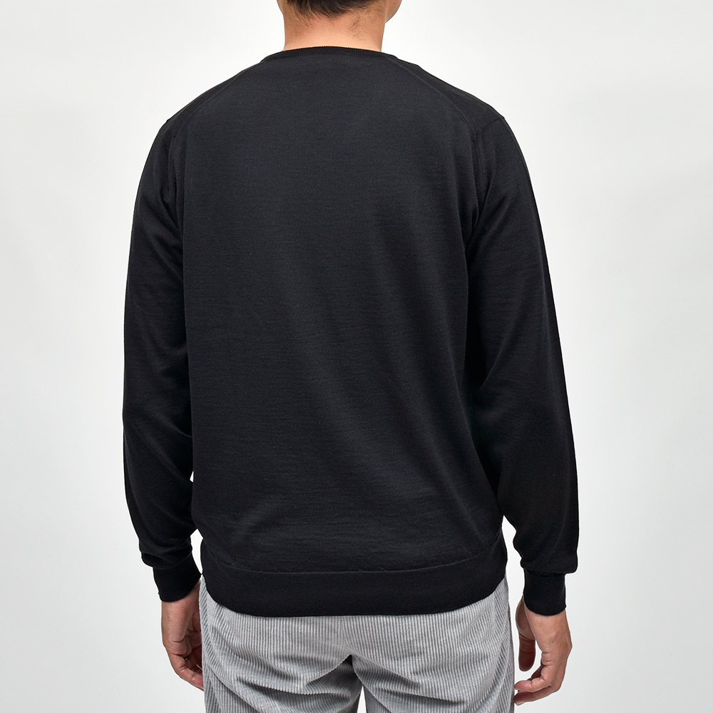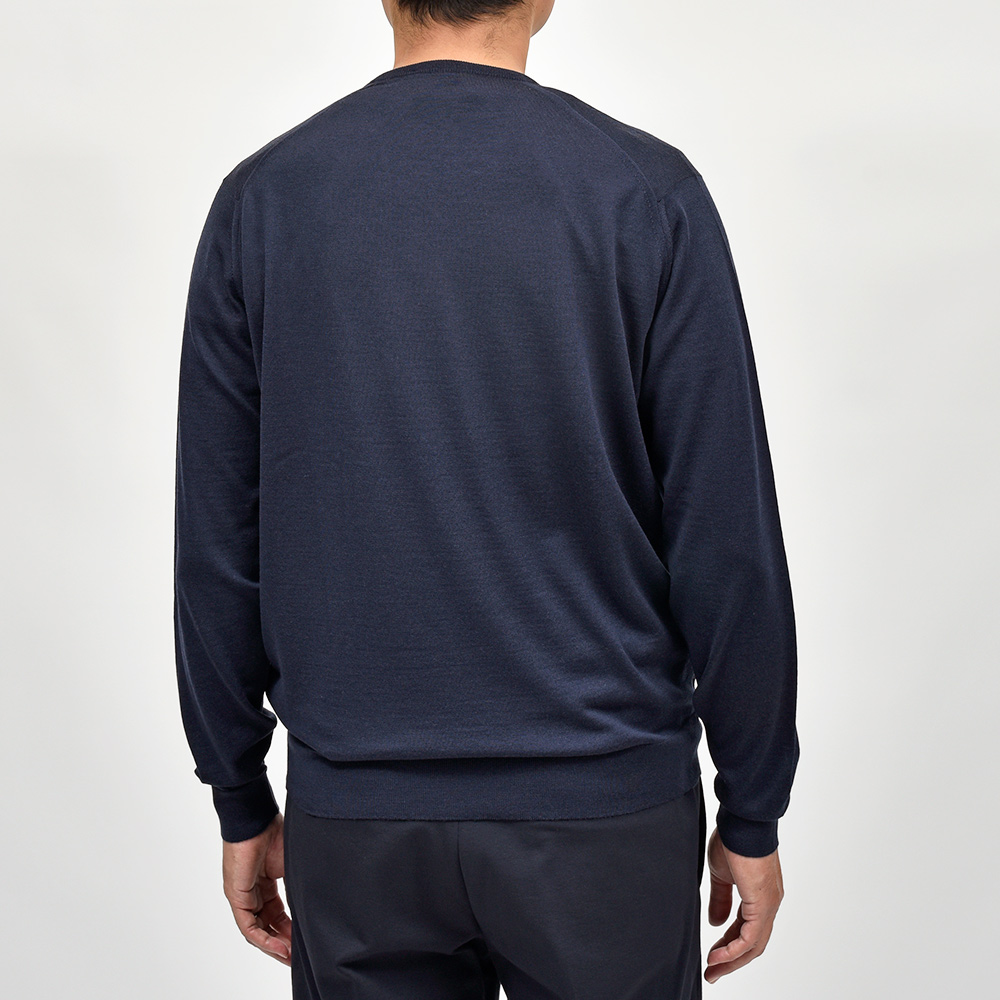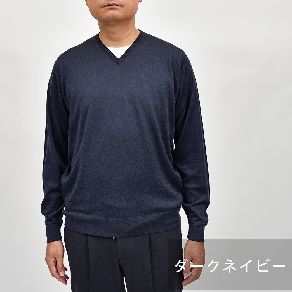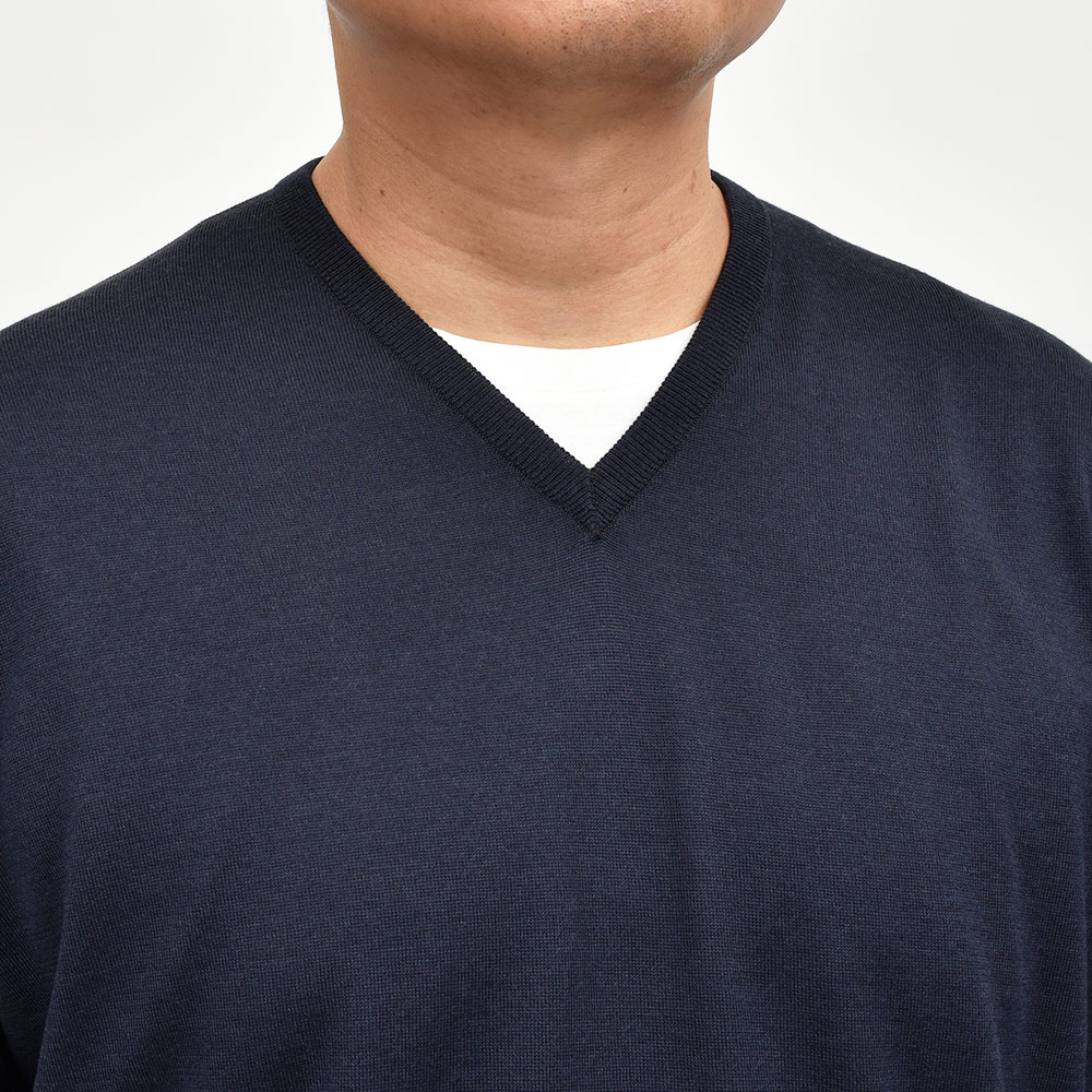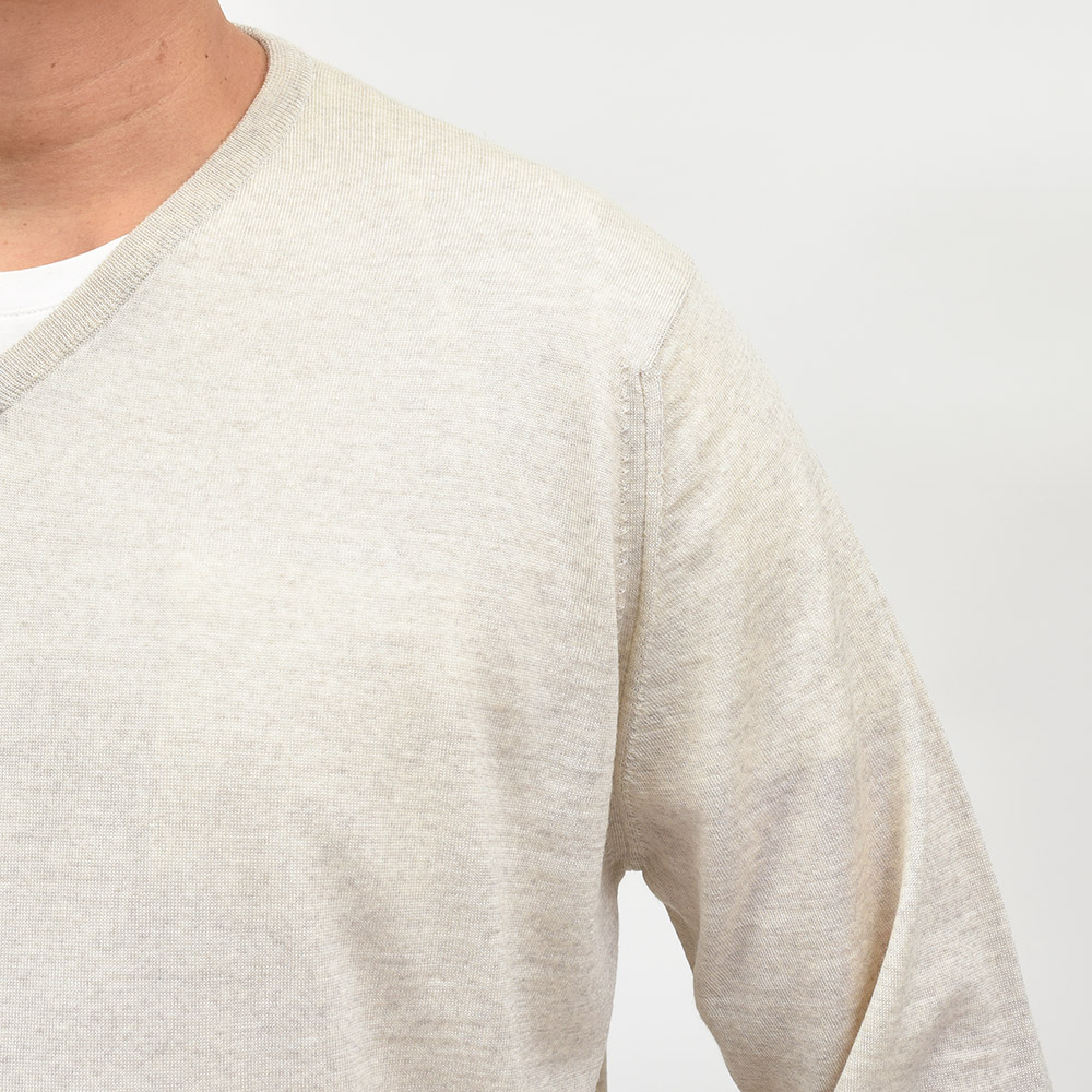 滑らかで仄かな光沢感を放ち、非常に手触りの良いエクストラファインメリノウールを使用した、定番ハイゲージの30ゲージシリーズ。やや透け感のあるハイゲージは、ジャケットなどのインナー使いは勿論のこと、サイズ感を少しゆったりめにすれば一枚で着用しても雰囲気のあるスタイルになります。JOHN SMEDLEYでは定番のVネックニットモデル“PACKHAM”は、シャツとの重ね着は勿論、Tシャツの上に着ても上品なカジュアルスタイルを作り上げてくれます。