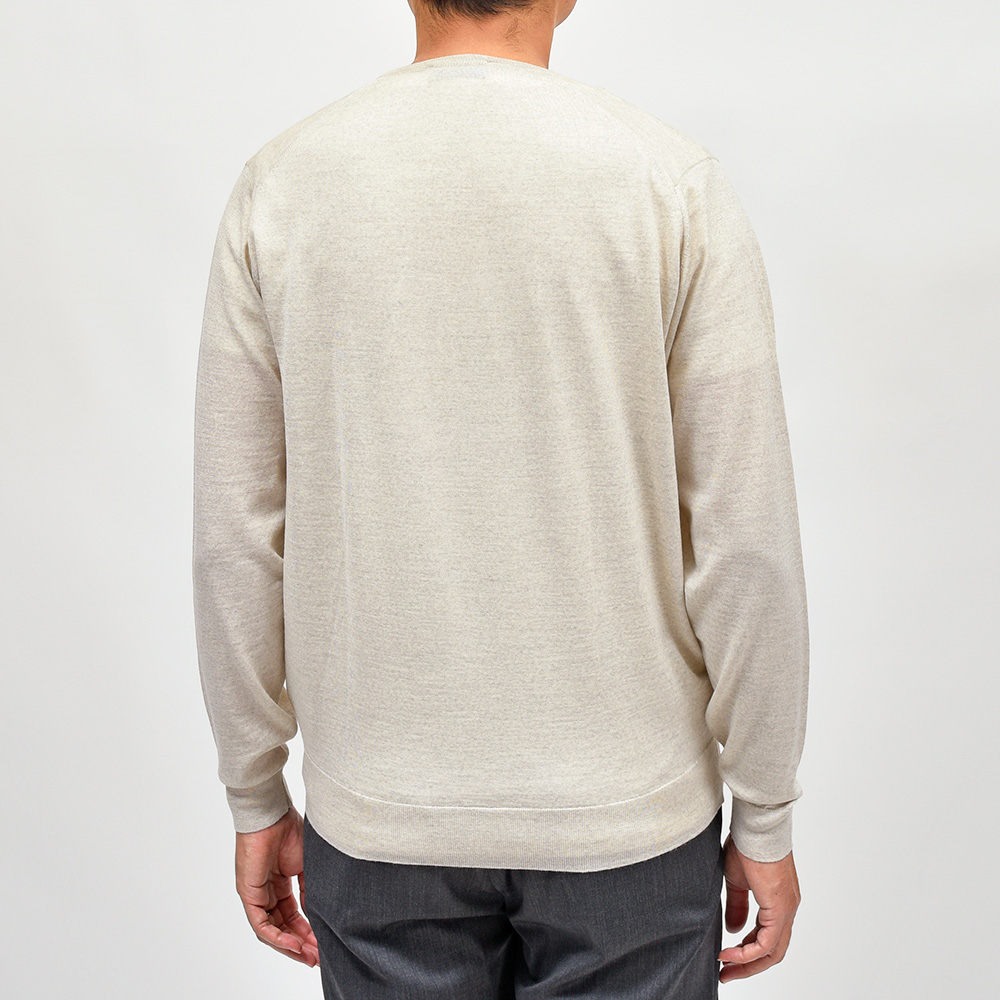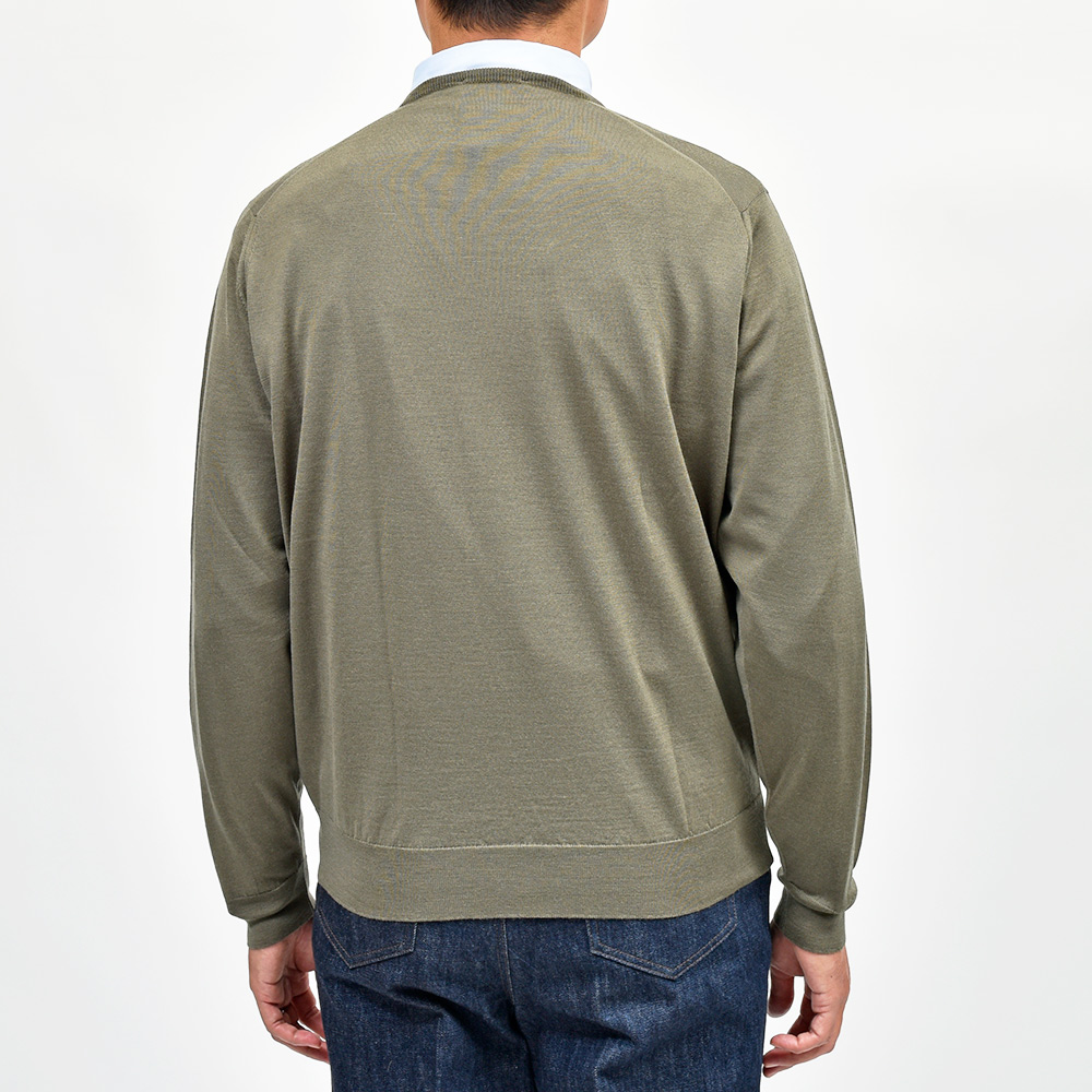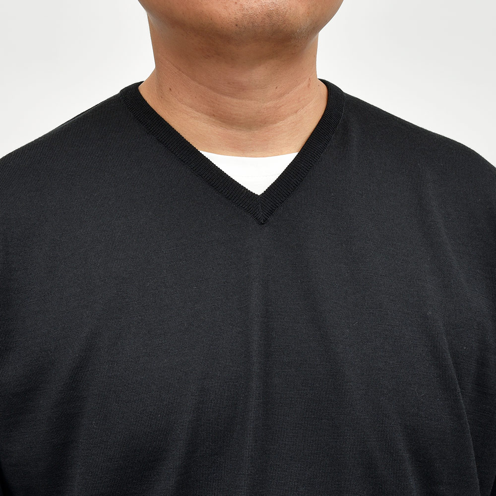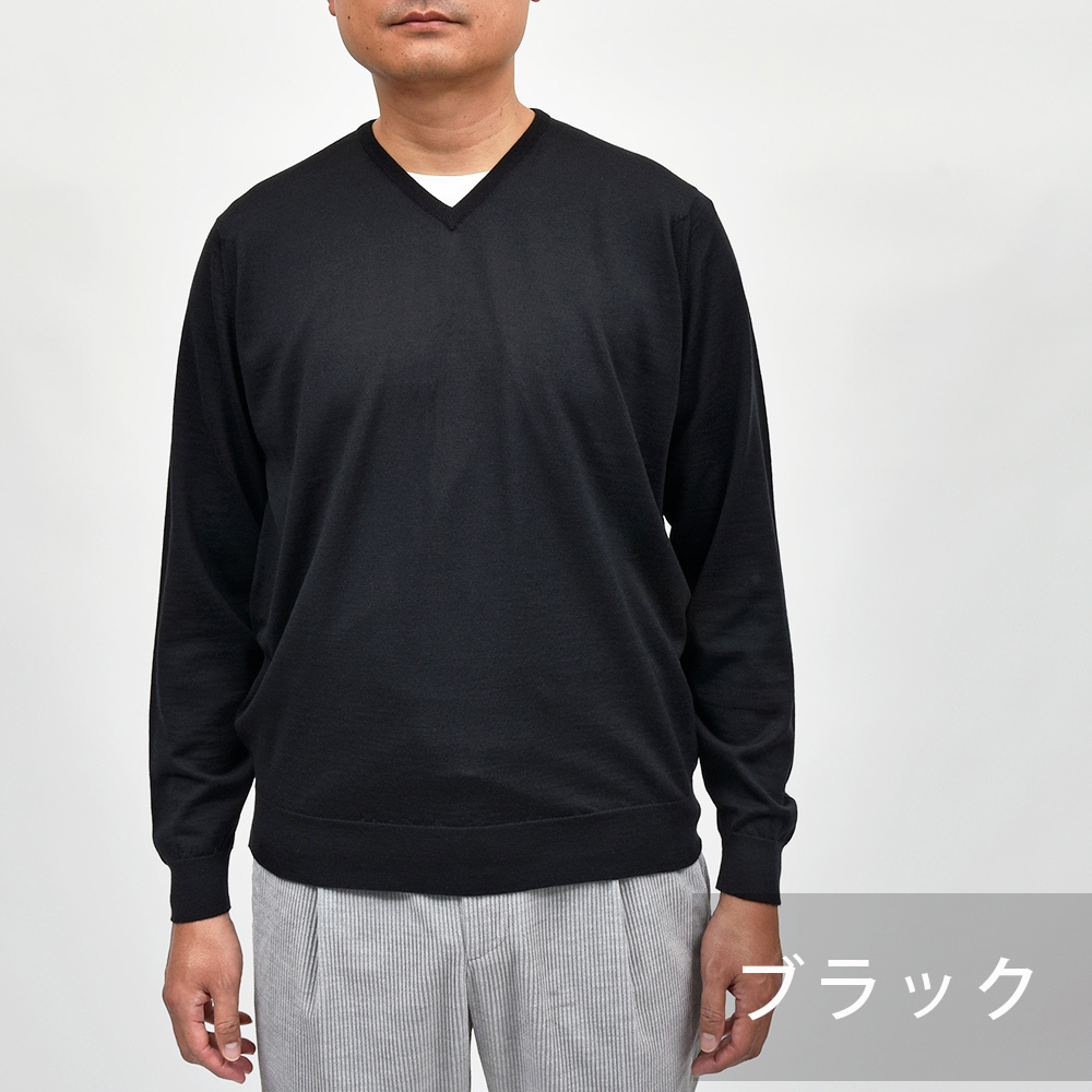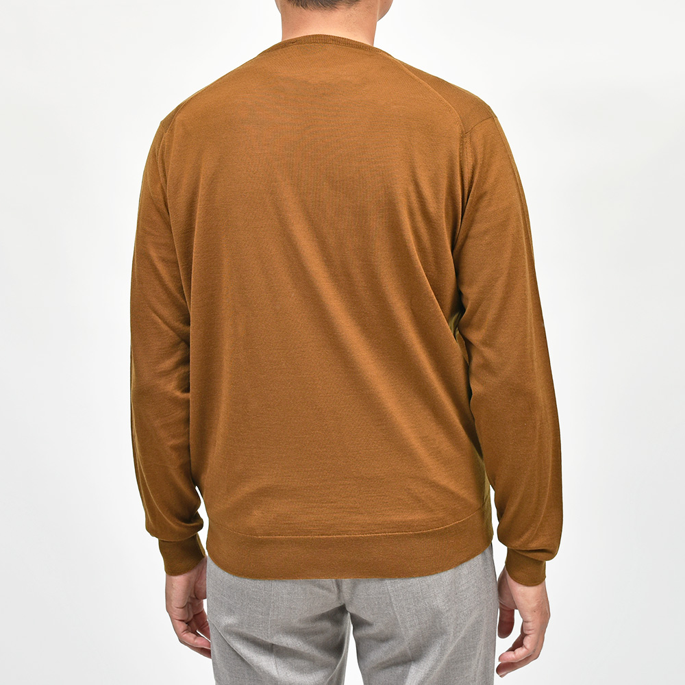 滑らかで仄かな光沢感を放ち、非常に手触りの良いエクストラファインメリノウールを使用した、定番ハイゲージの30ゲージシリーズ。やや透け感のあるハイゲージは、ジャケットなどのインナー使いは勿論のこと、サイズ感を少しゆったりめにすれば一枚で着用しても雰囲気のあるスタイルになります。JOHN SMEDLEYでは定番のVネックニットモデル“PACKHAM”は、シャツとの重ね着は勿論、Tシャツの上に着ても上品なカジュアルスタイルを作り上げてくれます。