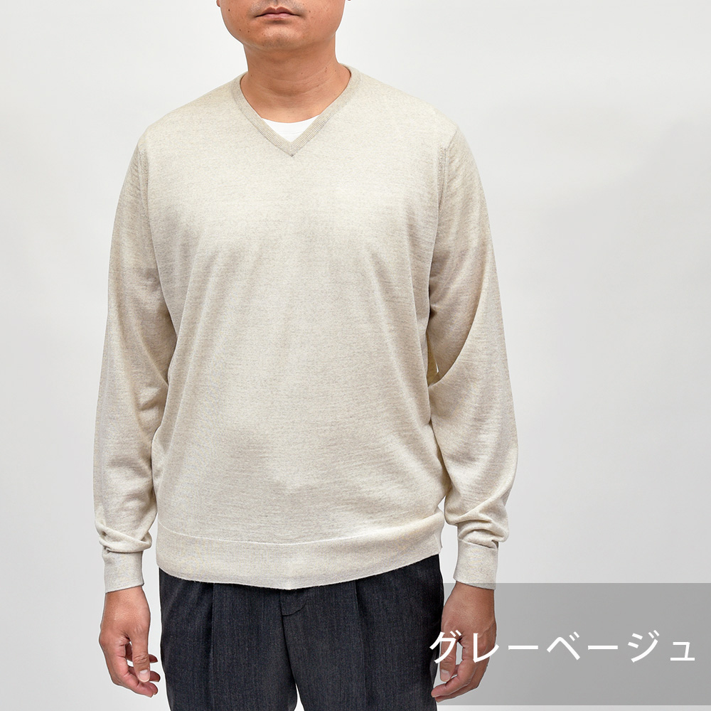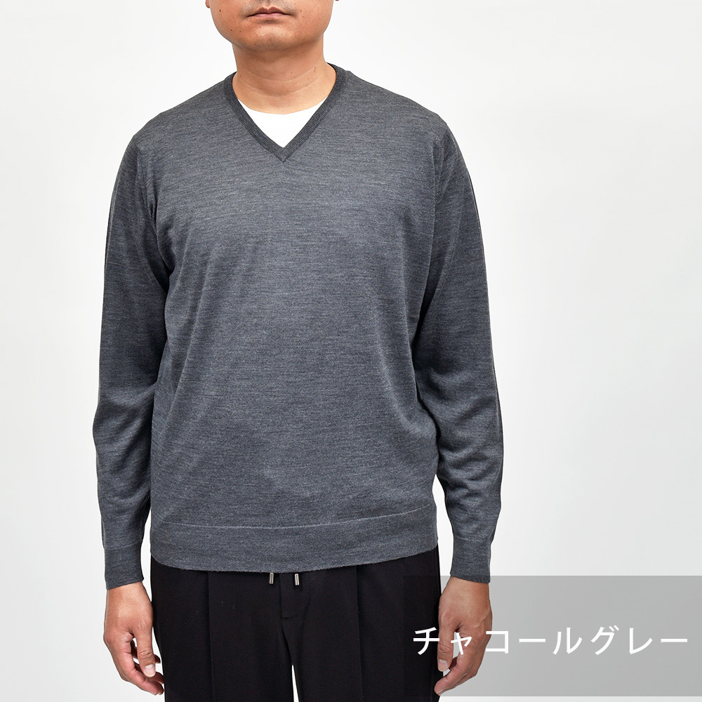 サイズはLサイズでジャストサイズです。身頃にゆとりがありますがシルエットはスッキリしています。30Gの定番ハイゲージVネックです!