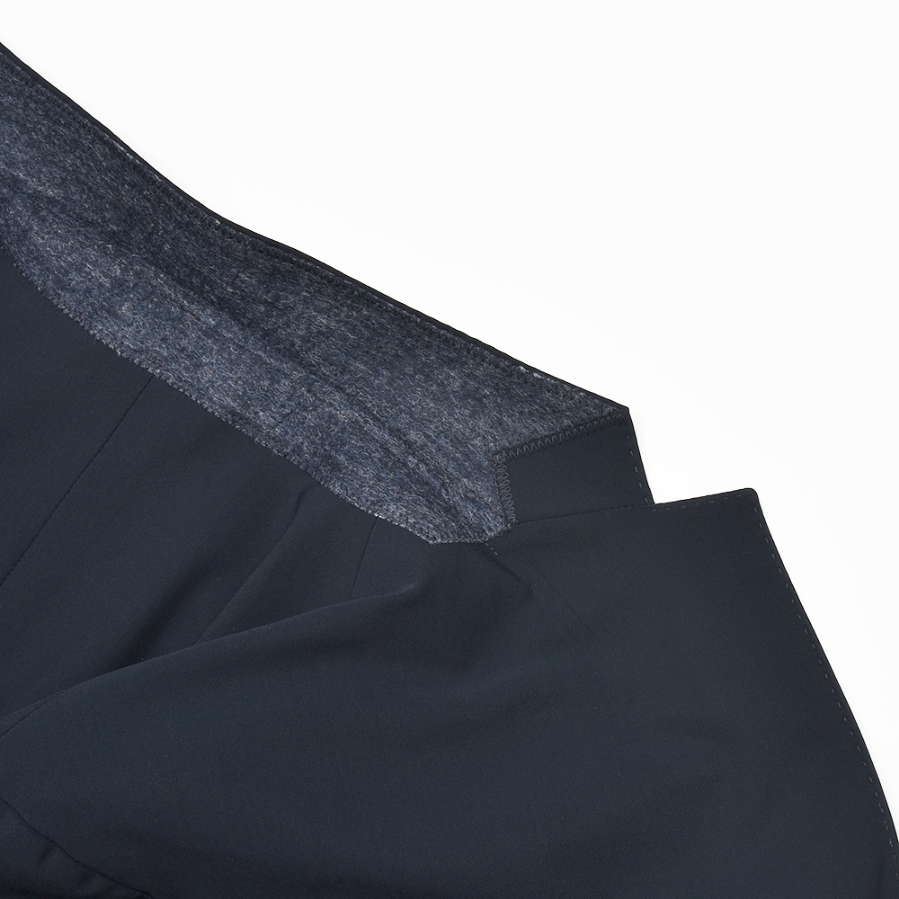 こちらは春夏シーズンよりも少し生地を厚くした、目付け370gの秋冬シーズン用のナイロンストレッチファブリックになります。秋冬用と言いましても地厚とまではいかない、柔らかでしなやかな生地感ですので、春先でも問題なく着用することができます。また、ドライなタッチのパッカブル素材に、360°ストレッチ、形状回復、速乾といった様々な機能性を持った超ハイブリッド素材。スポーティーな印象の強いナイロン素材ですが、光沢感を抑えた質感にPT TORINOならではの上品な雰囲気がほんのりとドレスライクな顔を覗かせてくれます。