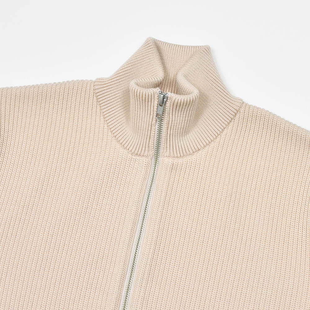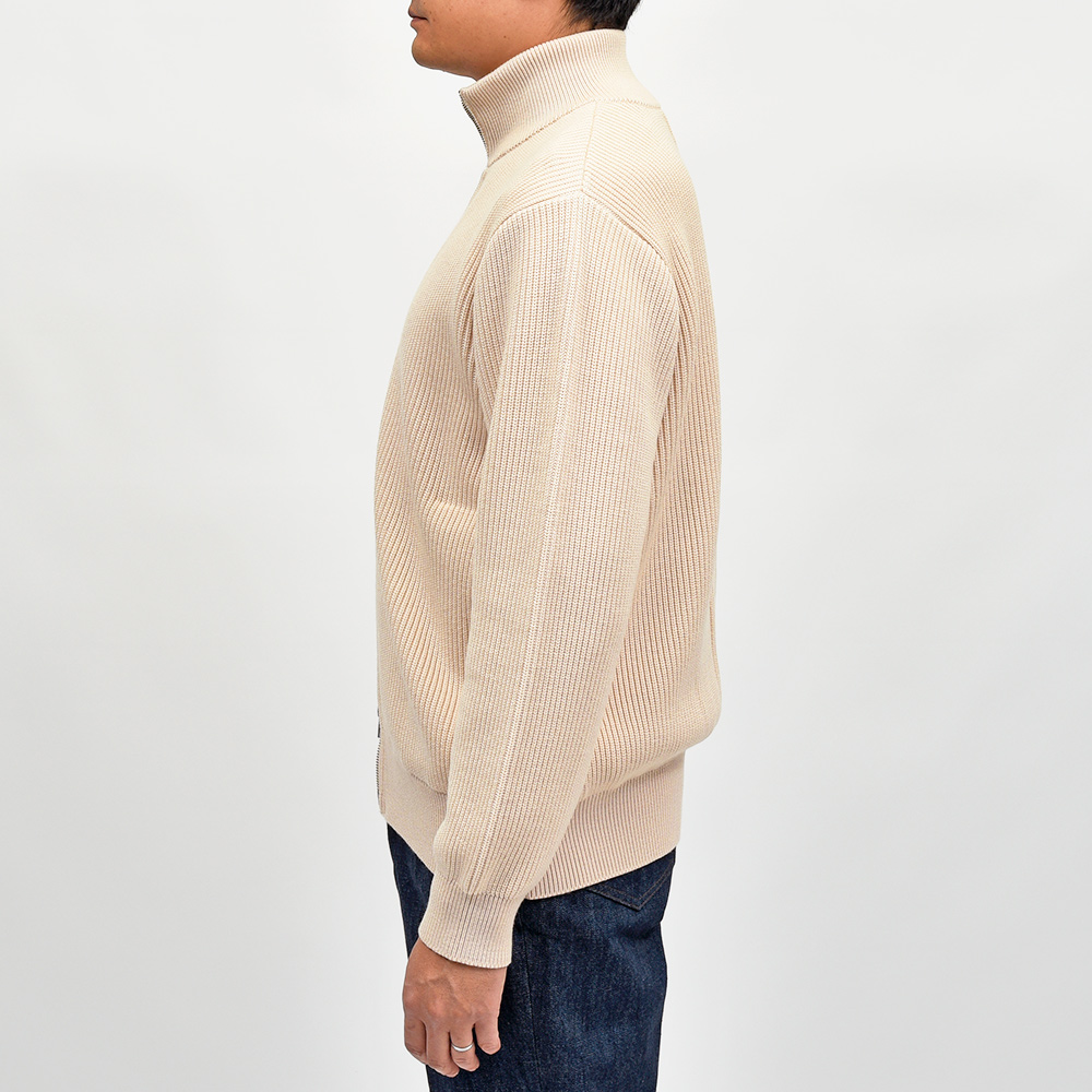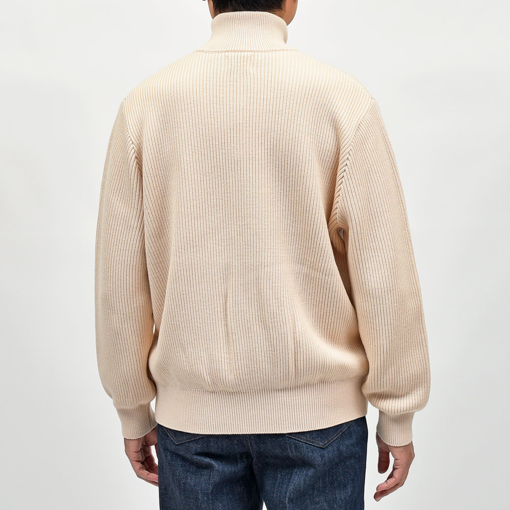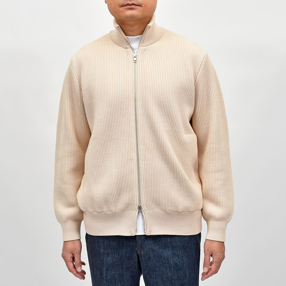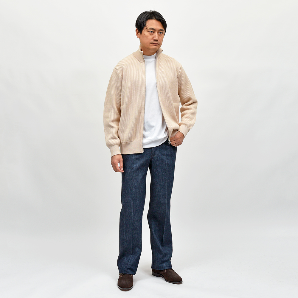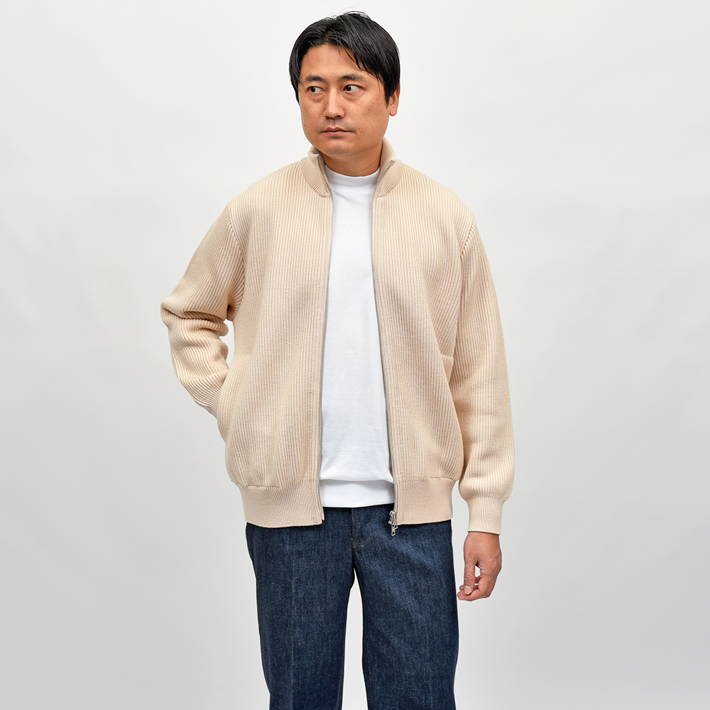 エクストラファインメリノウールを使用した7ゲージの畦編みドライバーズニット。シルクのような光沢感とカシミヤのような滑らかな肌触りを持つ高級ウールを贅沢に編み込んでいます。毛玉が起きにくく、また手洗いで洗濯ができる汎用性。こちらは片畦編みすることで軽量化し、日常使いしやすい一着となっています。