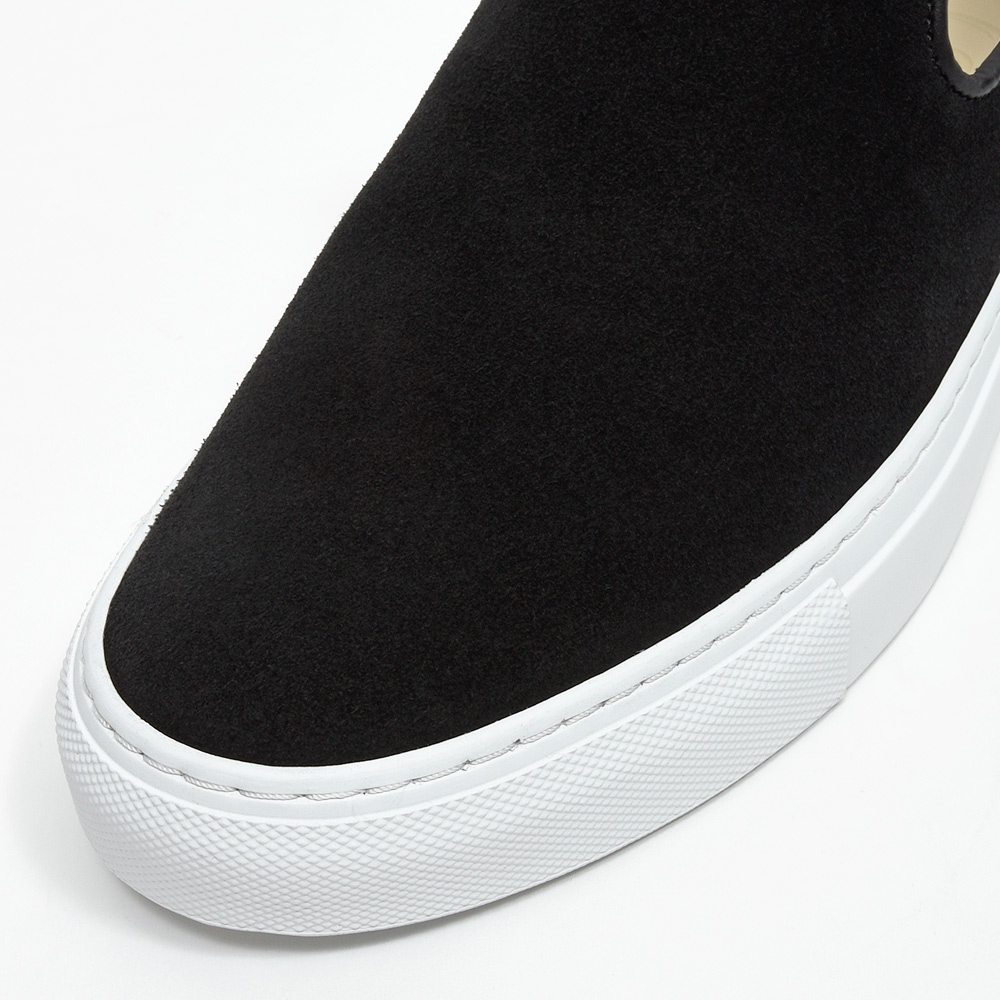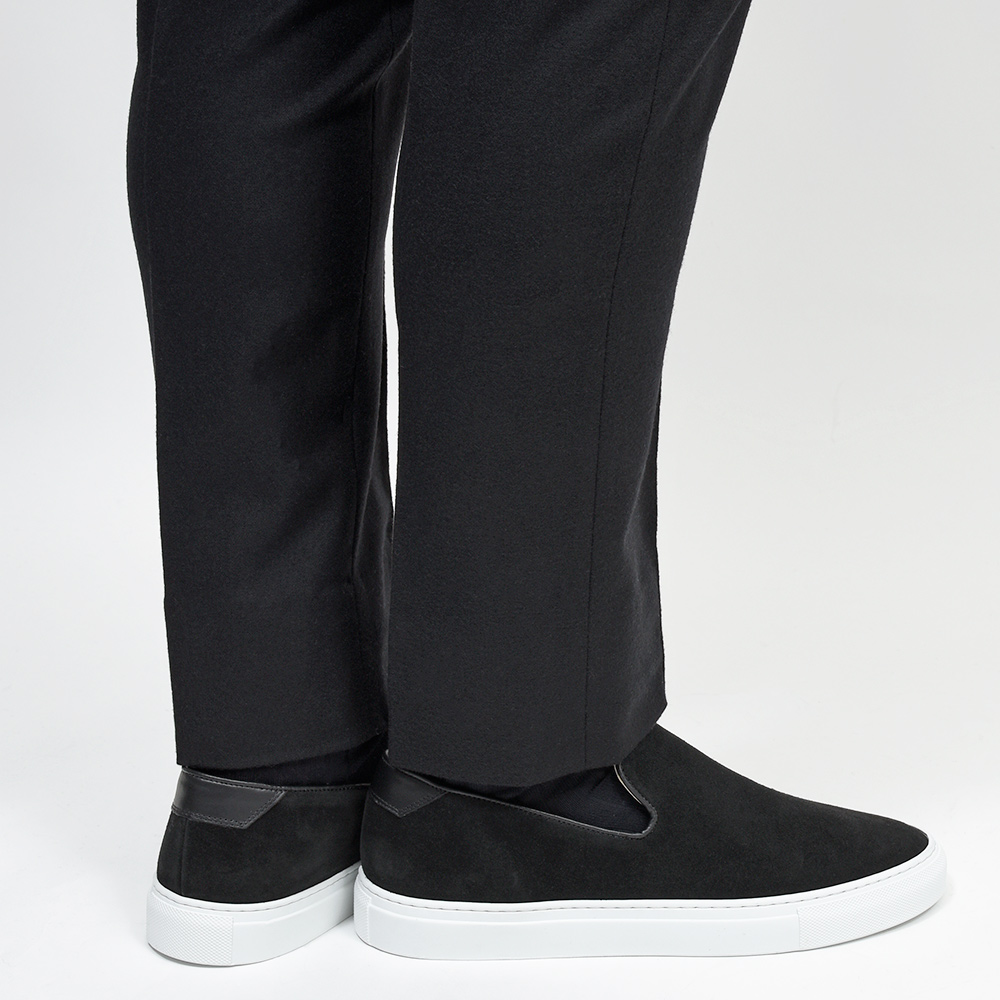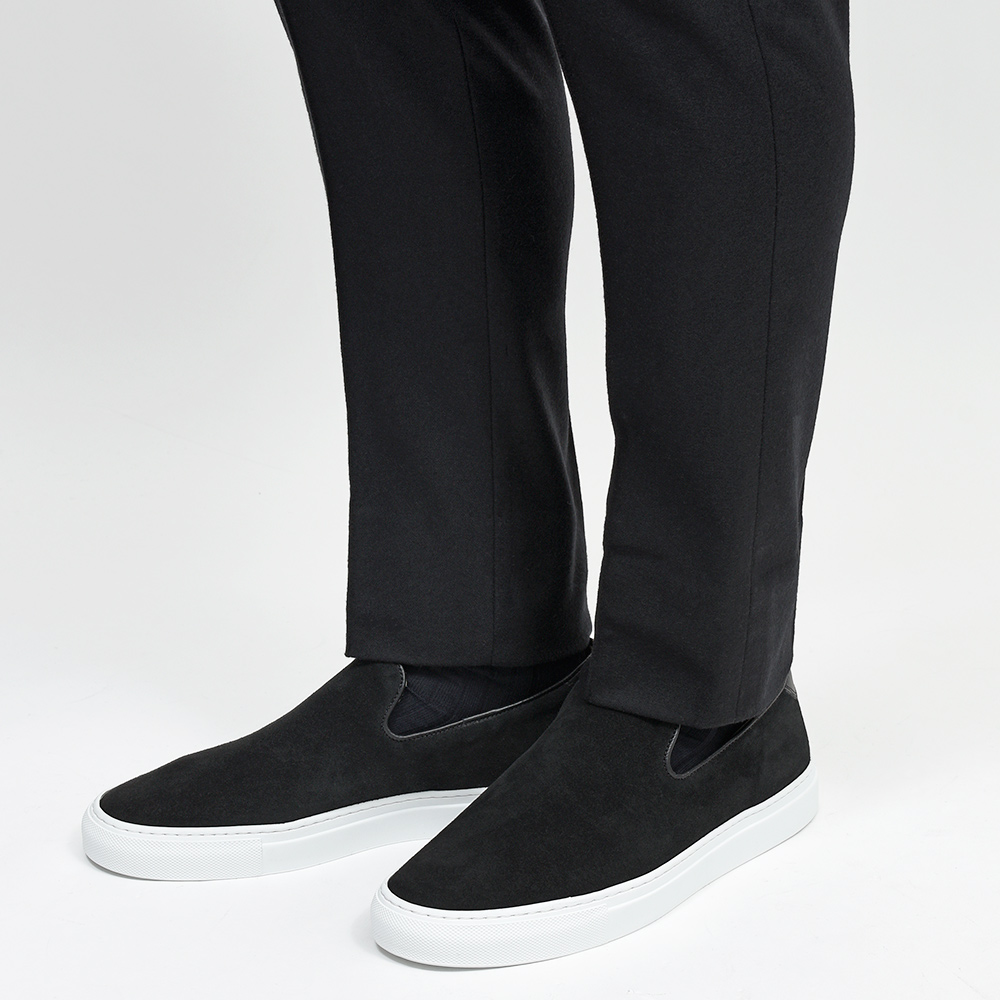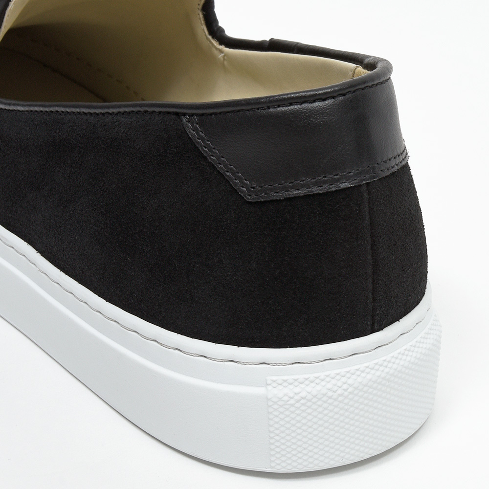 アッパーに使用されている上質なカーフスエードは勿論、インナーレザーや天然ゴムを使用したソールに至るまで、全てイタリア製の素材を使用しています。また、インソールにはクッションを何層にも重ねることで土踏まずのアーチをサポートし、高級紳士靴に使用されるシャンク入りのアウトソールを採用することで、包まれるような履き心地と安定感を実現。スウェーデンのストックホルムでデザインされたC.QPは、世界屈指のハイブランドのスニーカーを請け負うポルトガルの工房で、熟練の職人がハンドメイドで作り上げています。上質な素材と卓越した技術によって、このC.QPらしいラグジュアリーな雰囲気が生み出されています。