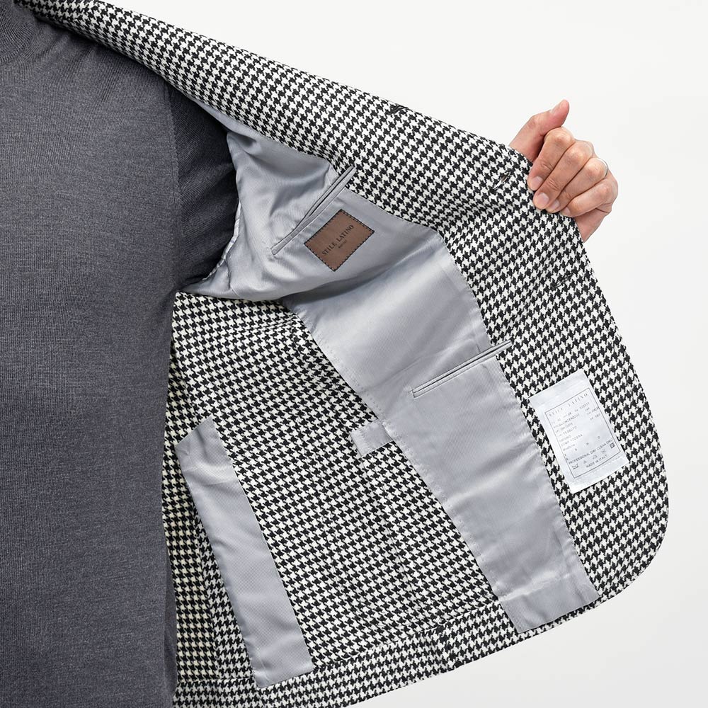 モダンな色気を香らせるハウンドトゥースジャケットは、モノトーンの配色がスタイリングし易い一着です。