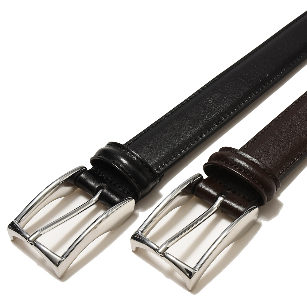 上質なカーフレザーを使用したドレスベルトは、魅力的な輝きを放ち身も心も引き締めるドレススタイルには欠かせない存在。Anderson'sのドレスベルトは、素材の良さによる輝くような上品さがシンプルだからこそ際立つ逸品ではないでしょうか。またこちらは、以前のモデルから少し厚みのあるバックルに変更されたモデルになります。