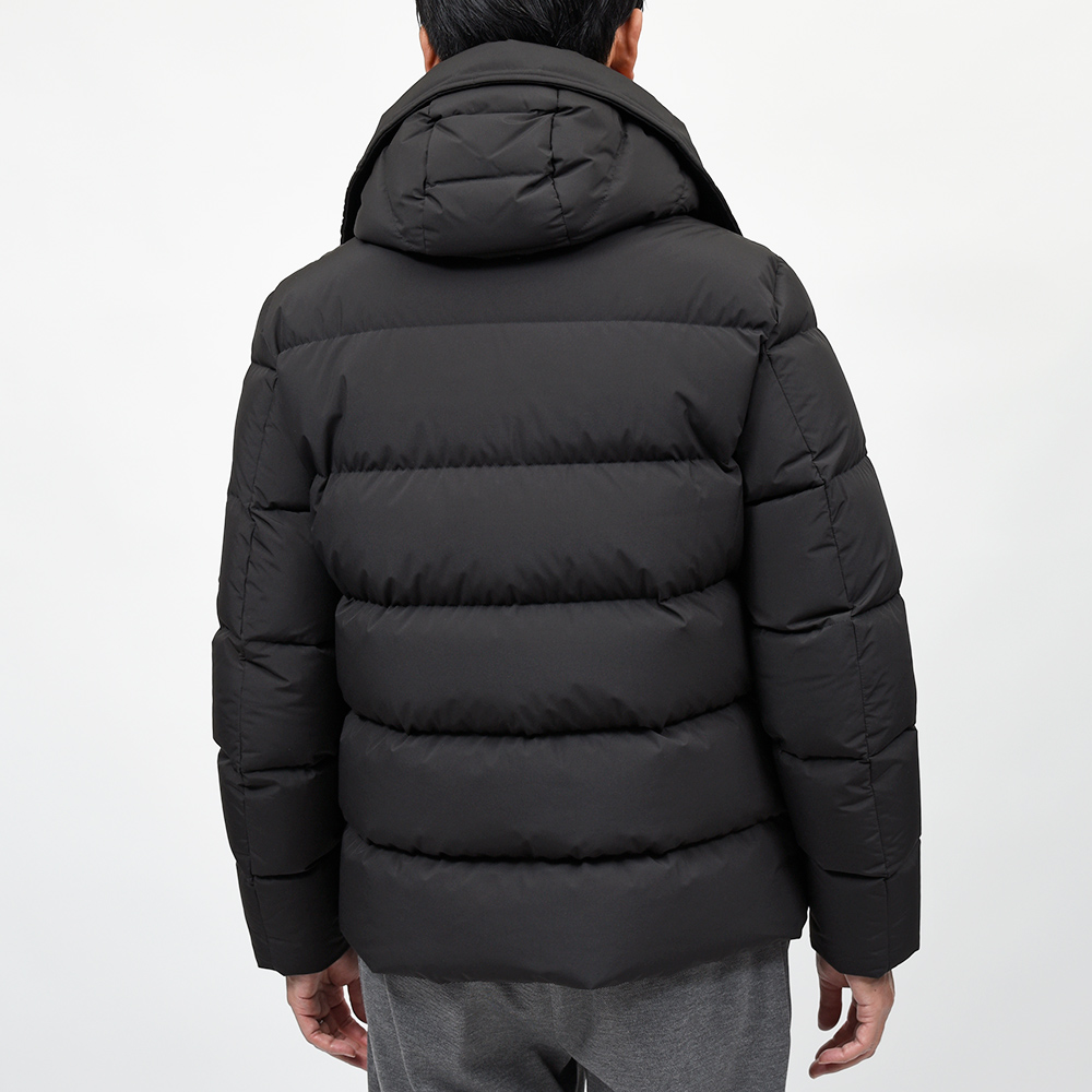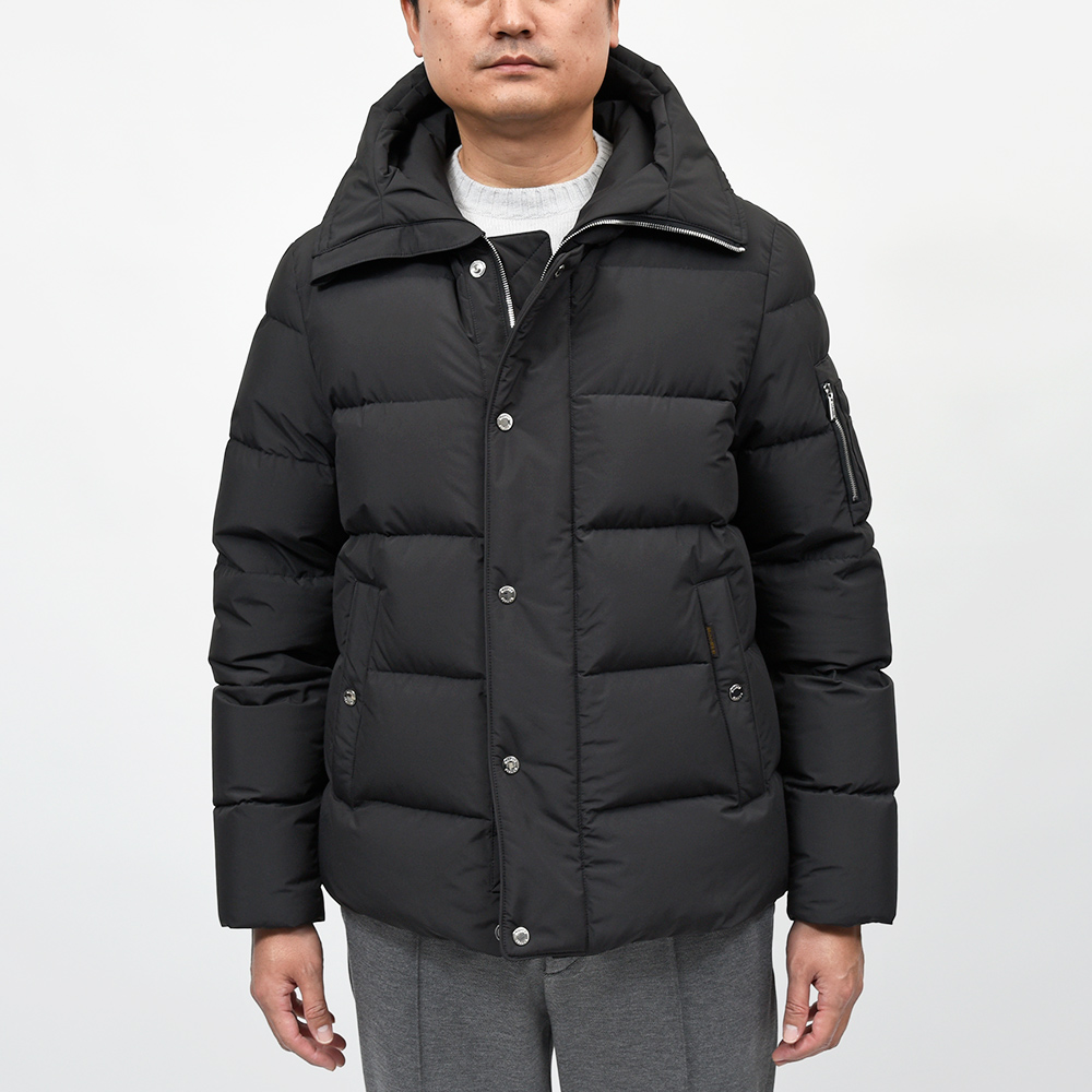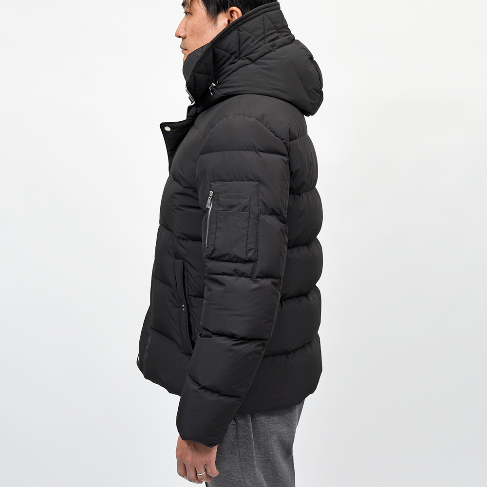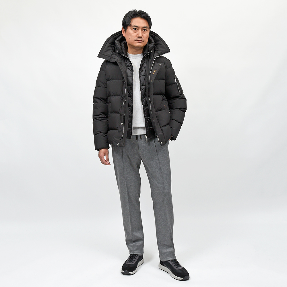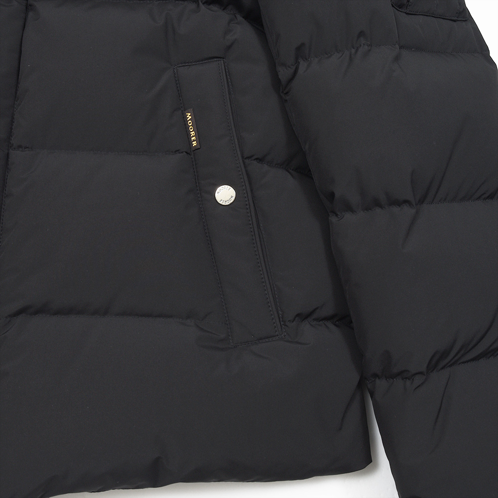 MooRERは最高のフィルパワーを誇るシベリア産の最高級ホワイトグースダウンを贅沢に使用。特注のファスナーに、裏地のナイロン素材の美しさ加えてパイピング処理を施した丁寧な仕上げ、またダウンにとって必要不可欠な防寒性に隙はなく、かといって着膨れしないシルエットは秀逸としか言いようがありません。