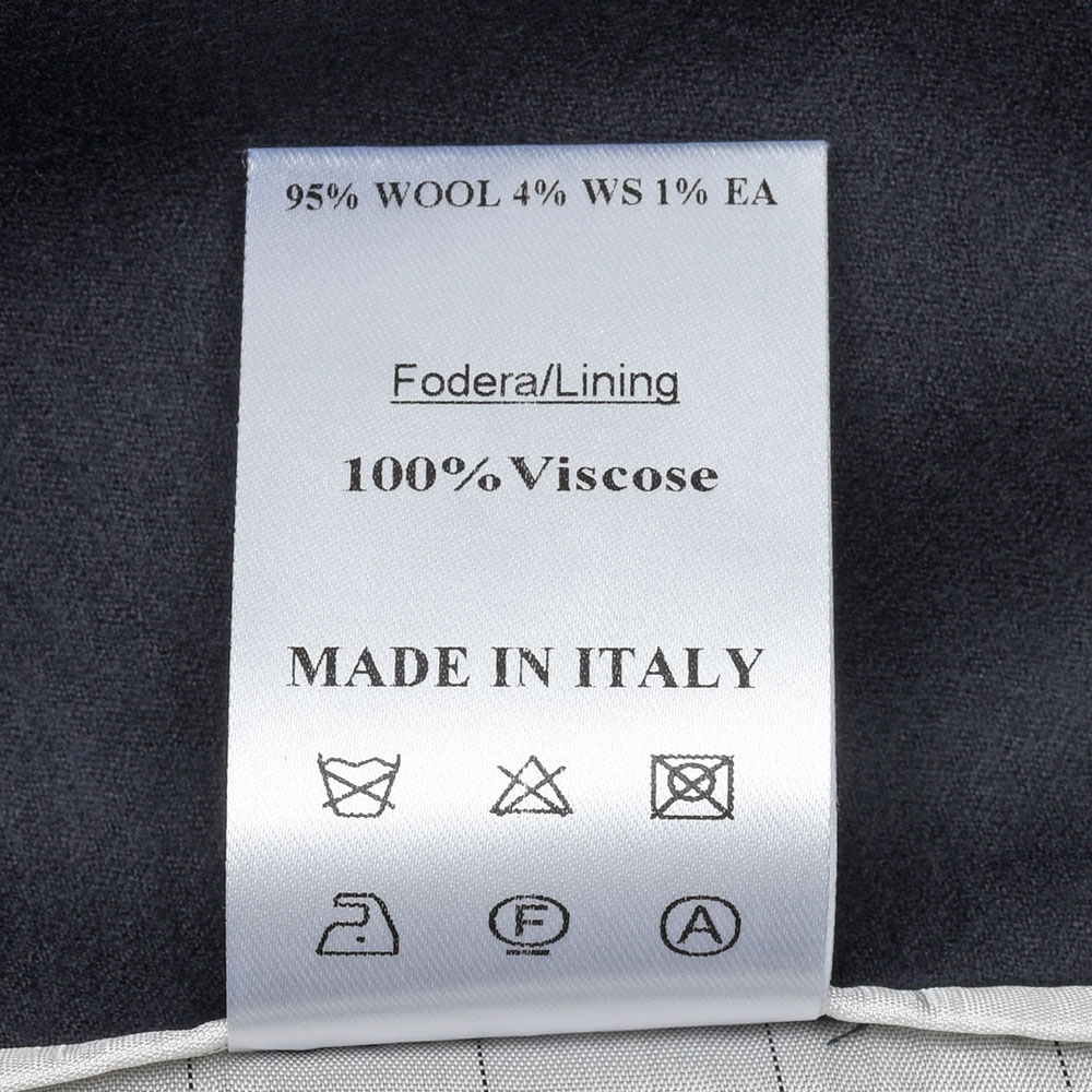 2パッチポケット、サイドベンツ、ラペル幅10.5cm、袖アンフィニッシュド(本切羽・開き見せなどの釦付け修理が必要)です。
