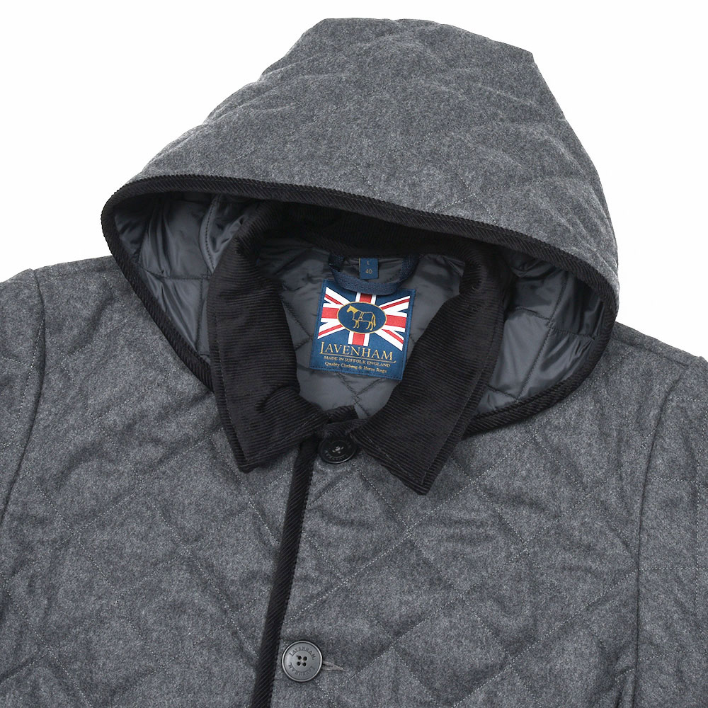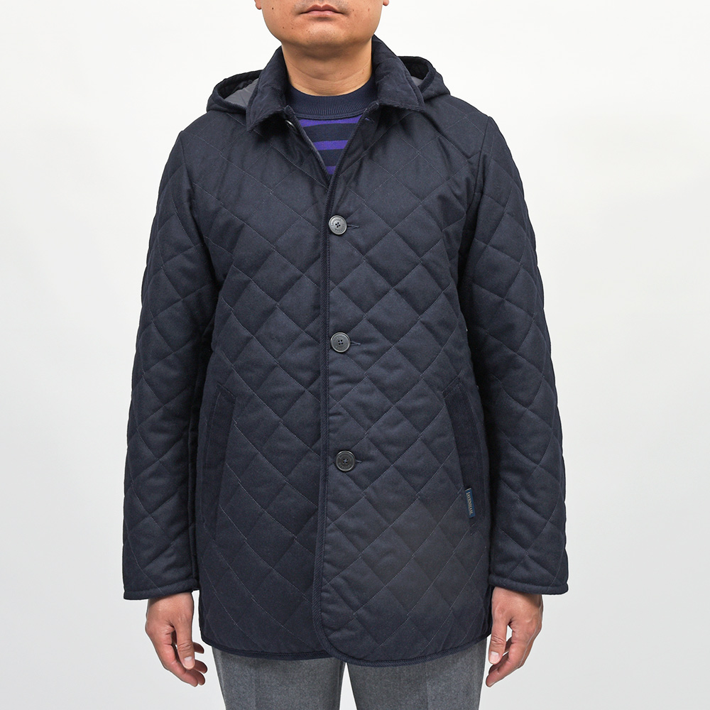 表地にポリエステルナイロンよりも保温性の高いウール素材を使用し、LAVENHAMの代名詞とも言える“2インチダイヤモンドキルティング”で仕上げた盤石の仕様に、軽量でありながら保温性に優れた中わた。耐久性の向上のために施されたオーガニックコットンのコーデュロイバインディングなど、現在でもすべての商品をサフォーク州サドバリーの自社工場で製造する品質管理の徹底ぶりによって、キルティングジャケットといえばLAVENHAMという確固たる地位を築いています。