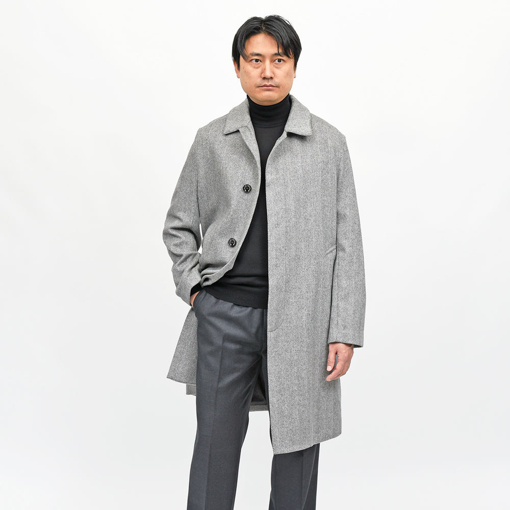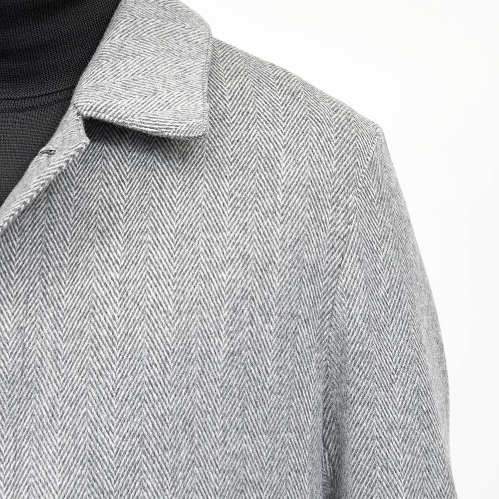 極上の柔らかさを持ったヘリンボーンのライトフランネルは、Loro Piana(ロロ・ピアーナ)のカシミヤ素材のレインシステム。カシミヤの風合いはそのままに、撥水性能を備えた機能性を持ちます。さらに、軽い目付けで動くたびになびく様は、エレガントな雰囲気を漂わせてくれます。
