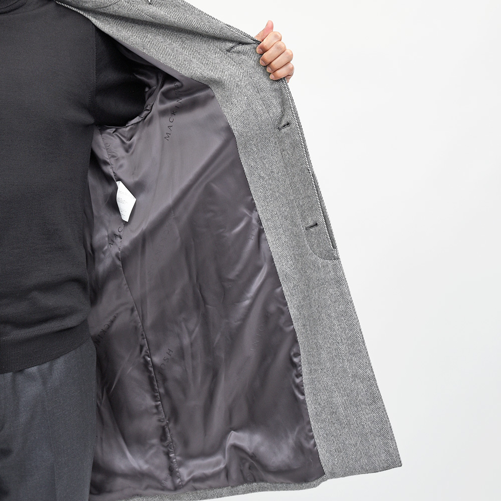 MACKINTOSHを代表するモデルの“DUNKELD(ダンケルド)”。ミニマルなデザインの美しいシルエットのコートは、立体的なパターン構造によって着心地が担保されています。