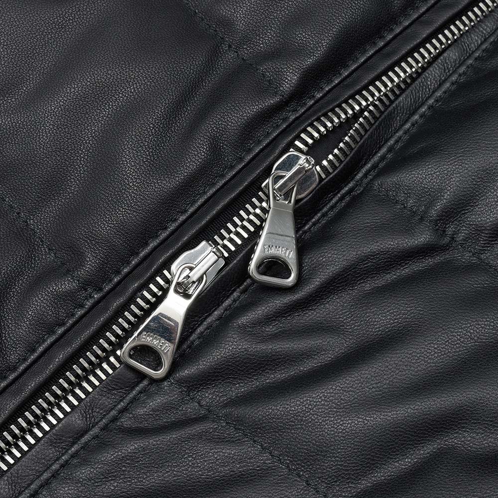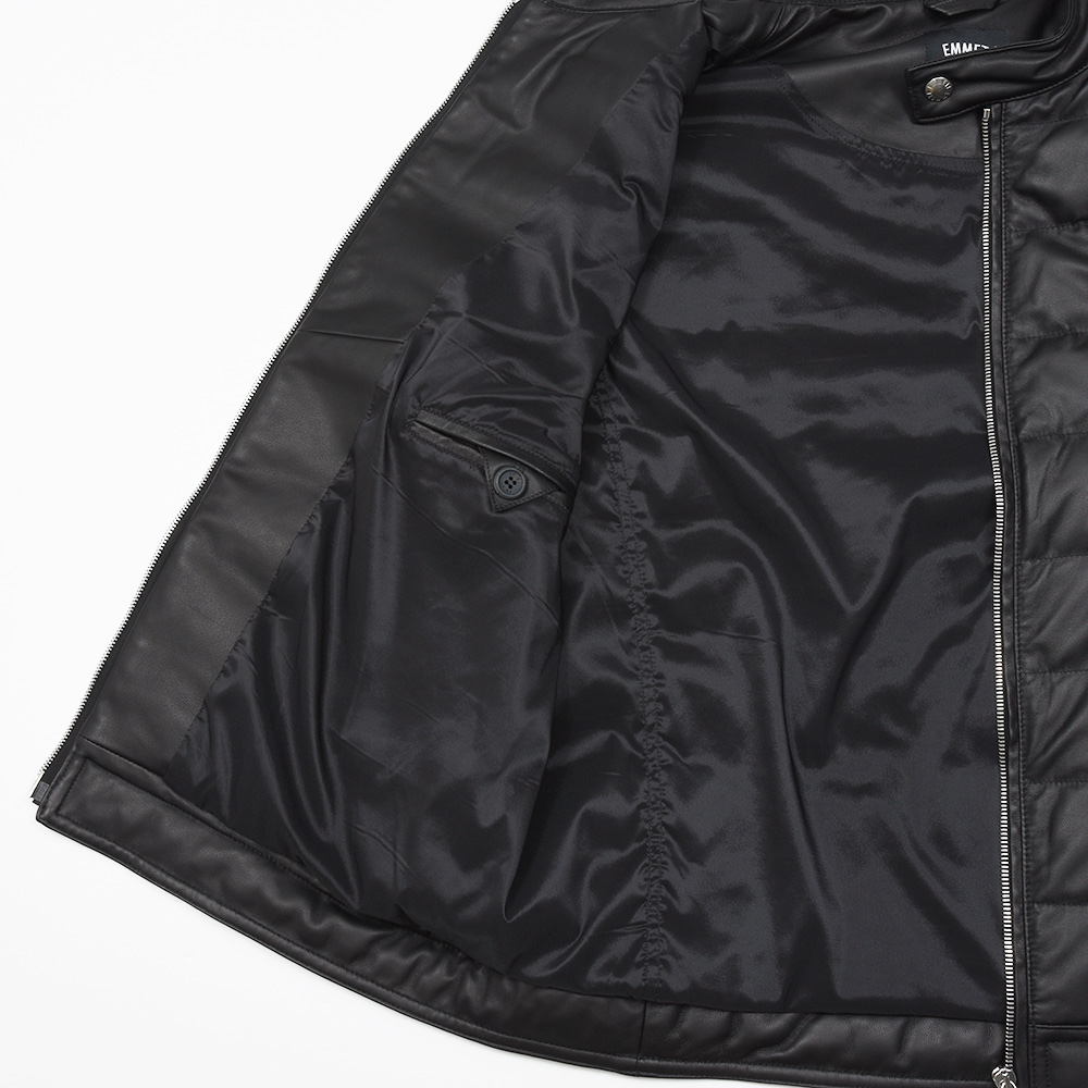 言わずと知れた、EMMEIの大定番シングルライダース“JURI”。その人気は不動のものとなり、現代のライダースジャケットにおいて代名詞とも言えるほどの知名度になりました。そんな“JURI”をベースとして、登場したモデルがこちらの“JURI DOWN VEST”になります。本家を彷彿とさせるシンプルで洗練されたデザインとシルエット。ステッチが入ることでダウンジャケットらしい見た目にはなっていますが、ダウン量を抑えたライトなウエイトですので着膨れ感が無く、“JURI”らしいスマートな雰囲気が残されています。