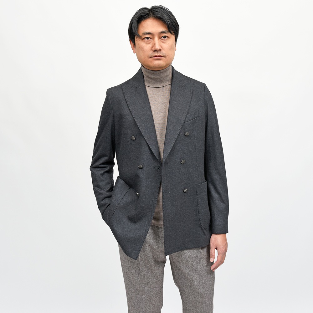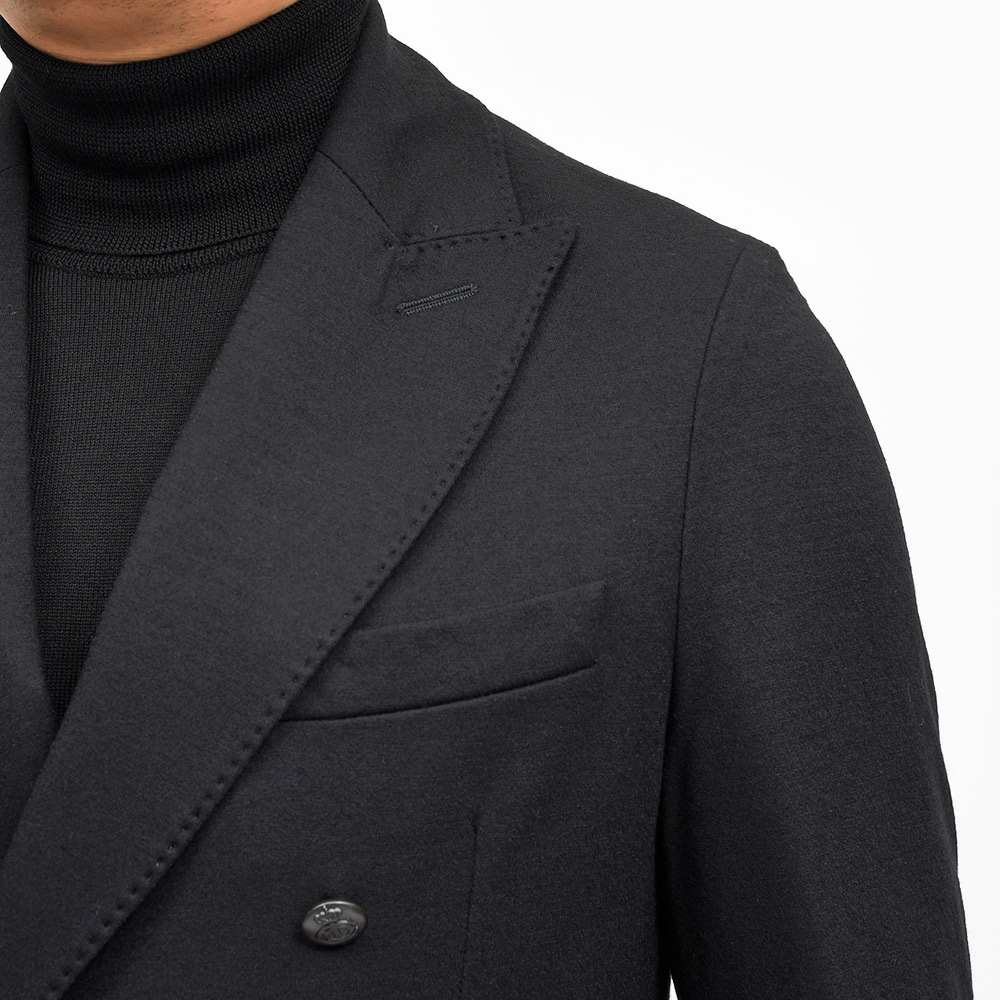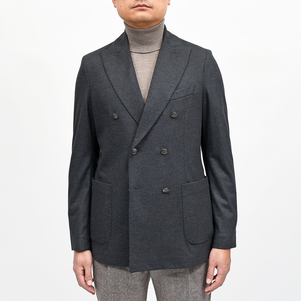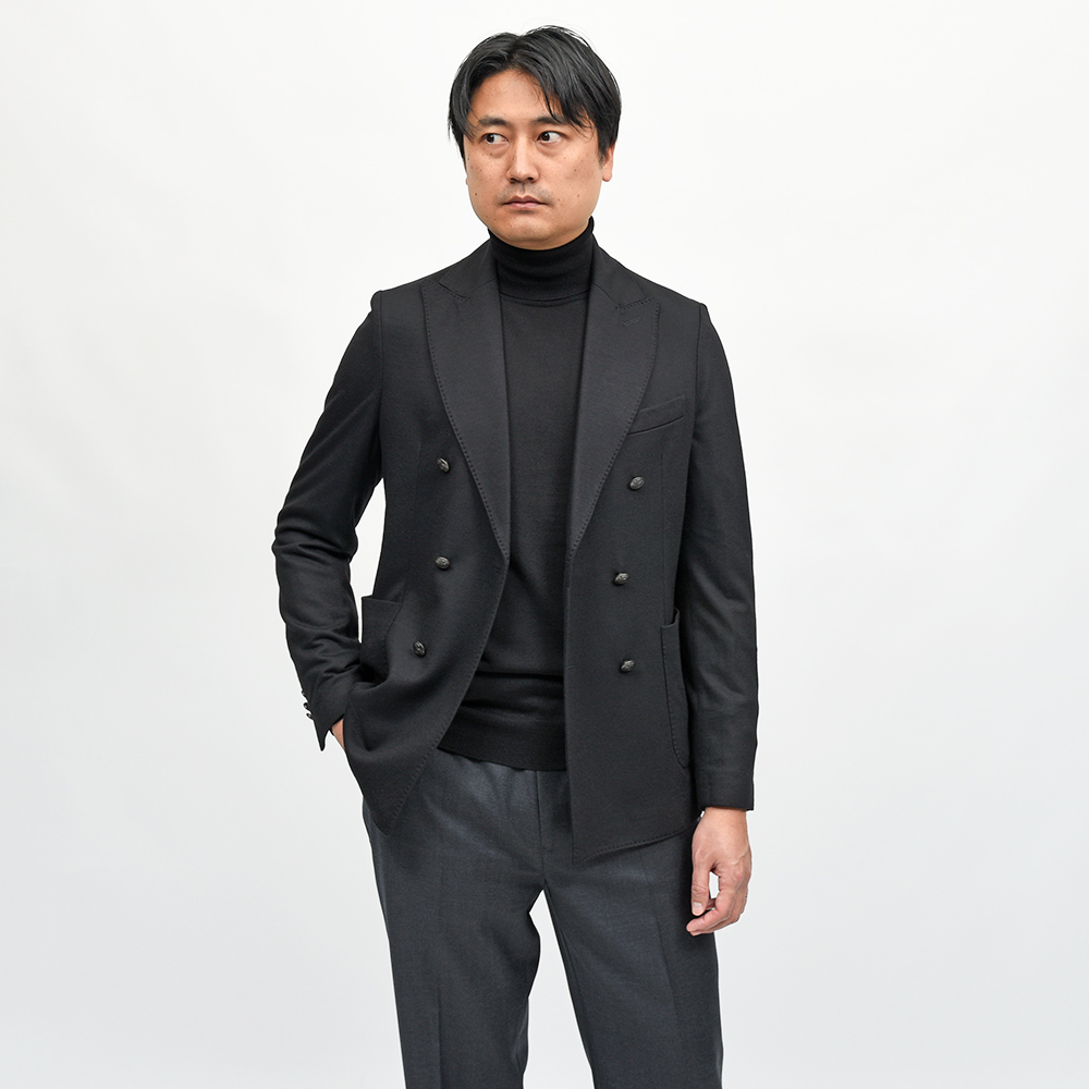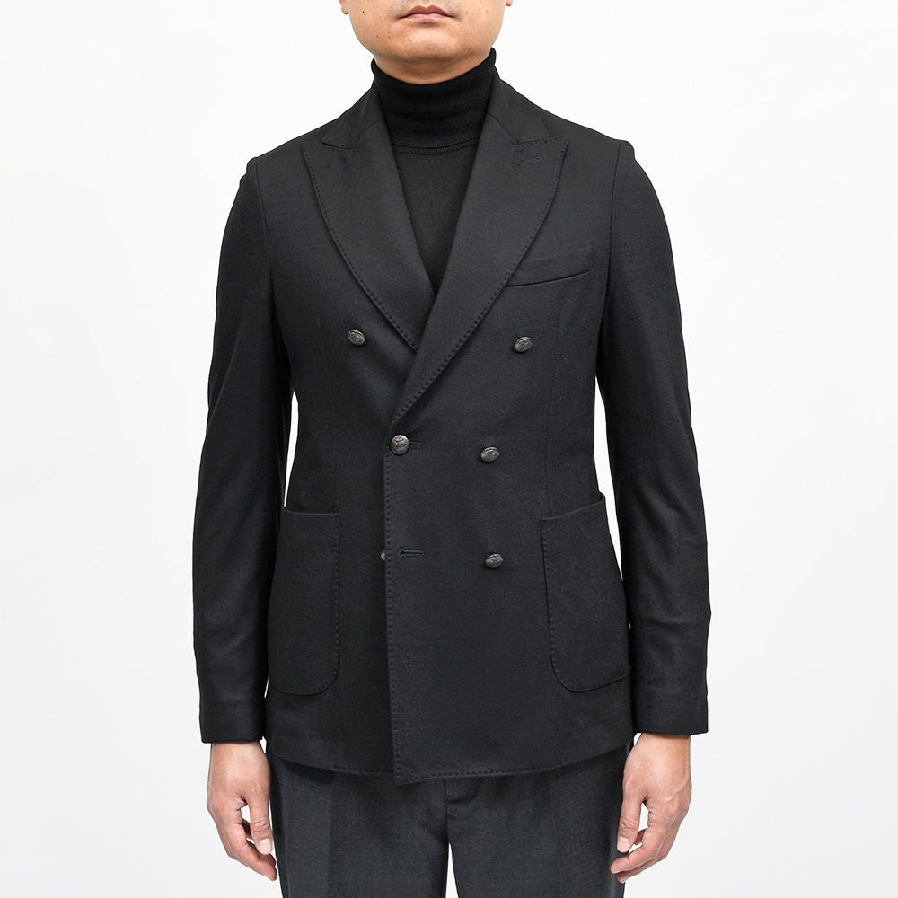 ヴァージンウールカシミヤ ストレッチ ジャージー メタルボタン ダブルジャケット