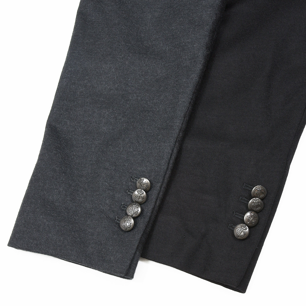 モデルは程よくタイトなシルエットに、やや狭めのダブルブレストの6つメタルボタン仕様。モダンなカジュアルジャケットとして非常に有能な働きをしてくれます。
