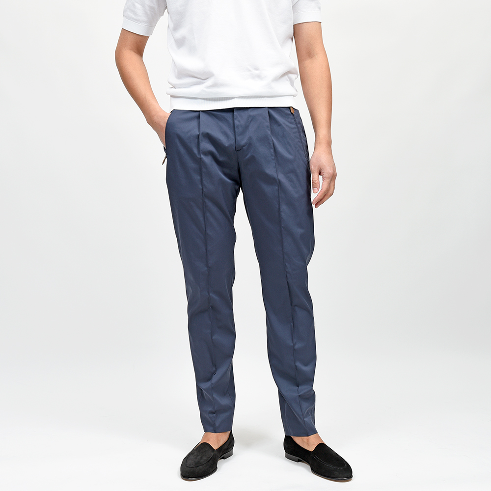 真夏でも穿けるライトなポプリン生地は、暑い季節でも程よくキッチリ感を演出してくれる一本です。