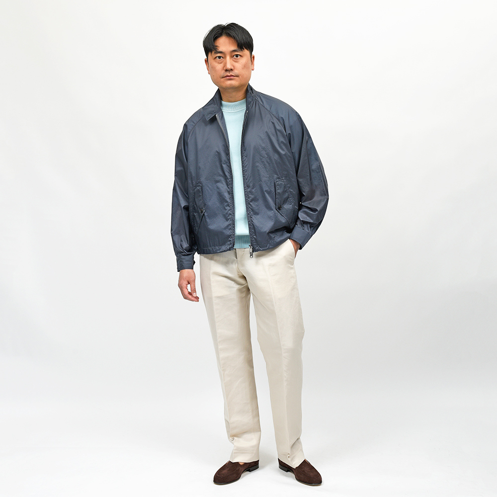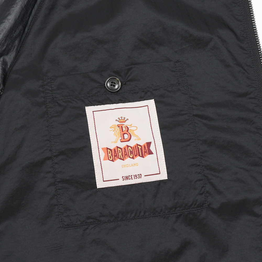 BARACUTAを代表するモデル“G9”の数年後に誕生したセカンドアイコンとも言えるモデルがこちらの“G4”です。G9に比べ、やや着丈が長く、袖口と裾がリブ仕様ではないためフワッと広がるシルエットが特徴的ですが、裾にはドローコードがあるため絞ることで違った印象を作り上げてくれます。また、ドッグイヤーカラーやラグランスリーブ、アンブレラヨークといったG9のアイコニックなディティールは継承されており、一目でBARACUTAであるという存在感を残しています。