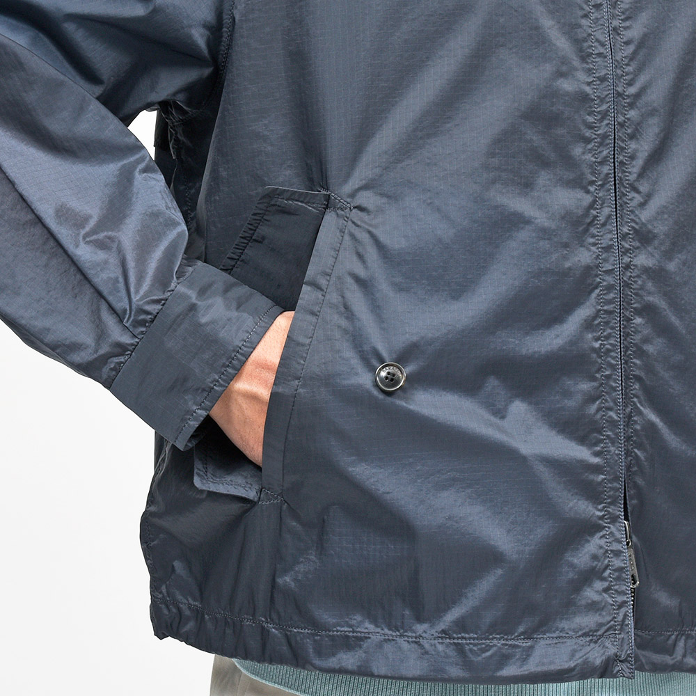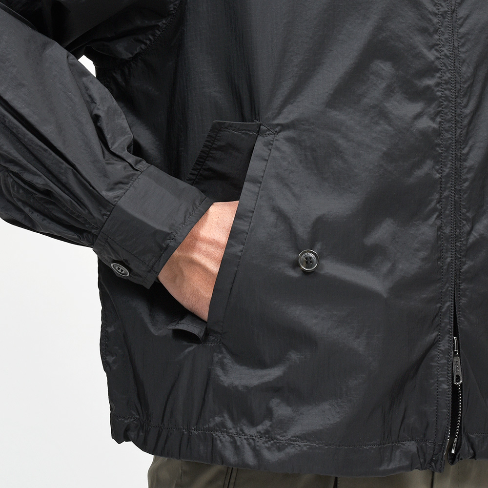 ファブリックは防風性と高い耐久性を持った、ナイロン素材の超軽量なリップストップ。日常着の羽織物としてはもちろん、いざという時に備えてバッグに忍ばせたり、旅行時に持ち運ぶにも便利な一着となっています。