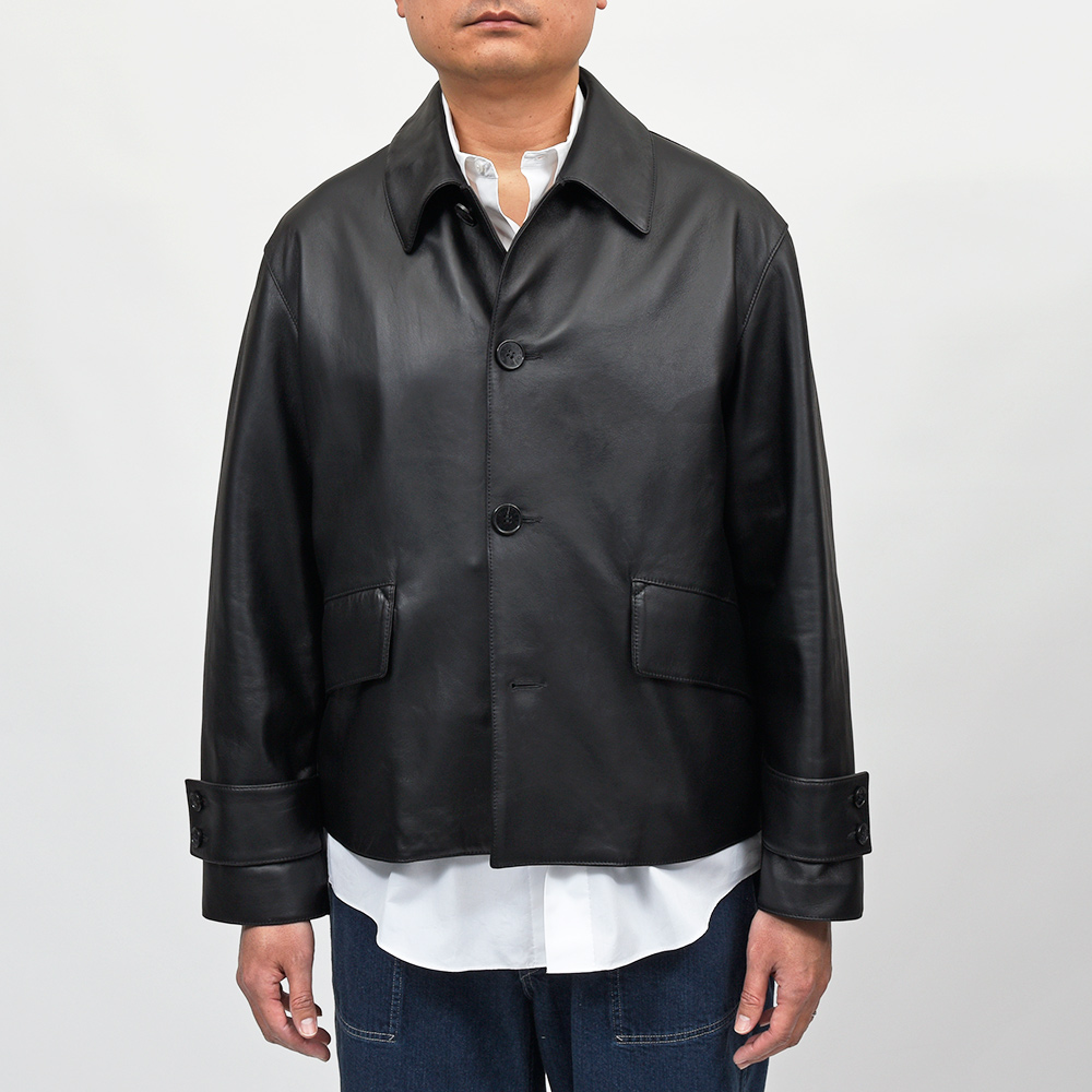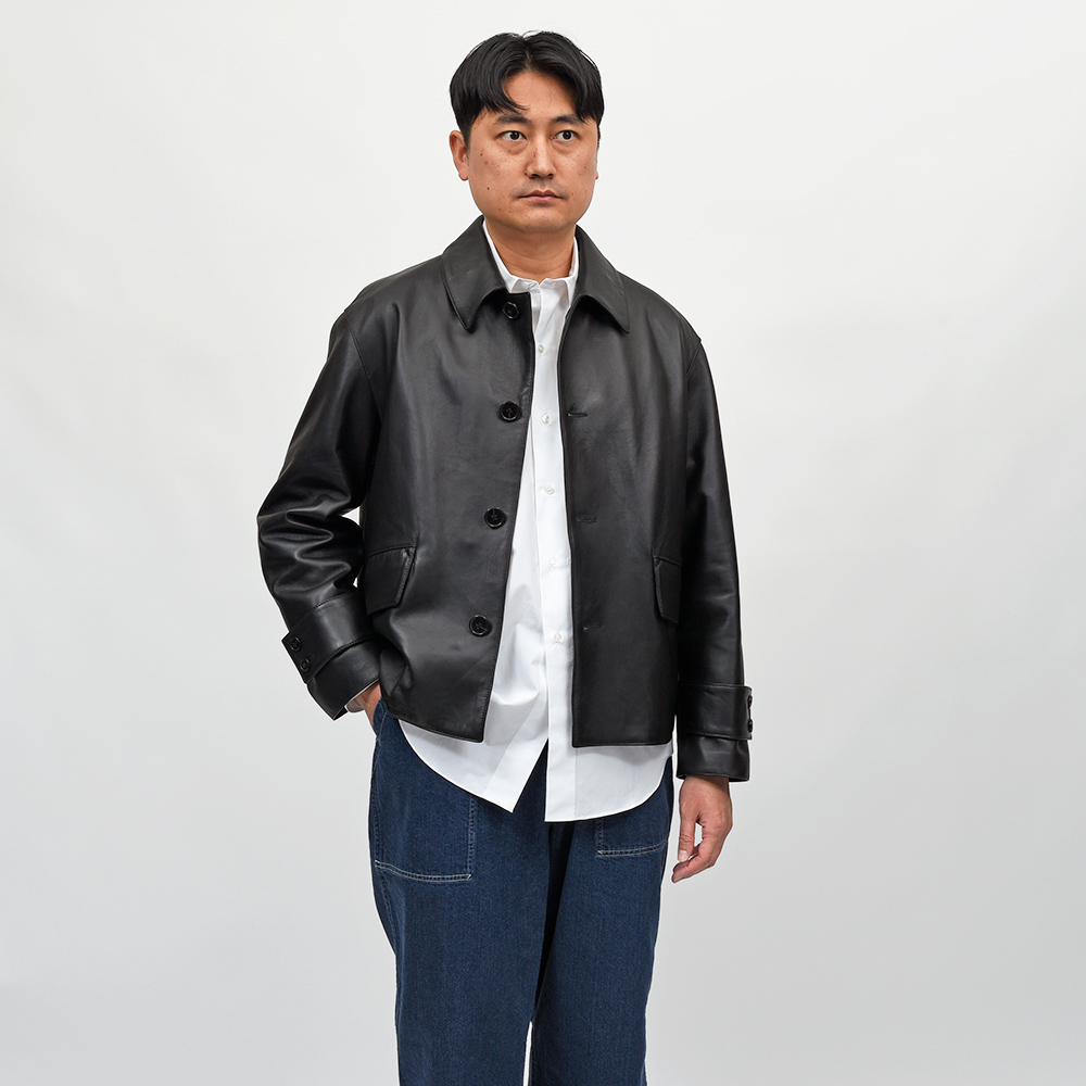 非常に柔らかで美しい艶感を持ったラムレザーを使用したHUMBIEジャケット。HUMBIEのデザインはそのままに、コートではなくジャケット丈にすることで洗練されたデザインが魅力的です。