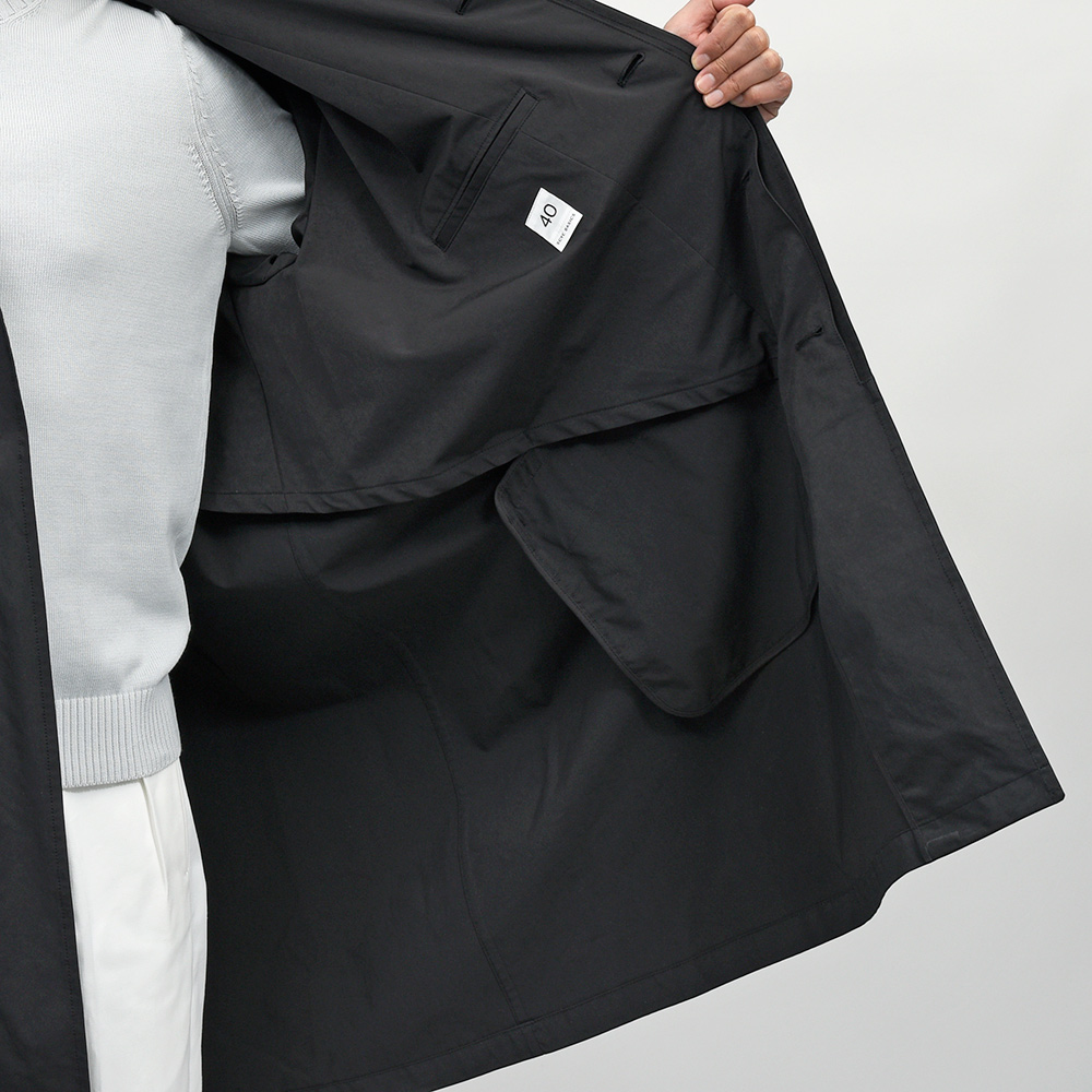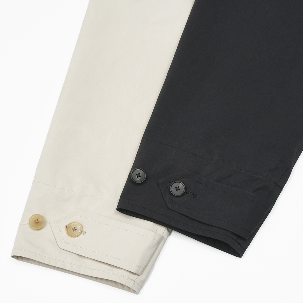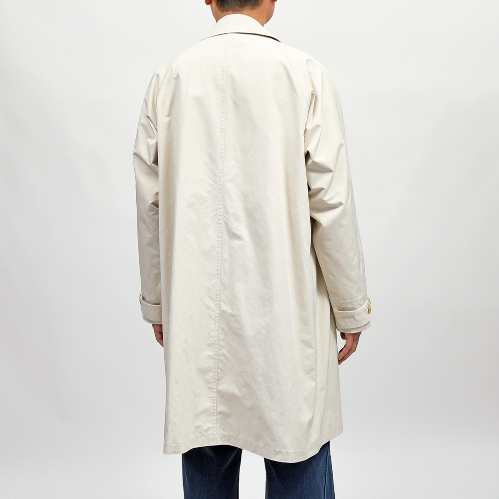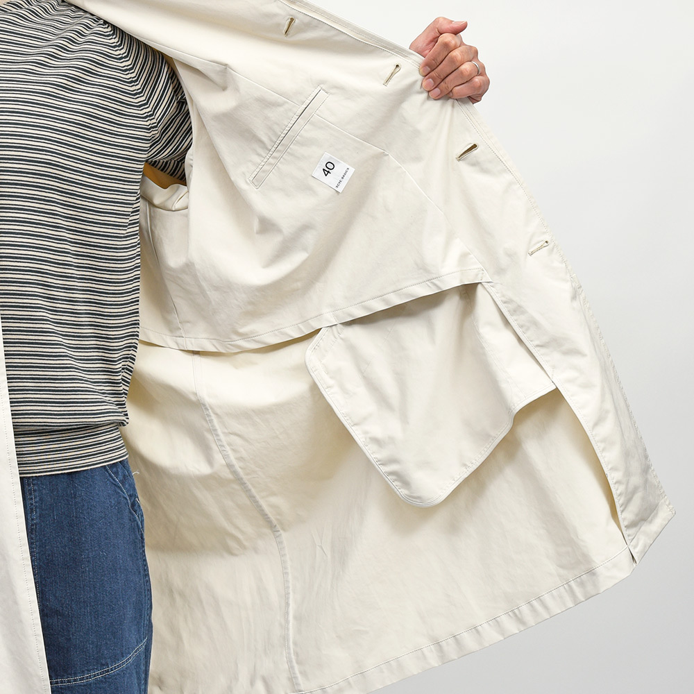 トラディショナルなバルカラーコートは、特殊な加工を施した高密度ミルクロスを採用。ヌバックのような質感にパウダリーな肌触りが特徴です。また、撥水性を持ちしなやかでありながらもハリのある肌触りとなっています。