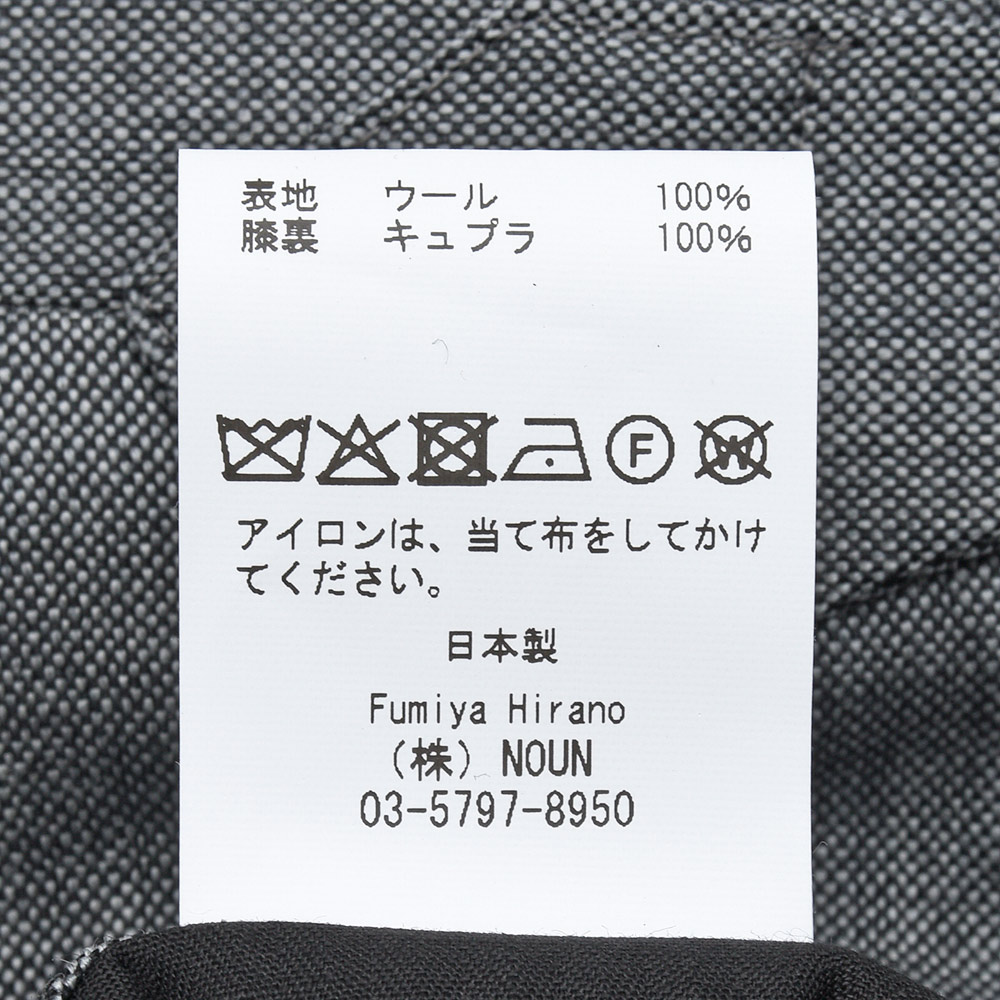 ファブリックは日本国内で生産された、Fumiya Hiranoオリジナルのウールピンヘッド。やや軽めのウエイトのこちらは、ピンヘッドらしいザラリとしたドライなタッチに、程よくハリのある質感になります。