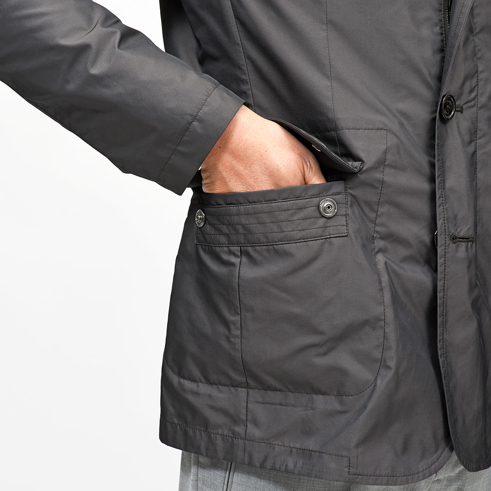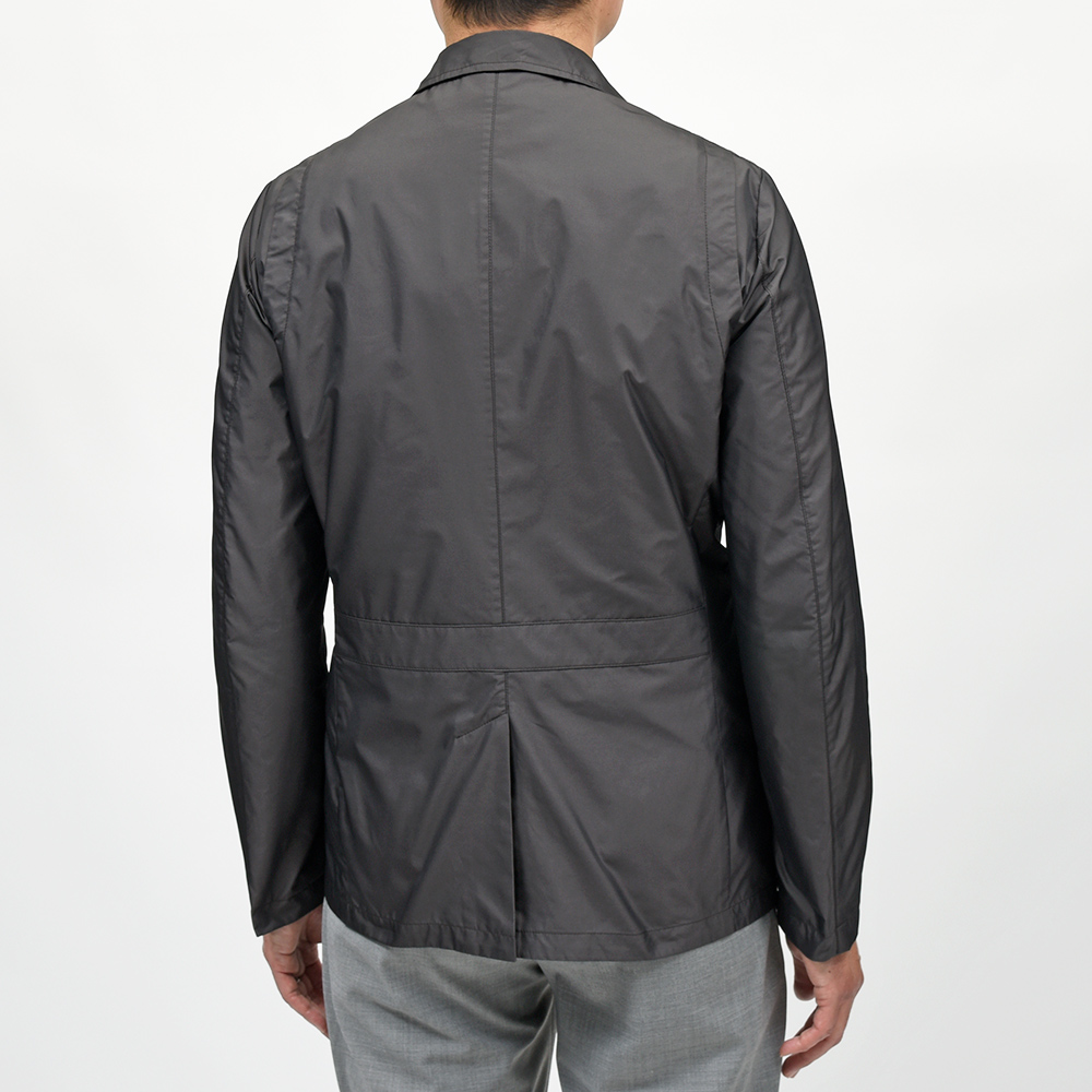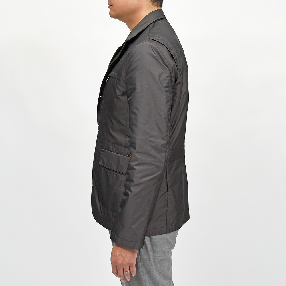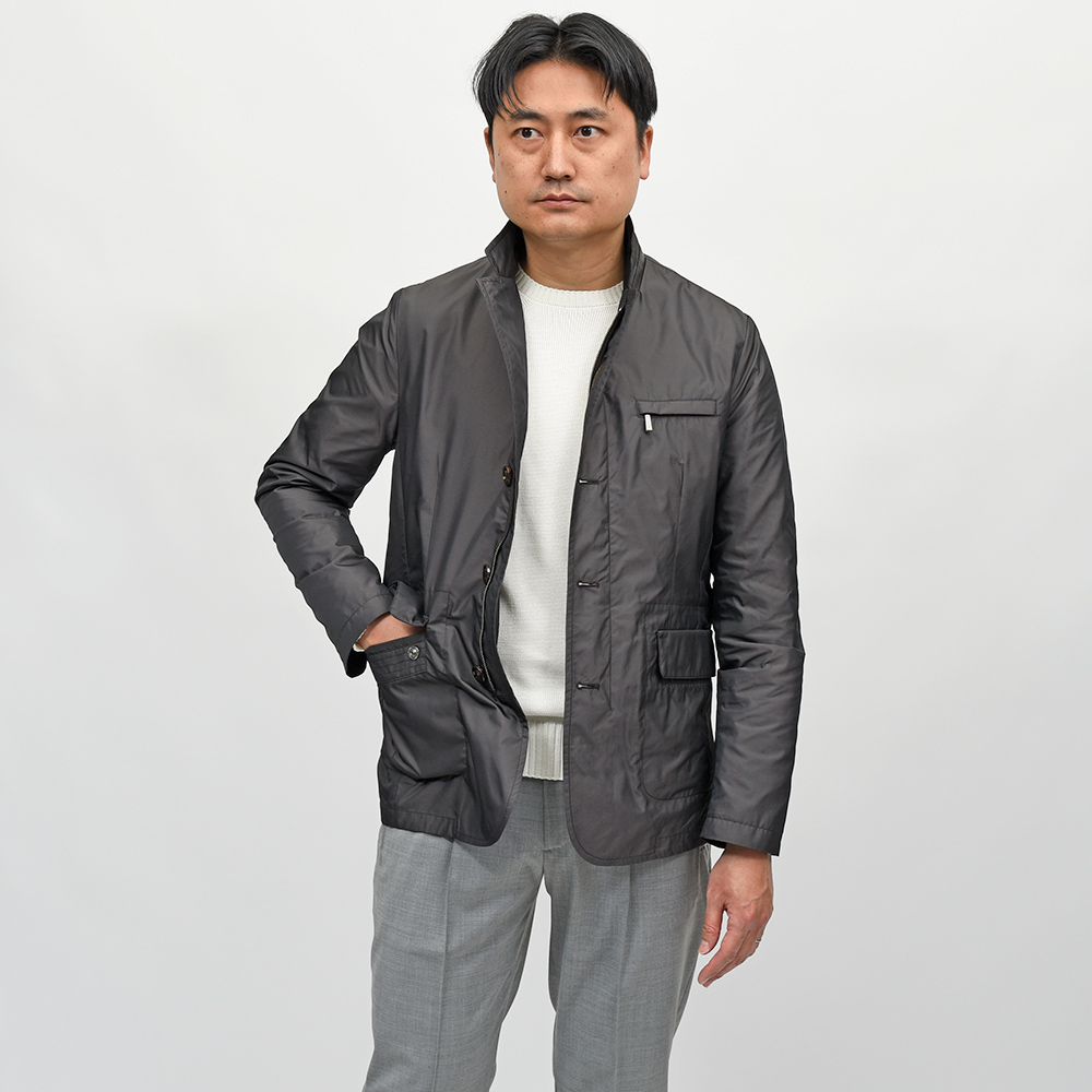 特注のスナップボタン、ファスナーやホーン釦などの拘りに、裏地のナイロン素材の美しさ加えてパイピング処理を施した丁寧な仕上げ。MooRERのアウターに死角はありません。