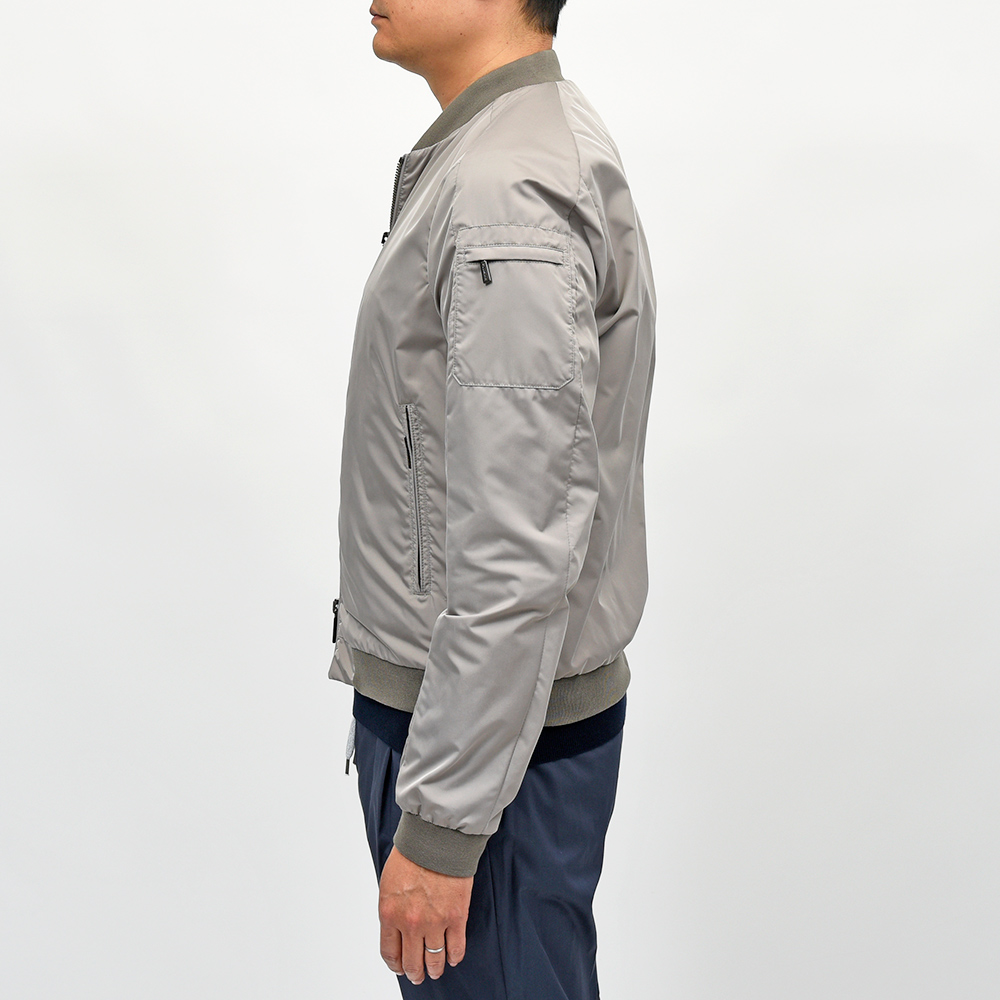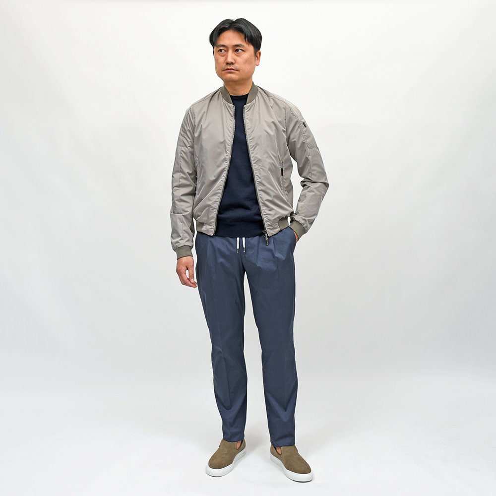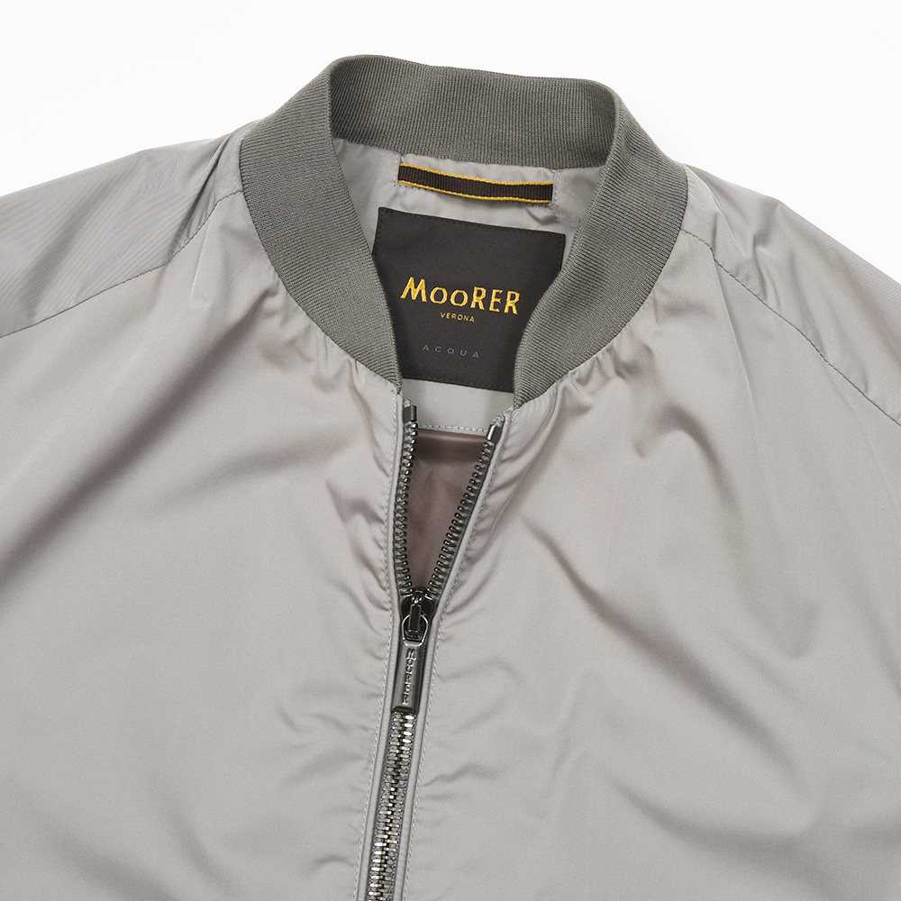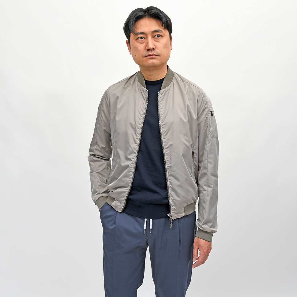 大人のナイロンアウターの代名詞と言っても過言ではない、MooRERによって生み出されたMA-1ブルゾンの“CORELLI(コレッリ)”。しなやかでマットな光沢を放つ上質なポリエステル素材に、ミリタリーブルゾンの定番であるMA-1が合わさったラグジュアリーなオーラ。特にMARMOはライトグレーにほんのりとベージュが合わさったような上品な色合いで、ラグジュアリーなMooRERの雰囲気とはベストマッチです。また、撥水加工を施したナイロン素材は、タフな仕様にも耐えてくれる実用性に富んだ一品となっています。
