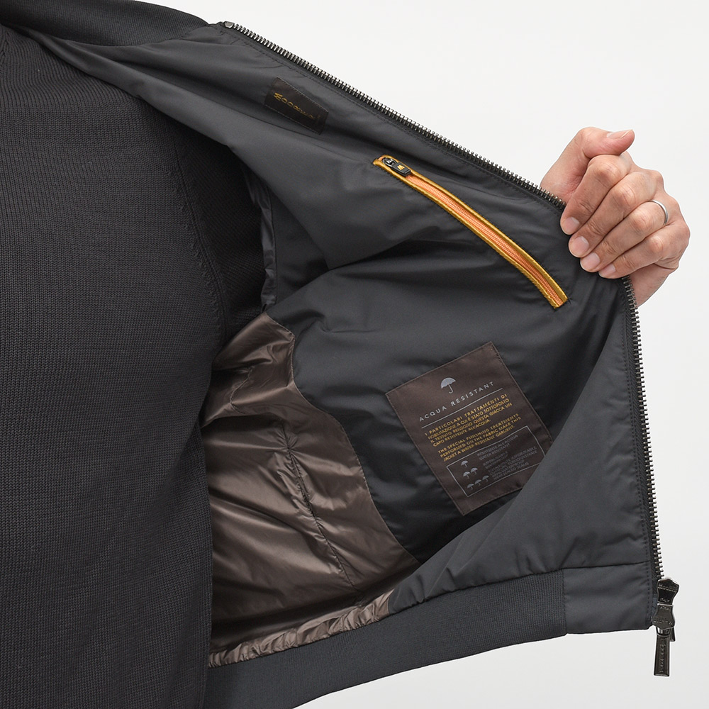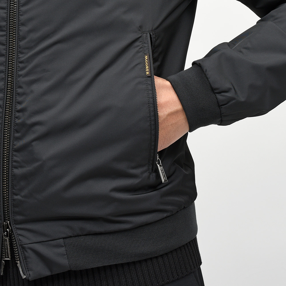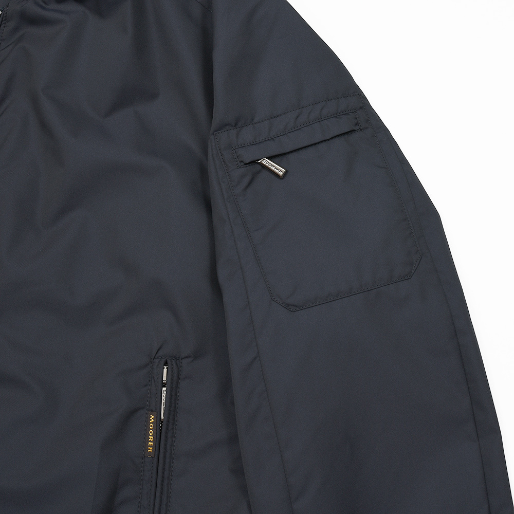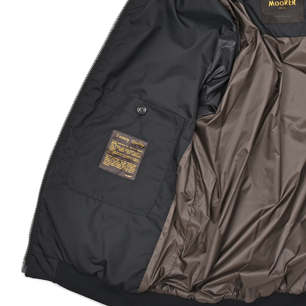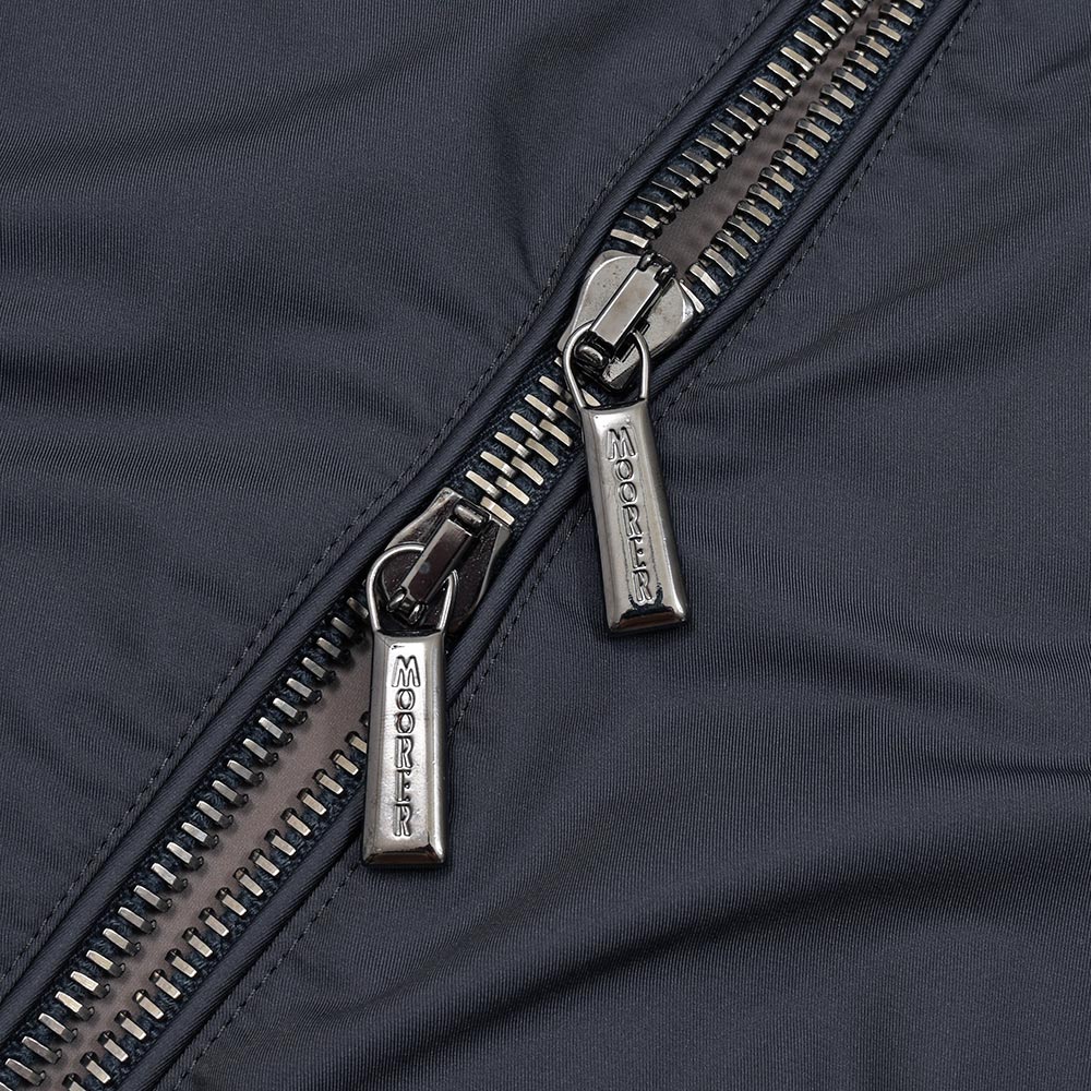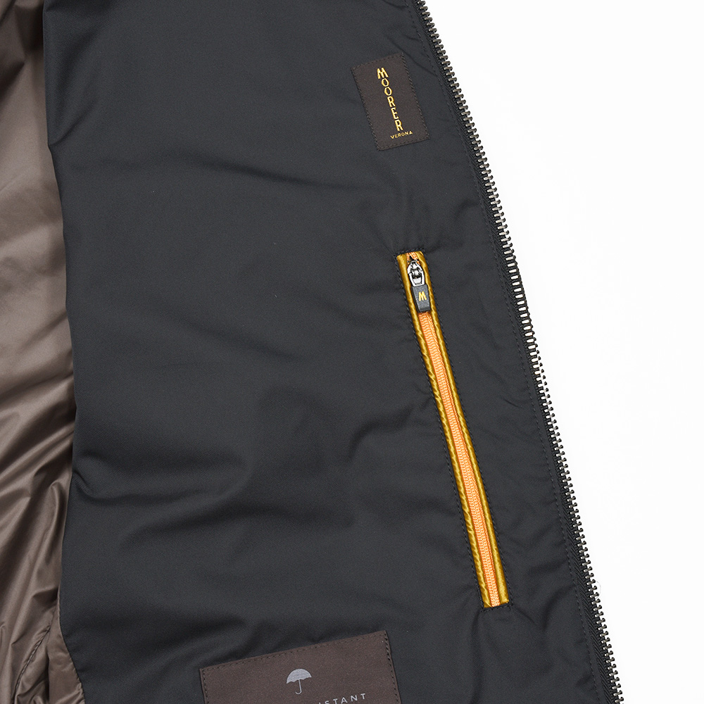 特注のスナップボタン、ファスナーやホーン釦などの拘りに、裏地のナイロン素材の美しさ加えてパイピング処理を施した丁寧な仕上げ。MooRERのアウターに死角はありません。