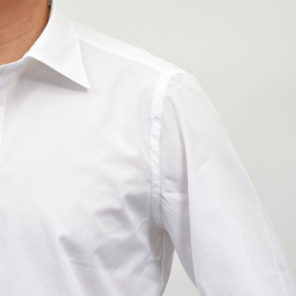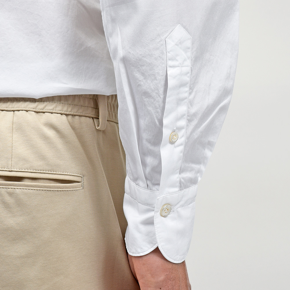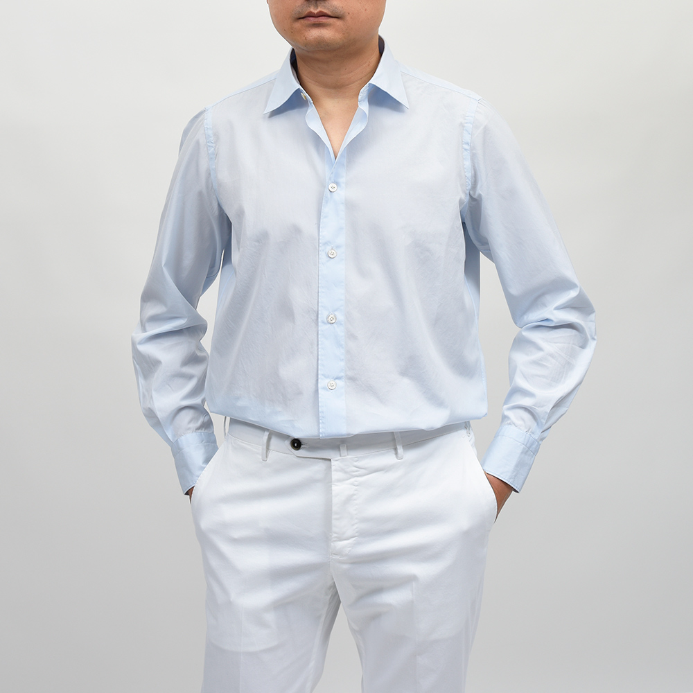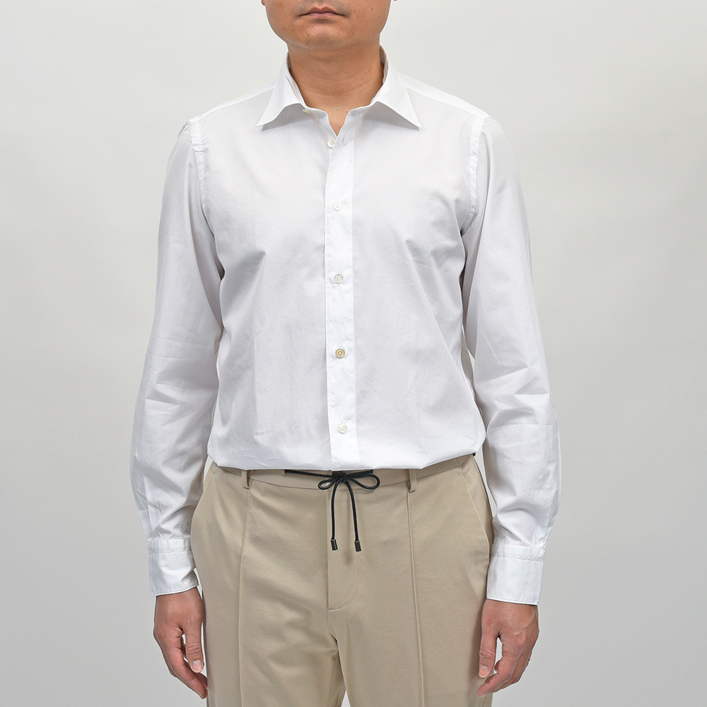 ドレスシャツにも使用されるクオリティーの、120/2(120番手双糸)コットンポプリンを採用。目付け160gのポプリンは、ライトなウエイトに程よいハリ感、滑らかさと美しい艶感を持ち合わせた上質な一品です。