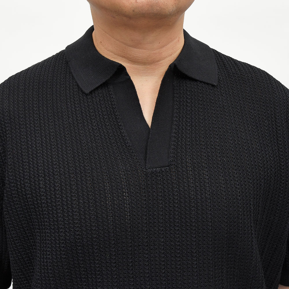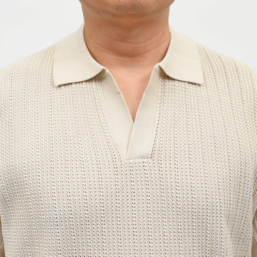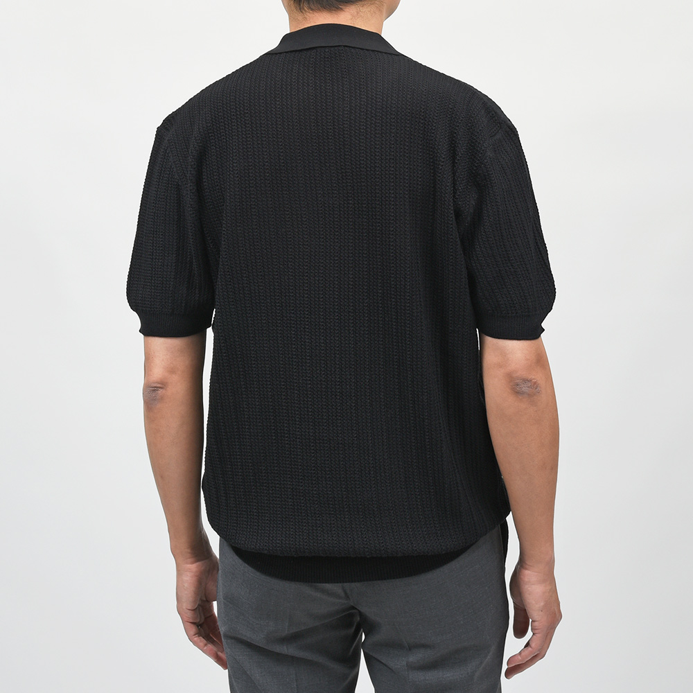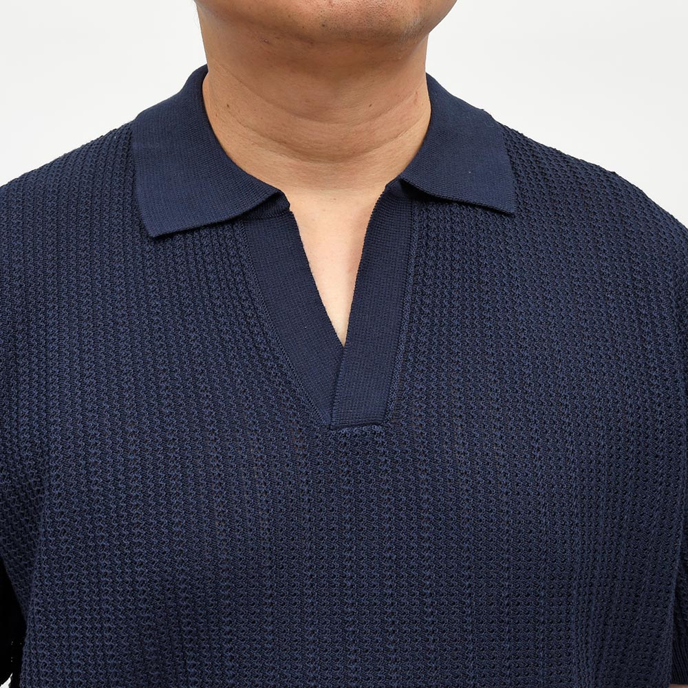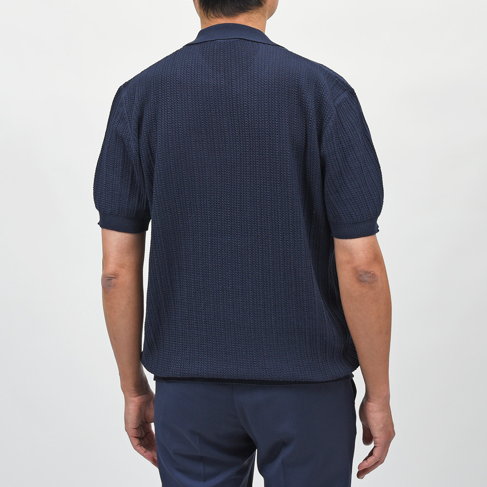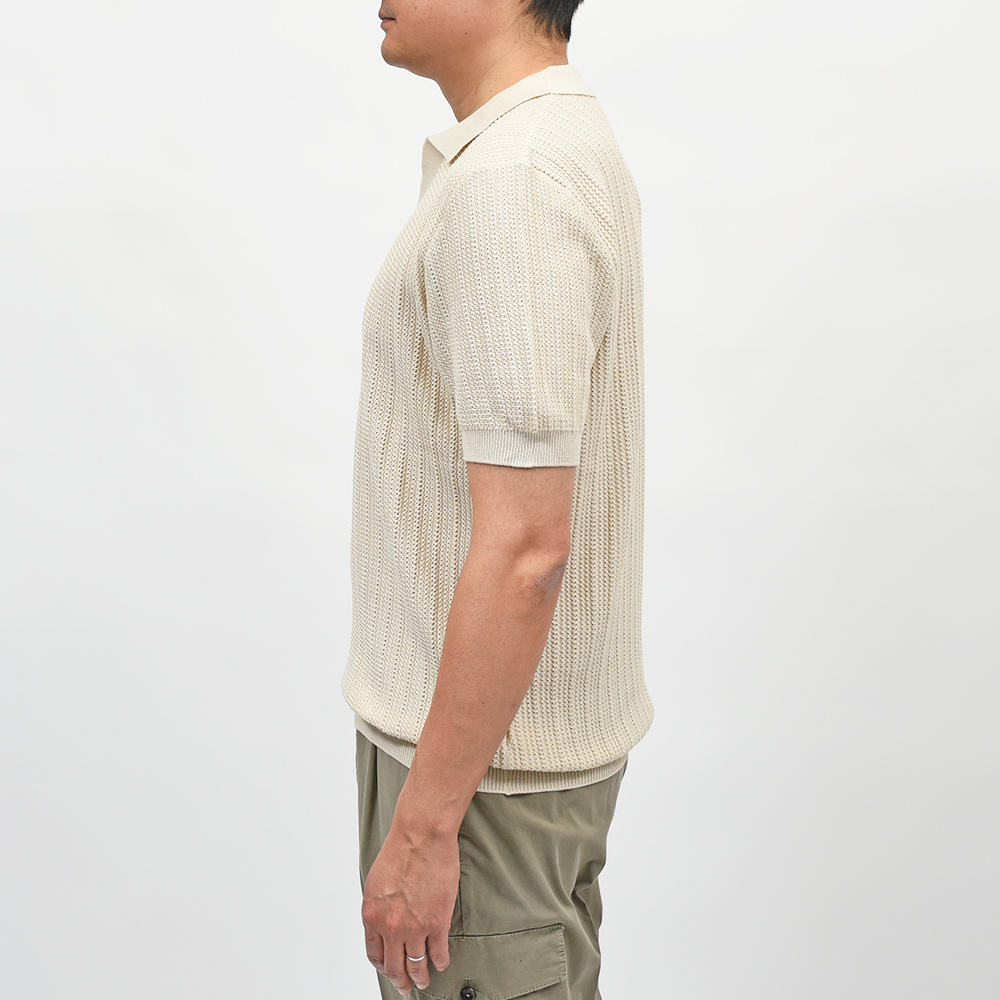 コットン 12ゲージ リンクス編み スキッパーニットポロ
