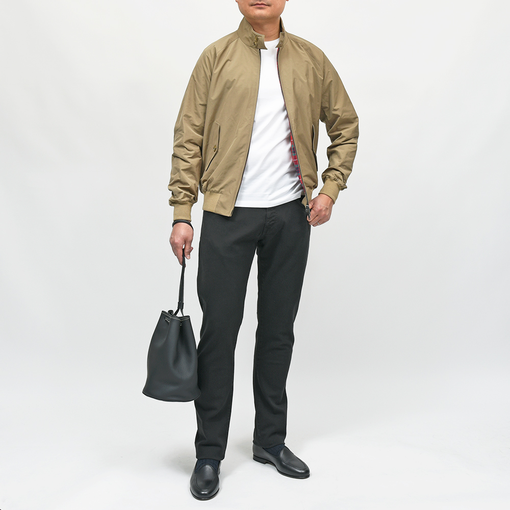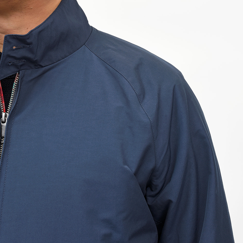 ドッグイヤーカラー・ラグランスリーブ・アンブレラヨークに、裏地のフレイザータータンチェックといったG9のアイコニックなディティールは変わらず。しかしながら、現代的にモダンナイズされたややスリムなフィット感が古臭さを全く感じさせません。