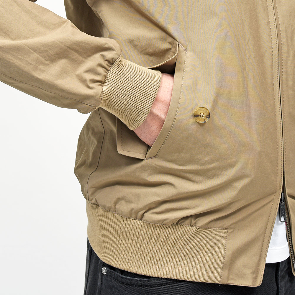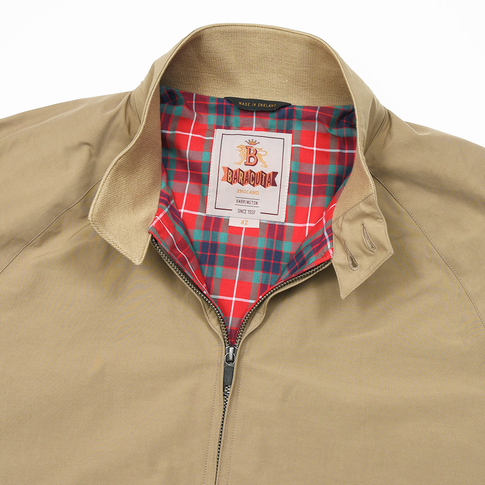 表地にはコットン×ポリエステル素材を使用したBARACUTAを代表する素材“バラクータクロス”を採用。撥水性・防シワ・速乾性を持つ機能的なファブリック。また、現在でもバラクータクロスを使用したオリジナルのG9はイギリス国内で生産されています。