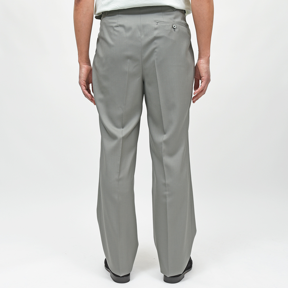 モデル“MADDOX(マドックス)”は、Fumiya Hirano THE TROUSERSを代表するモデルであるREGENTの腰回りに、イギリス軍のミリタリーパンツをモチーフにしたモデルDAVISに近いシルエットを掛け合わせたニューモデル。本場英国的なモデルではなく、伝統的なトラウザーズを現代的に解釈した一本となっています。ドレススタイルは勿論ですが、カットソーやニットをタックインした、カジュアルなスタイルにも合わせることができます。