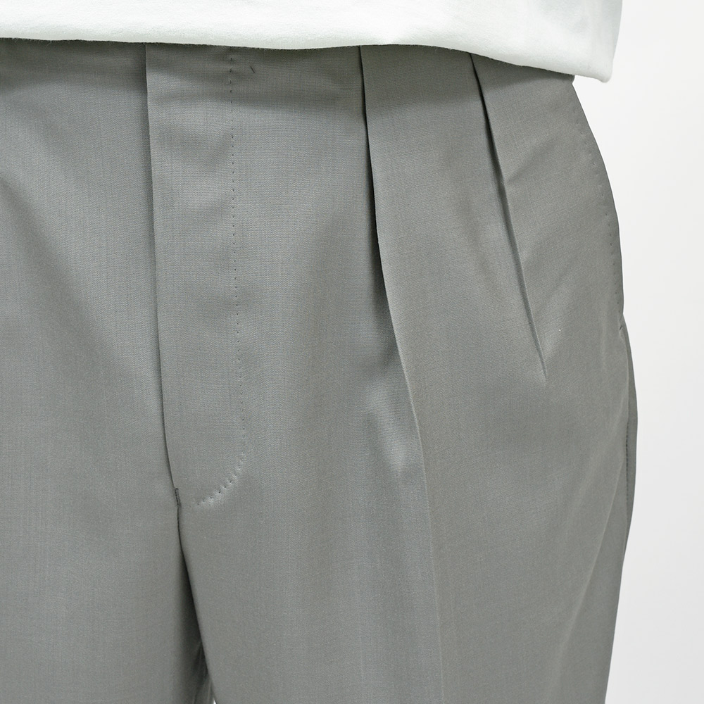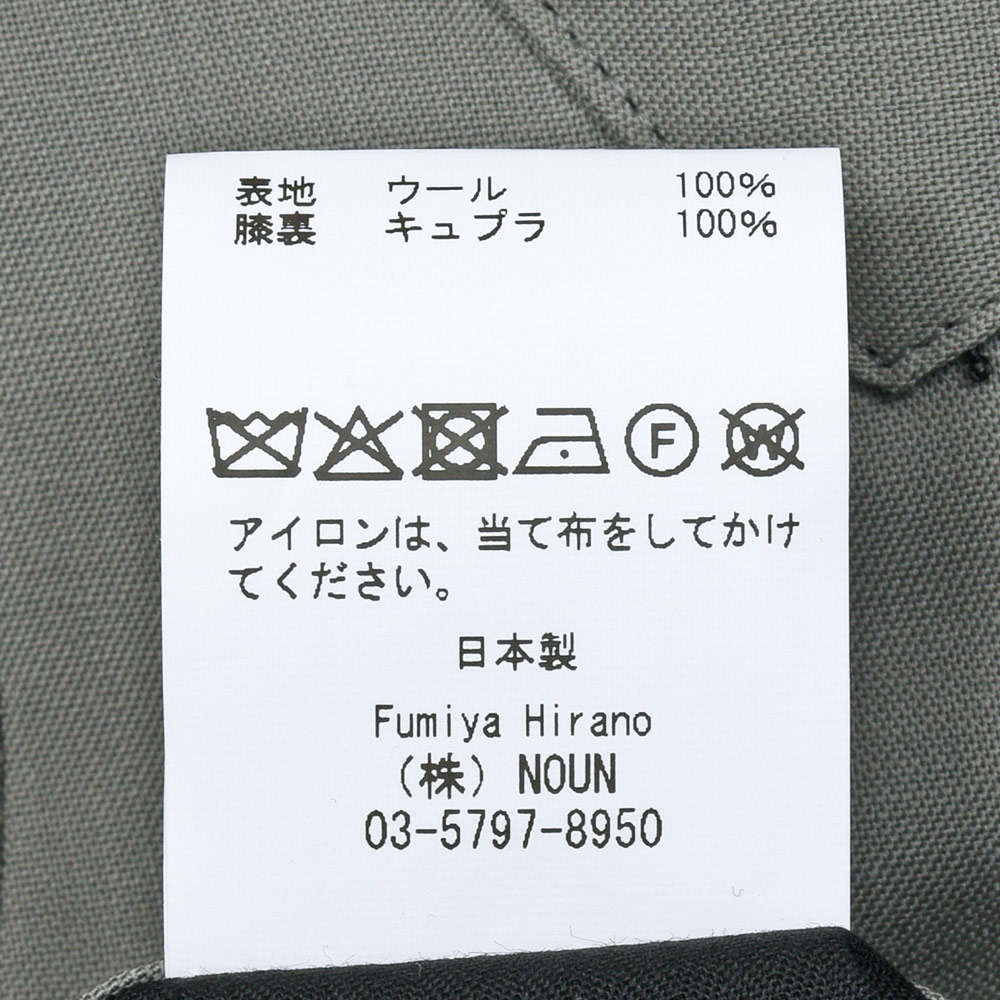 ファブリックは日本国内で生産された、Fumiya Hiranoオリジナルのウールトロピカルのグレンチェック。程良いハリがありながらも、しなやかさもある軽い目付けが清涼感のある生地感になります。