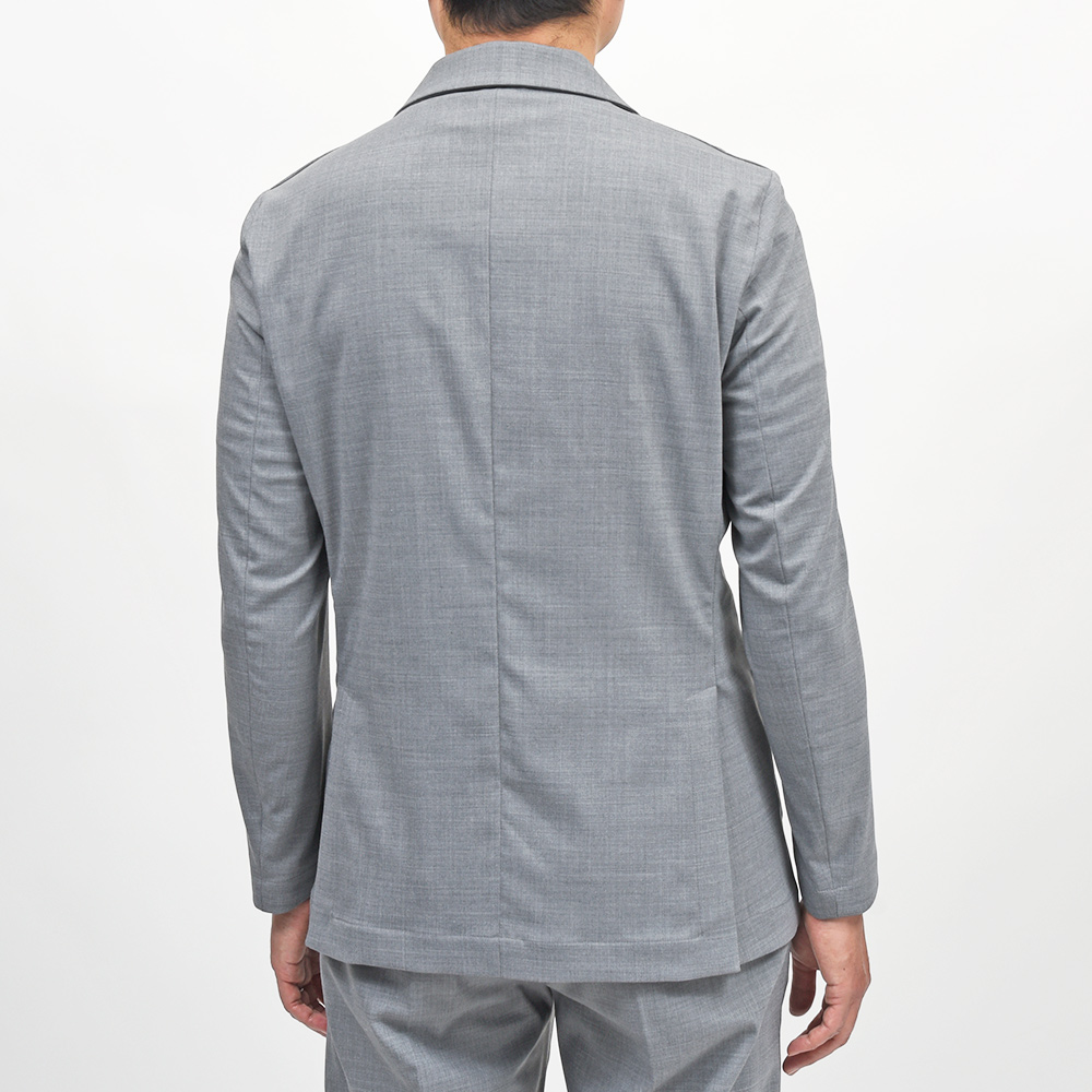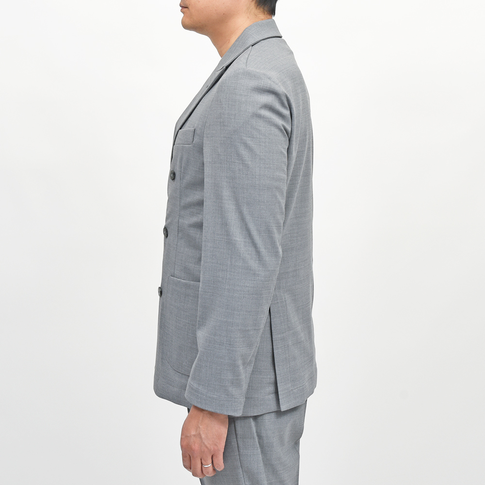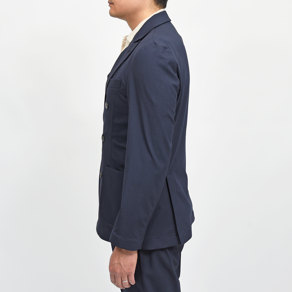 ダブルブレストのモデル“PALAGIO(パラジオ)”。今シーズンはコレクションに入っていなかったモデルですが、ringだけで限定復活しました。人気のシングルジャケット同様に、アンコン仕立てで裏地も無く、袖は筒袖仕上げ。あくまでも気軽に羽織れるシャツジャケットの仕上がりとなっています。また、通常のスペックよりも着丈を少し短くすることでバランスを整えた別注仕様です。