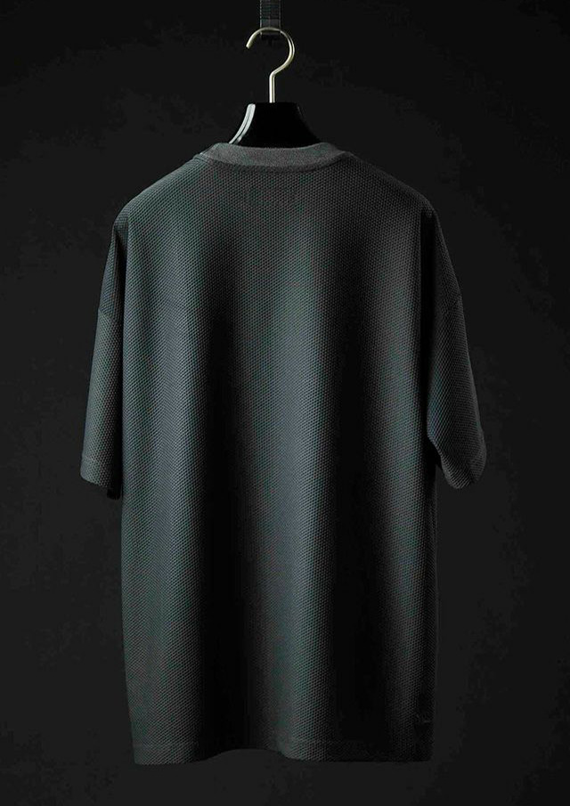首の付け襟部分には同系で編み立てた同じくジャガード織の専用CREWパーツを使用しより引き締まった首元を演出。