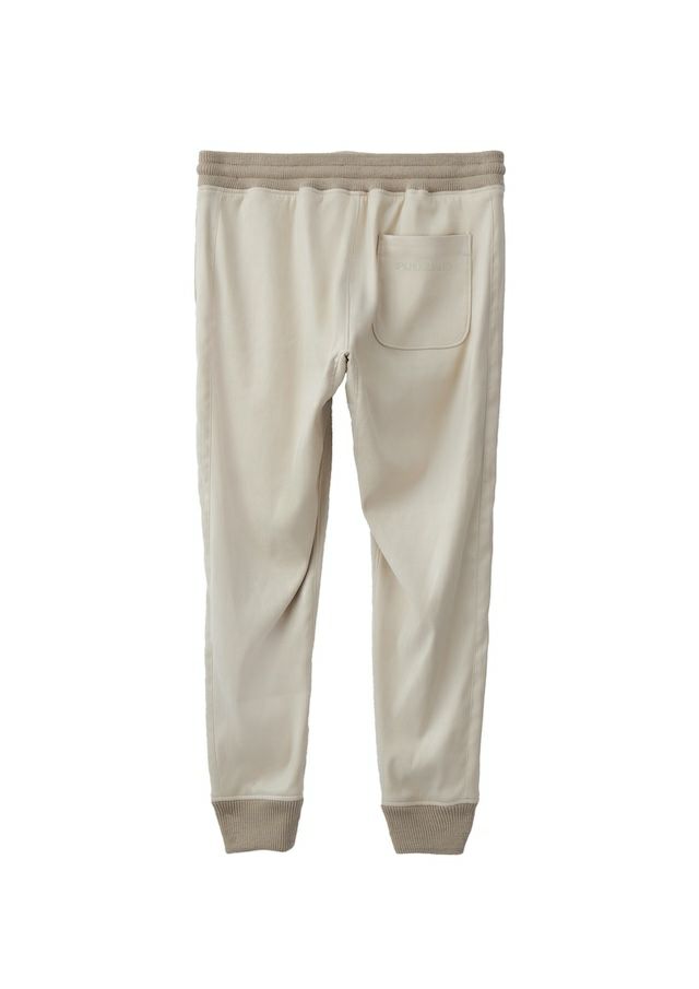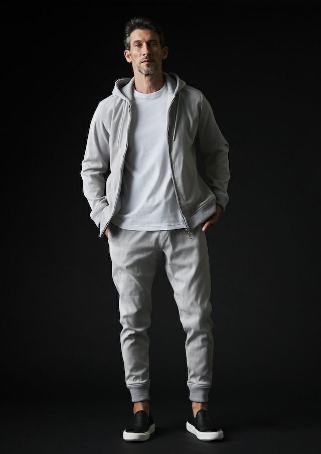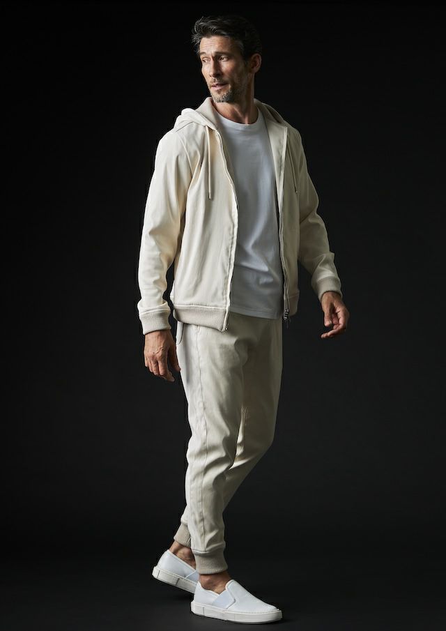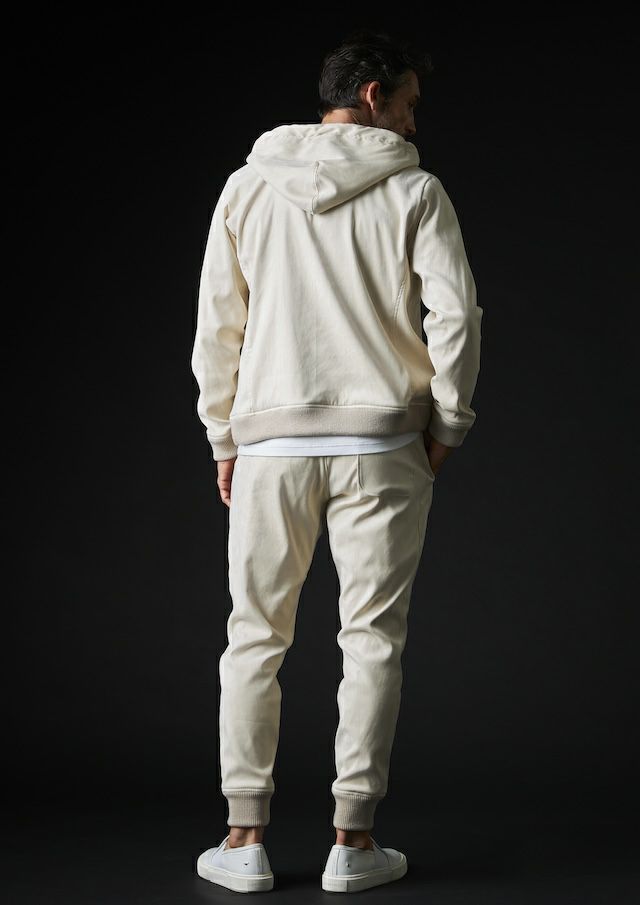 洗練された存在感と心地よさを、同時に叶える。今回登場するのは、極上のストレッチスエードを贅沢に使用したパーカー&リブパンツのセットアップ。タテ糸にはマイクロファイバーUTS、ヨコ糸には伸縮性に優れたT400を組み合わせ、さらに高収縮糸を掛け合わせた二重組織に。まるで上質な豚革を思わせる重厚な風合いと想像を超えるソフトなタッチが同居する唯一無二の素材感は、着た瞬間に“違い”を実感できるはず。さらに特筆すべきはリブ部分。希少なカシミヤをミックスすることで、肌に吸い付くような柔らかさと上品な温もりをプラス。細部に至るまでこだわり抜かれたデザインは、ディテール好きの大人をも唸らせます。そして仕上げに、ファスナーにはイタリア・ラッカーニ社の誇る「スーパーラッカーニファスナー」を採用。メゾン御用達のその輝きは、シンプルなセットアップを一気にラグジュアリーへと格上げします。ラフに羽織っても、リラックスして着こなしてもどこか都会的でモードな香りを漂わせる。まさに“大人の余裕”を体現する、珠玉のセットアップです。