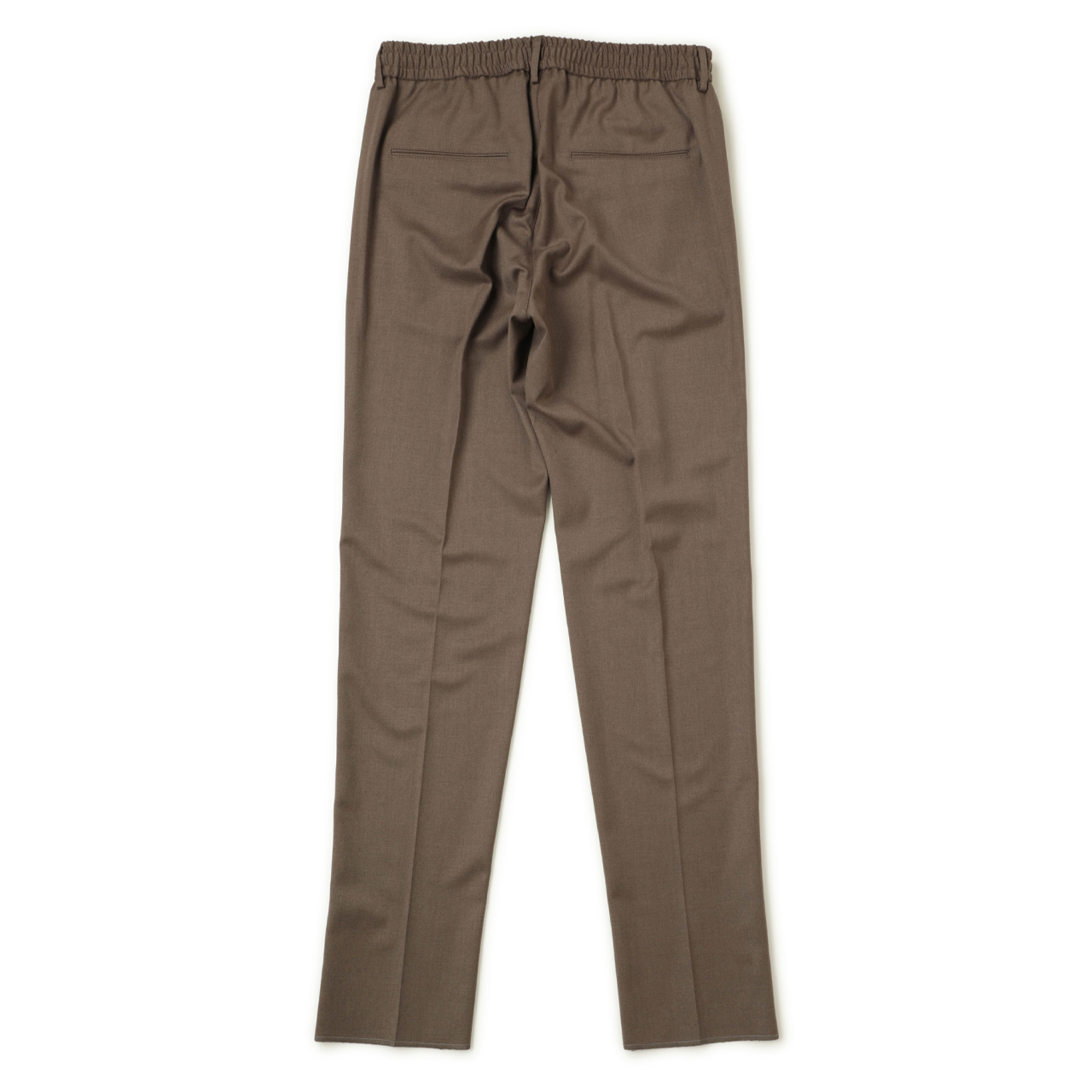 やや細めのラペル幅、アーム・ウエストのTAGLIATOREらしい絞り込み、テーパードの効いた美しいパンツシルエット。