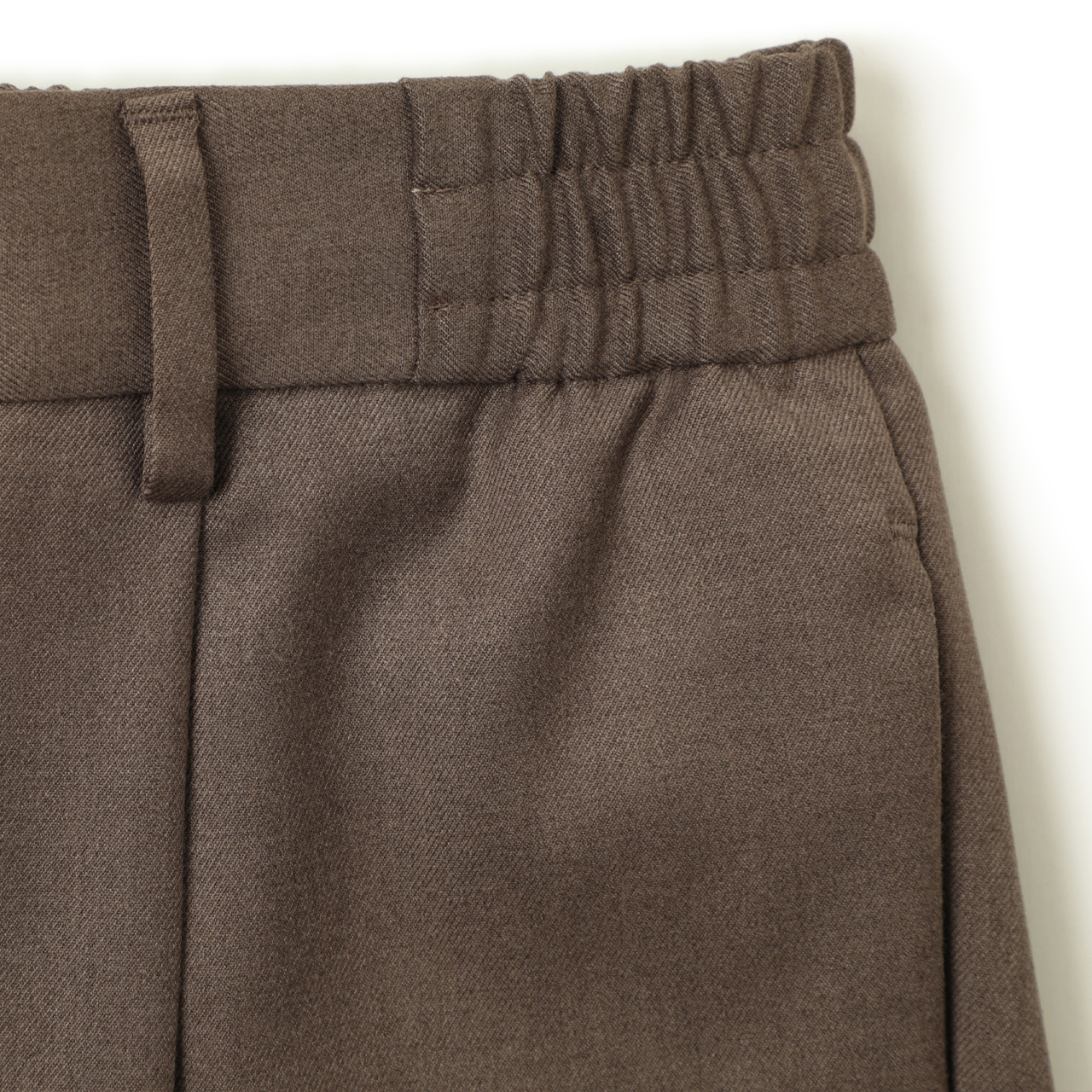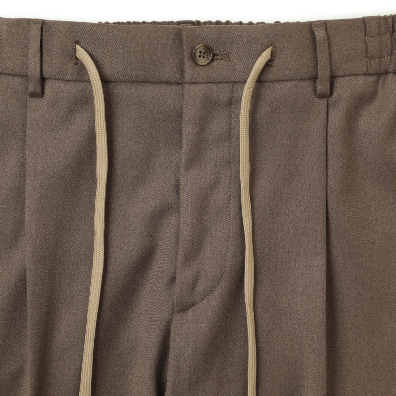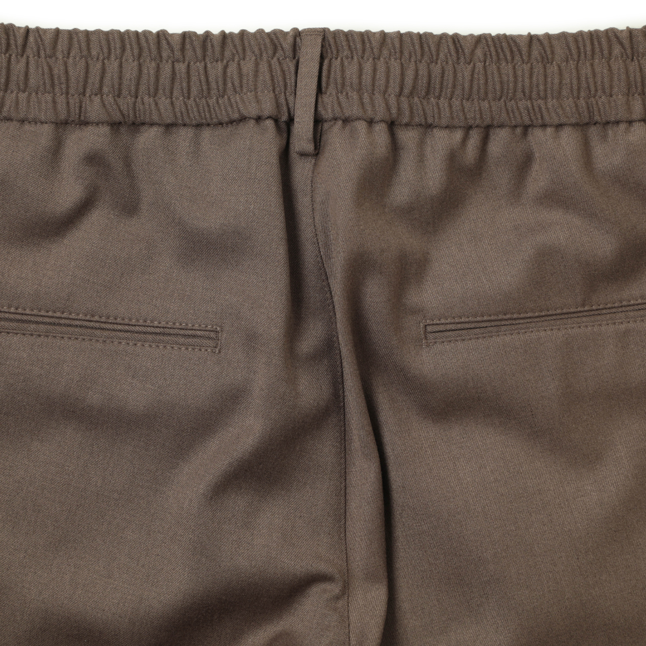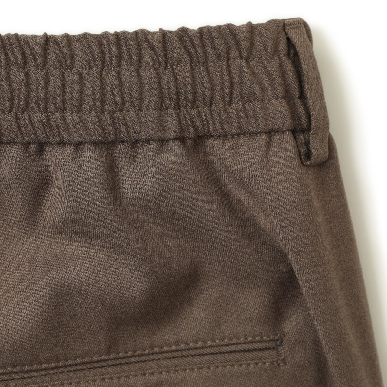 パンツはウエストゴム+ドローコードとスポーティな仕様でありながらベルトループもつけてありますので、シーンによってベルトを通してドレスな着こなしを楽しむのもあり。