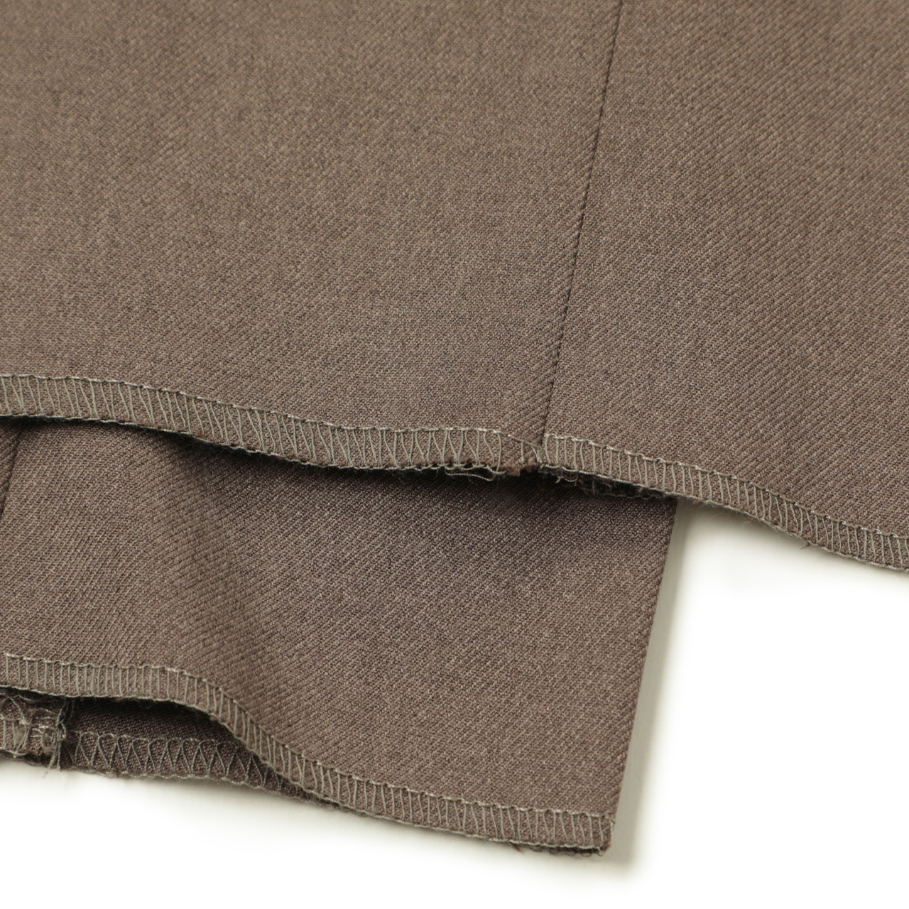ポリエステル、レーヨン、ポリウレタン(ストレッチ)の3者混地は艶、滑らかさ、とろみのある生地感、そしてストレッチの効いた着心地で快適さを実感いただける素材感に仕上がっております。